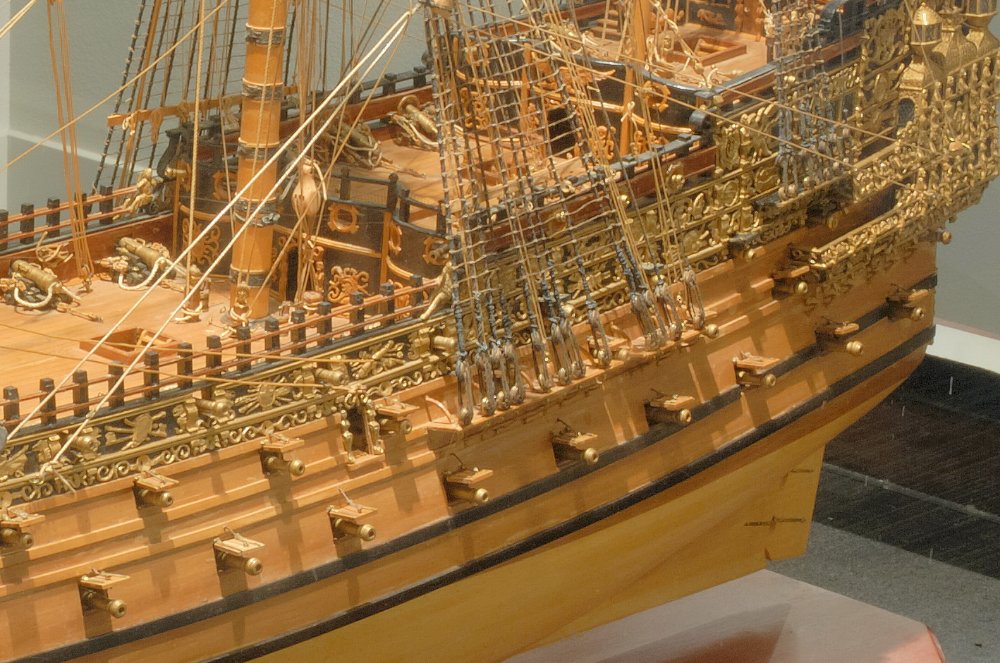Можно предположить, отдельные их применения были и в первой половине 17-го века. Ведь их применение явно напрашивается исходя из удобства проводки такелажа и изготовление их и устройство, я думаю, совсем не сложно для тамошних корабелов. Так что, думаю что этот компромисс не является слишком грубым несоответствием с моей стороны.