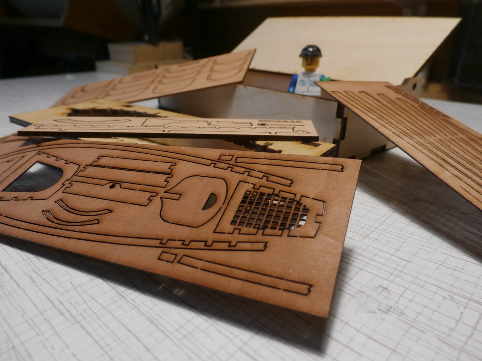 Работа интересная, детали очень мелкие, аккуратно вырезаны лазером. Хорошо просушены и довольно хрупкие. Чуть нажмешь и возможна поломка. В сложных местах монтажа не плохо и подстраховаться : предварительно деталь смазав ПВА подождать пока клей не закристаллизуется и только после подгонять надфилем по месту крепления и приклеивать на штатное место. Удачи всем и Здоровья!