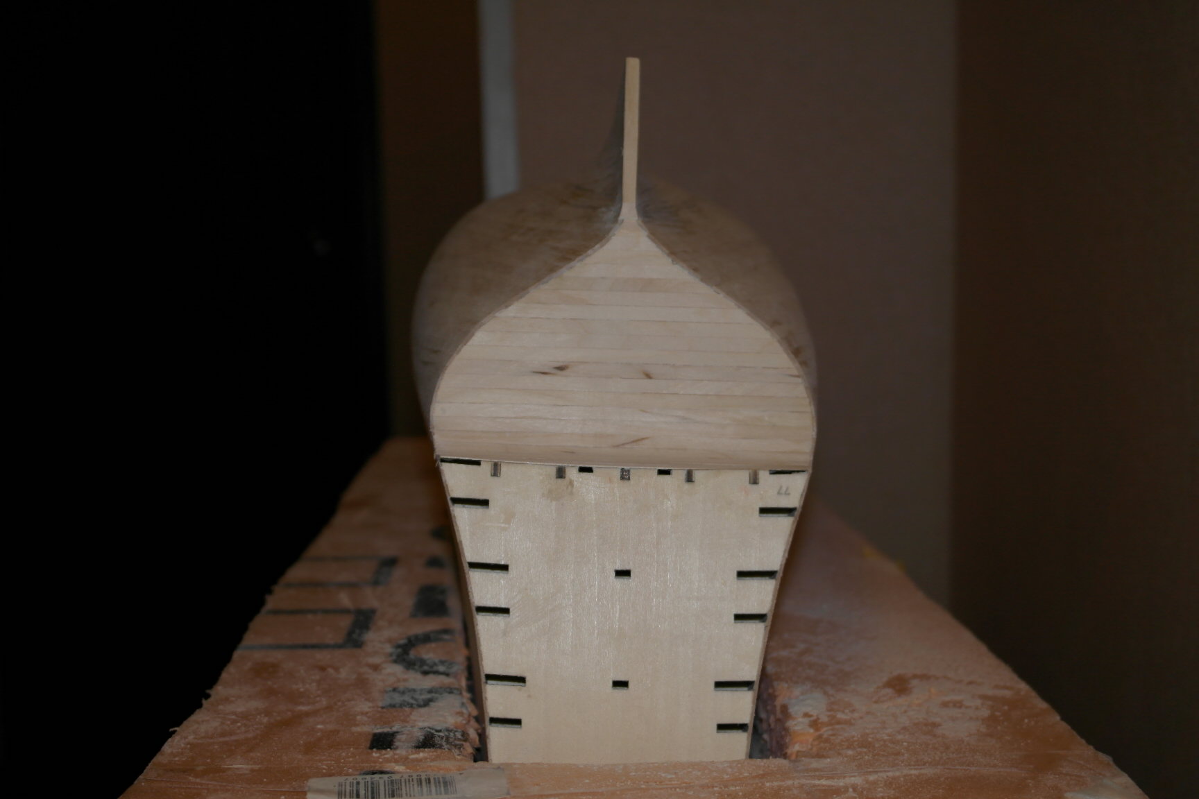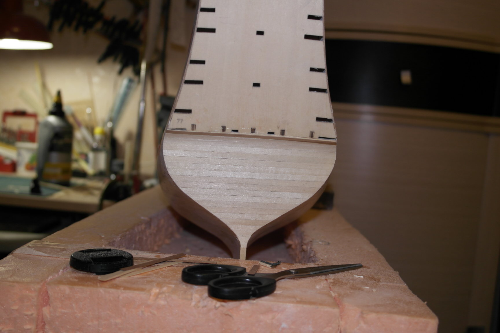 Ну и начал чистовую. Делаю по журналу. И сразу возник вопрос. Зашиваем транец... А вот про ретирадные порты в журналах ни слова. Просмотрел до 93 номера. Хотя открывать эти порты я не буду (не нравятся мне торчащие там пушки, да и такая махина, как наш корабль, навряд ли их часто использовал), но быть они должны. Почему я не стал их делать - потому, что возможно они как-то привязываются к декору кормы. Думаю, что проблемы их потом наметить ножом не составит. Изгалимся как-нибудь