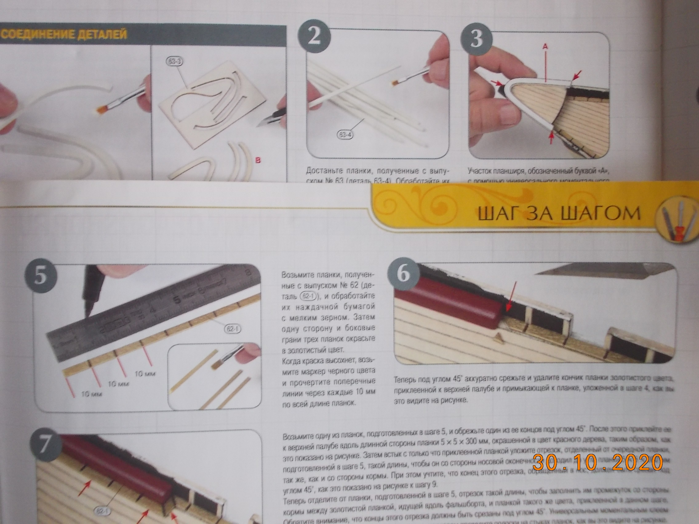 Также момент, "окна" надо клеить на 10,5-11 мм ниже верхнего края борта. так они уходят под палубу и борт плотнее прилегает к корпусу. Зря я отступил от журнала красил без ошкуривания, фактура дерева сильно видна.