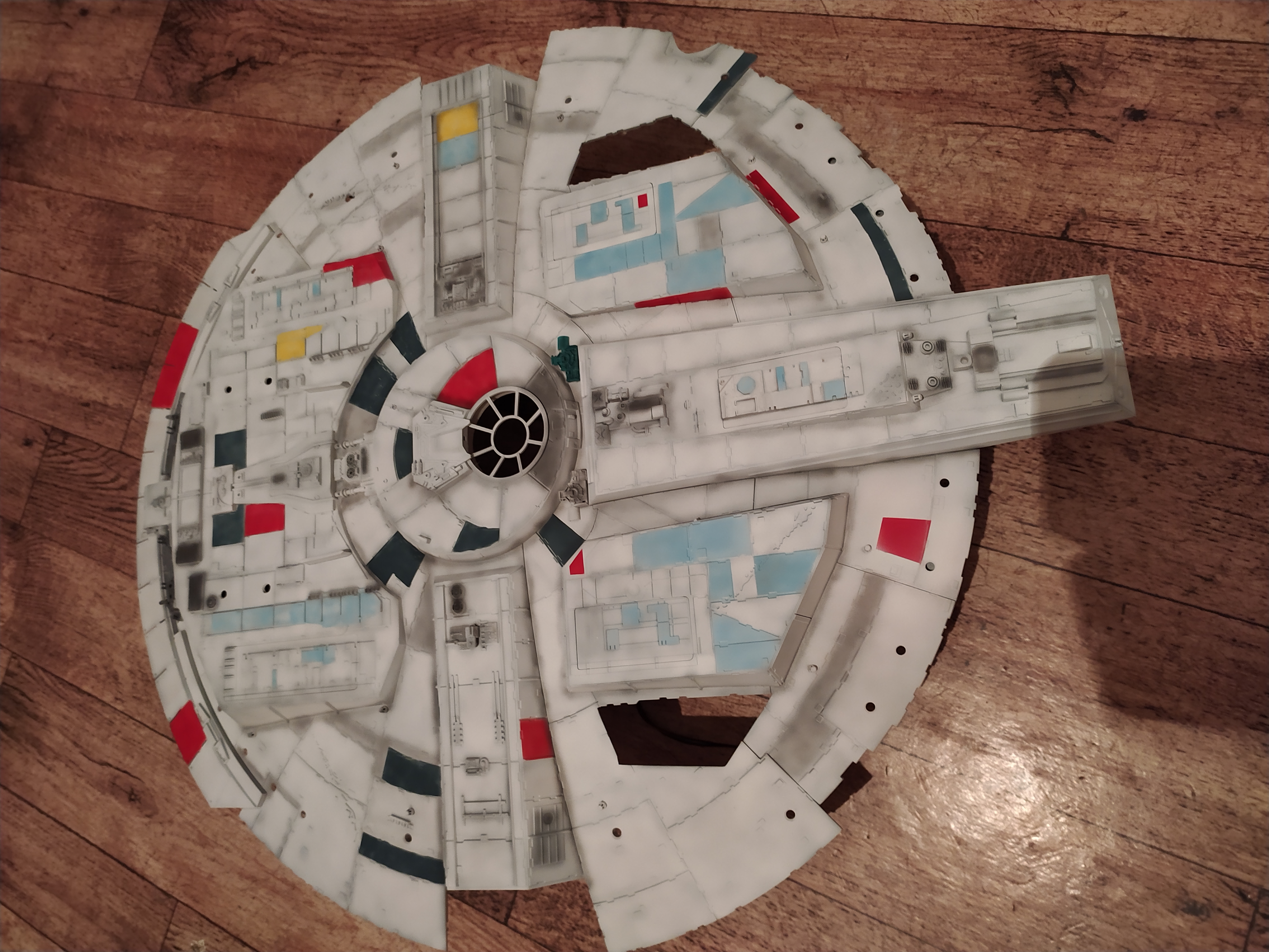 Я сейчас смотрю 7 эпизод Звездных Войн. Сокол там во всей красе и деталях. Я не буду сходить с ума по электрике, мне достаточно стандартного набора! Но, вот на что не пожалею денег, чтобы себя порадовать и других уивить, так это приглашу профессиональную художницу, попрошу просмотреть ее все кадры из последней трилогии и добиться путем раскраски полного сходства с тем самым потрепанным, ржавым и видавшим виды Тысячелетним Соколом!!!