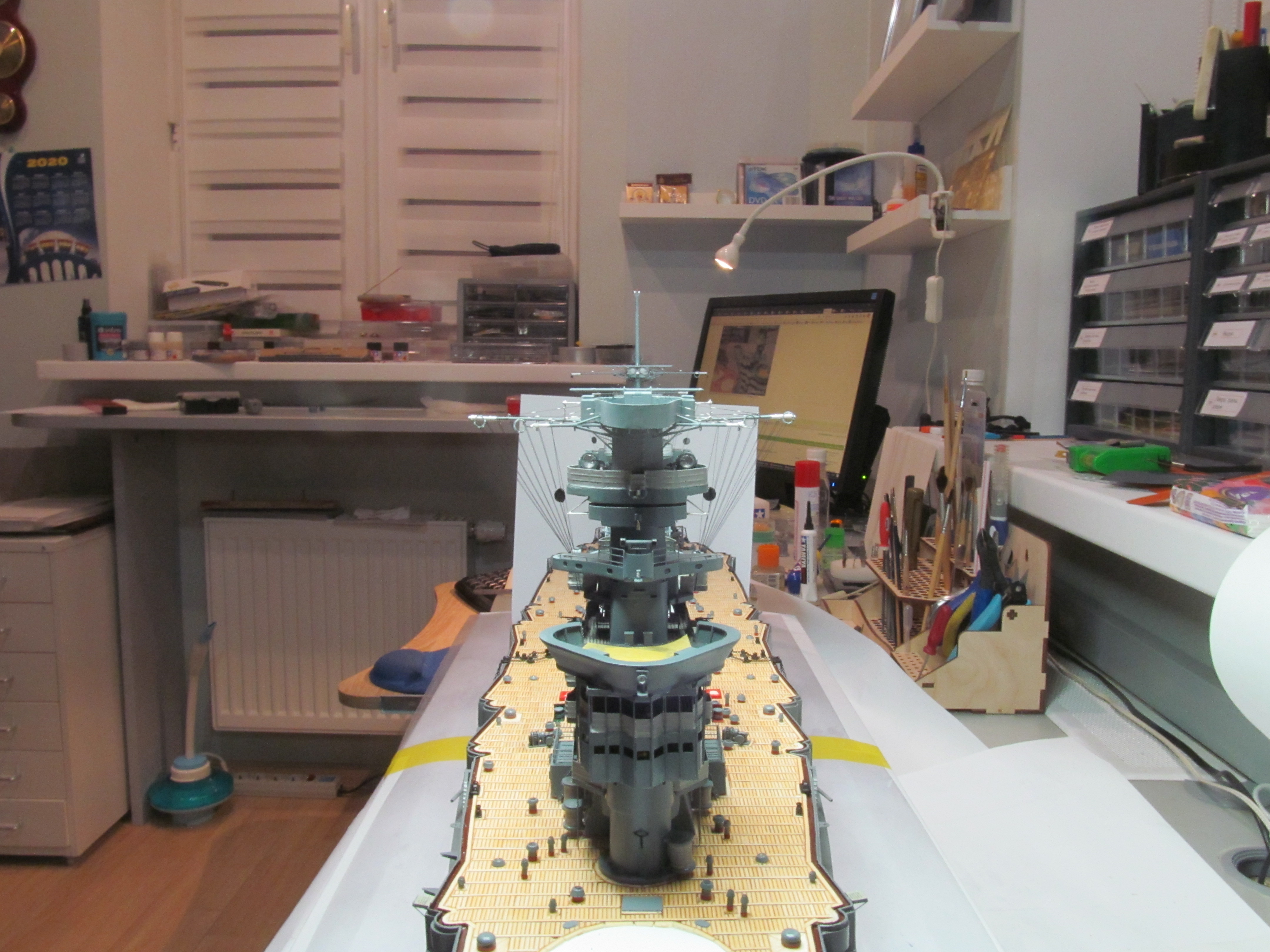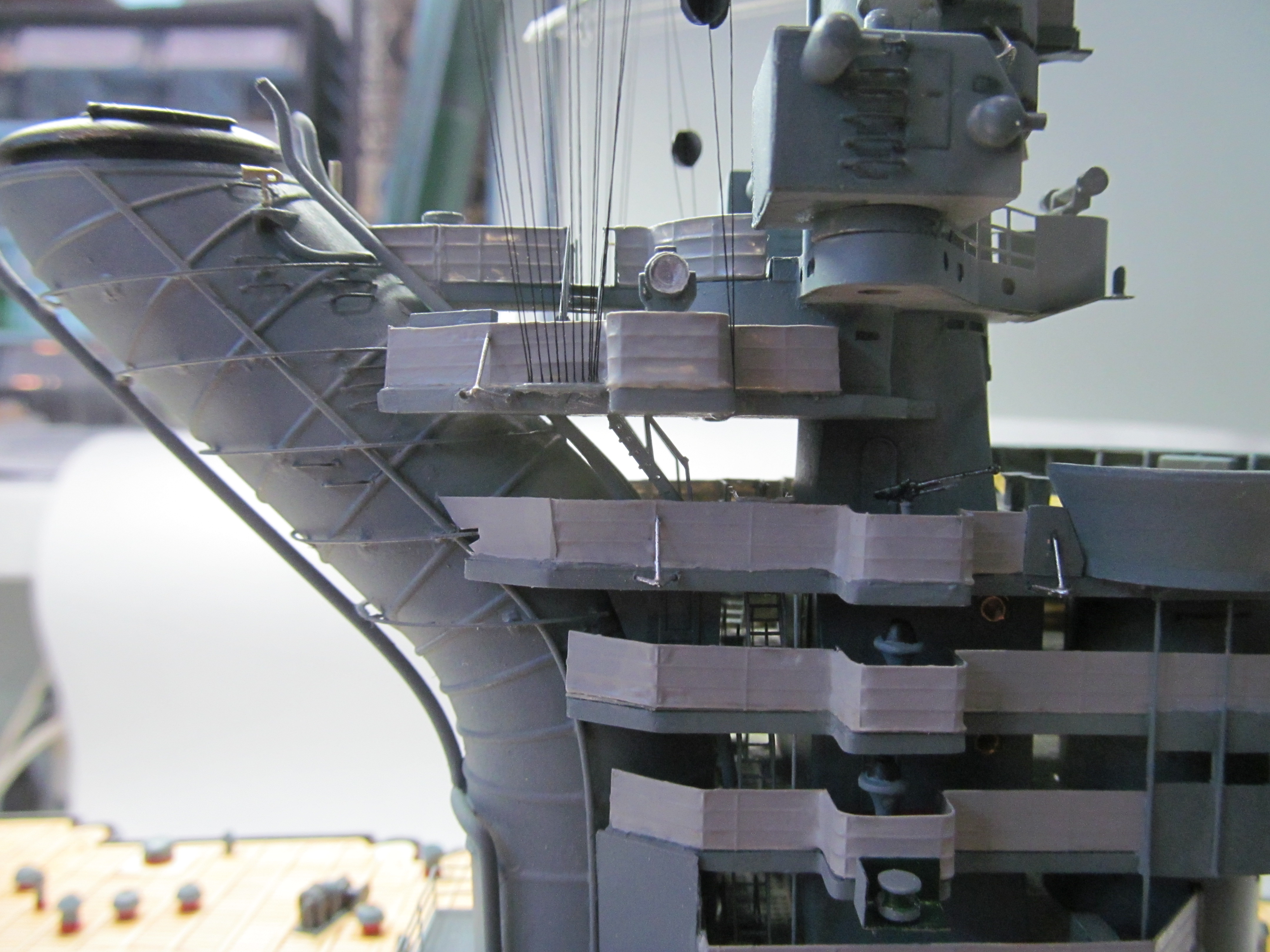 Встали на место вьюшки и пиллерсы поддерживающие площадку первого яруса носовой надстройки.