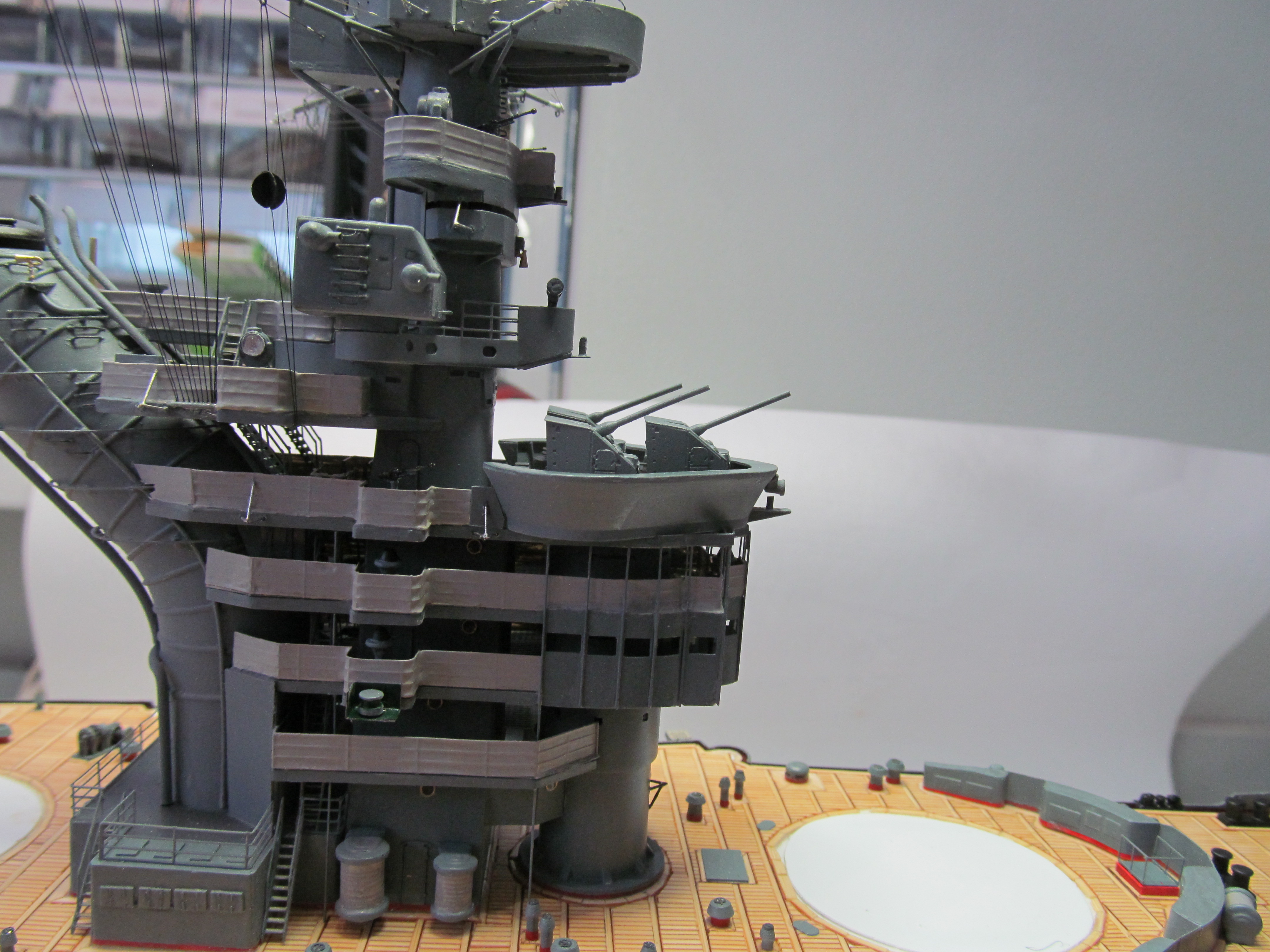 Установил сходные трапы с четвёртого на пятый ярус и установил всю мелочёвку на носовую надстройку.