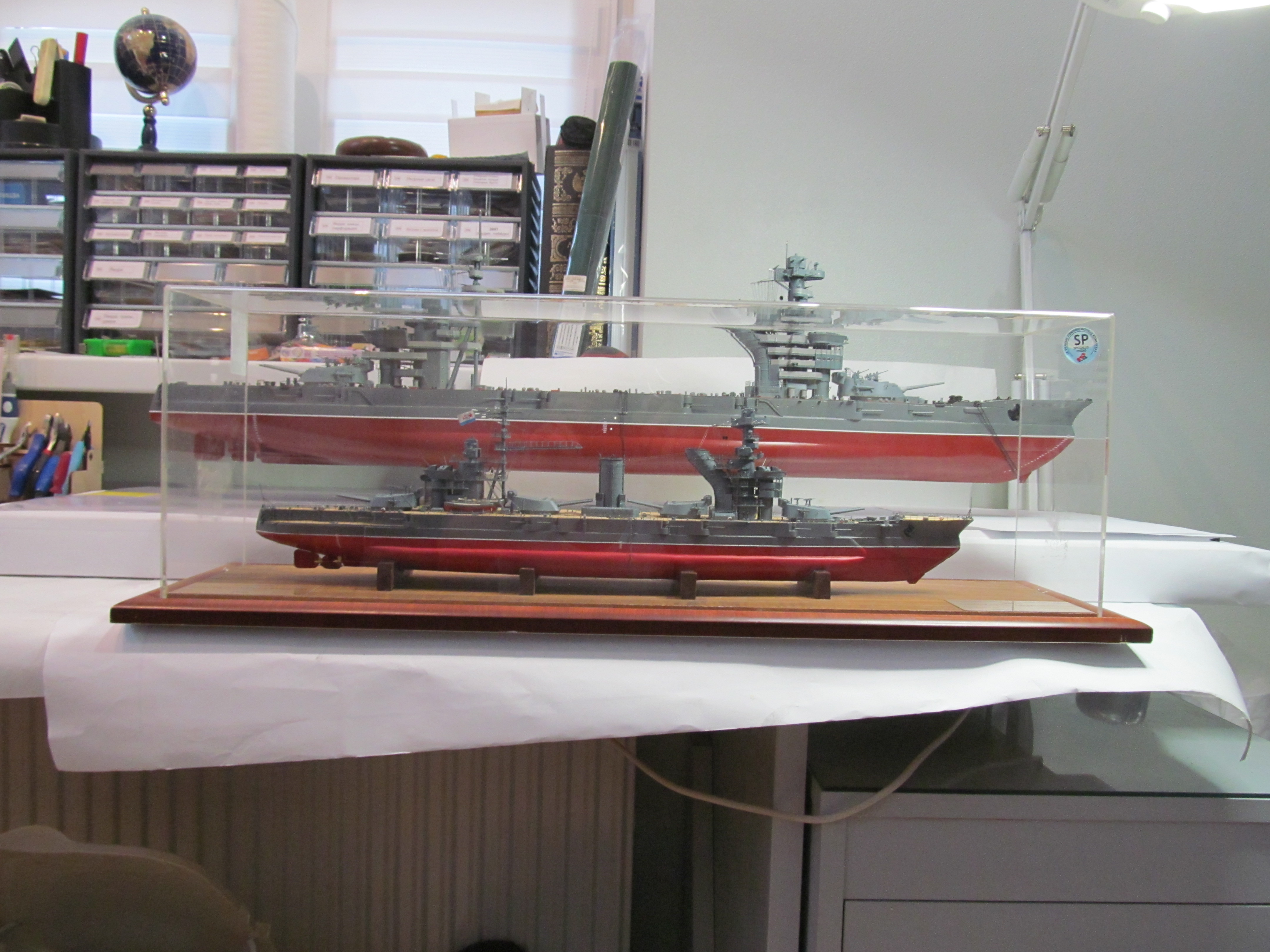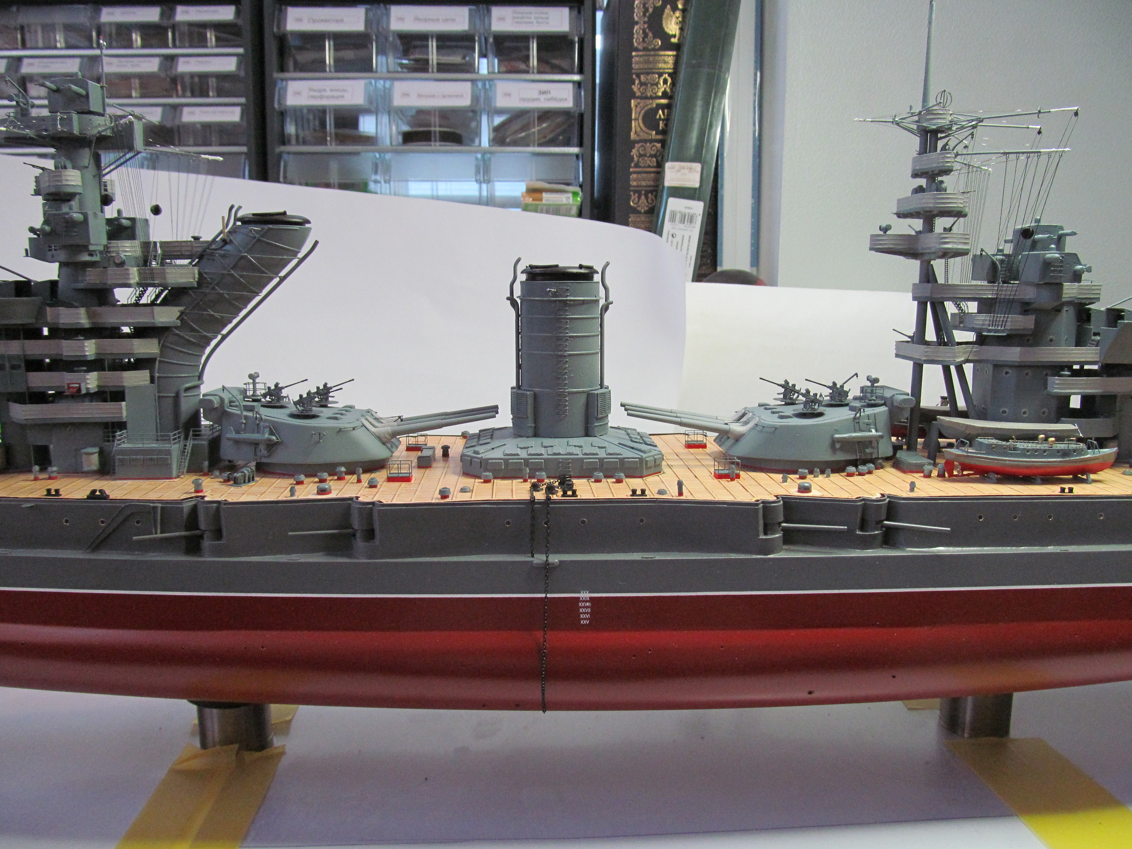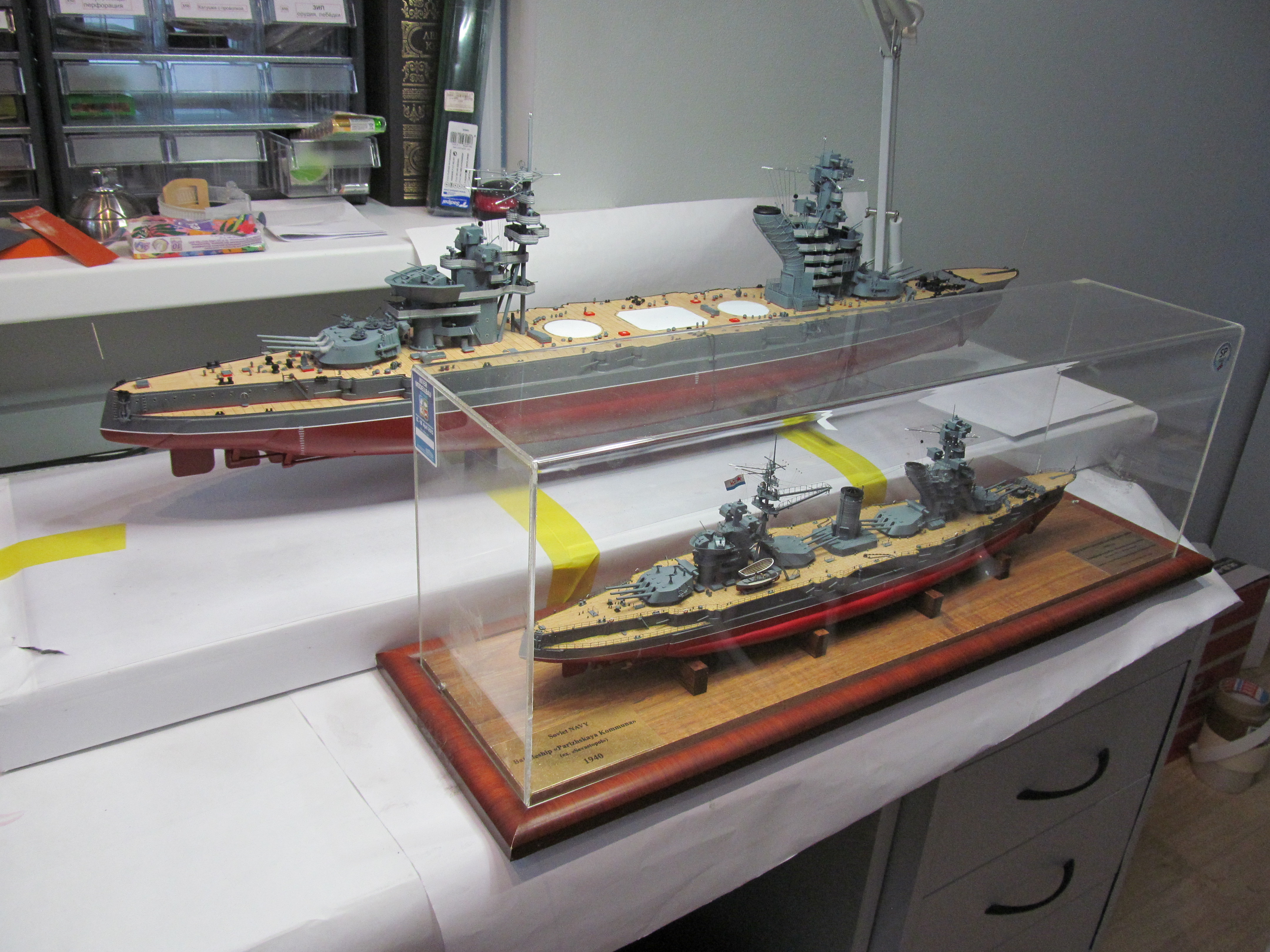 Вот, для сравнения сделал несколько снимков нашего "Севастополя" (на 1944 год) в 200-м масштабе по состоянию на сегодняшний день и моей модели "Парижской коммуны" (на 1941 год) в 350-м масштабе, которую я сделал 6 лет назад.