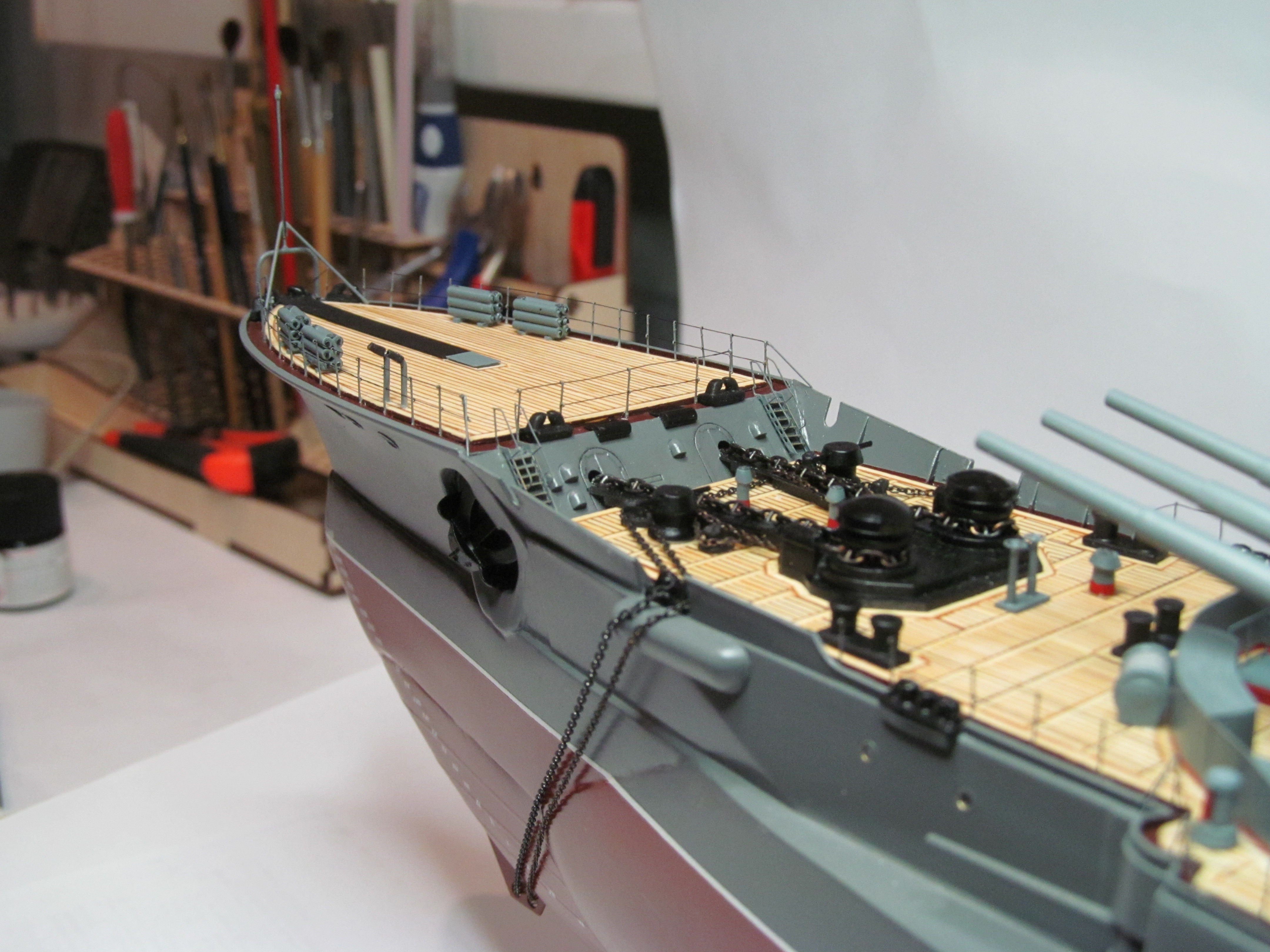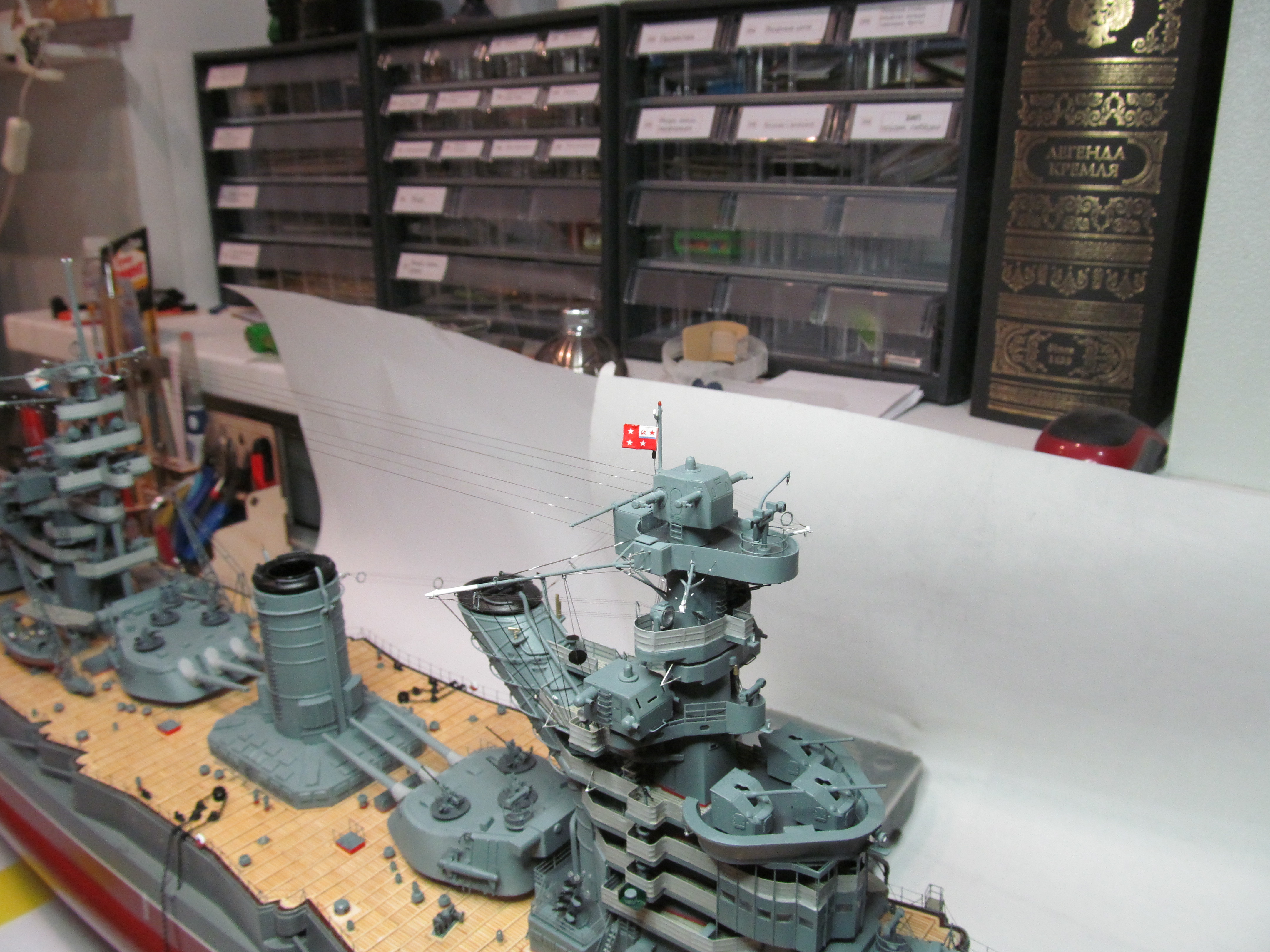 Закончил все шесть ниточек верхних антенн, таблички с именем корабля, Герб, флюгарки.....