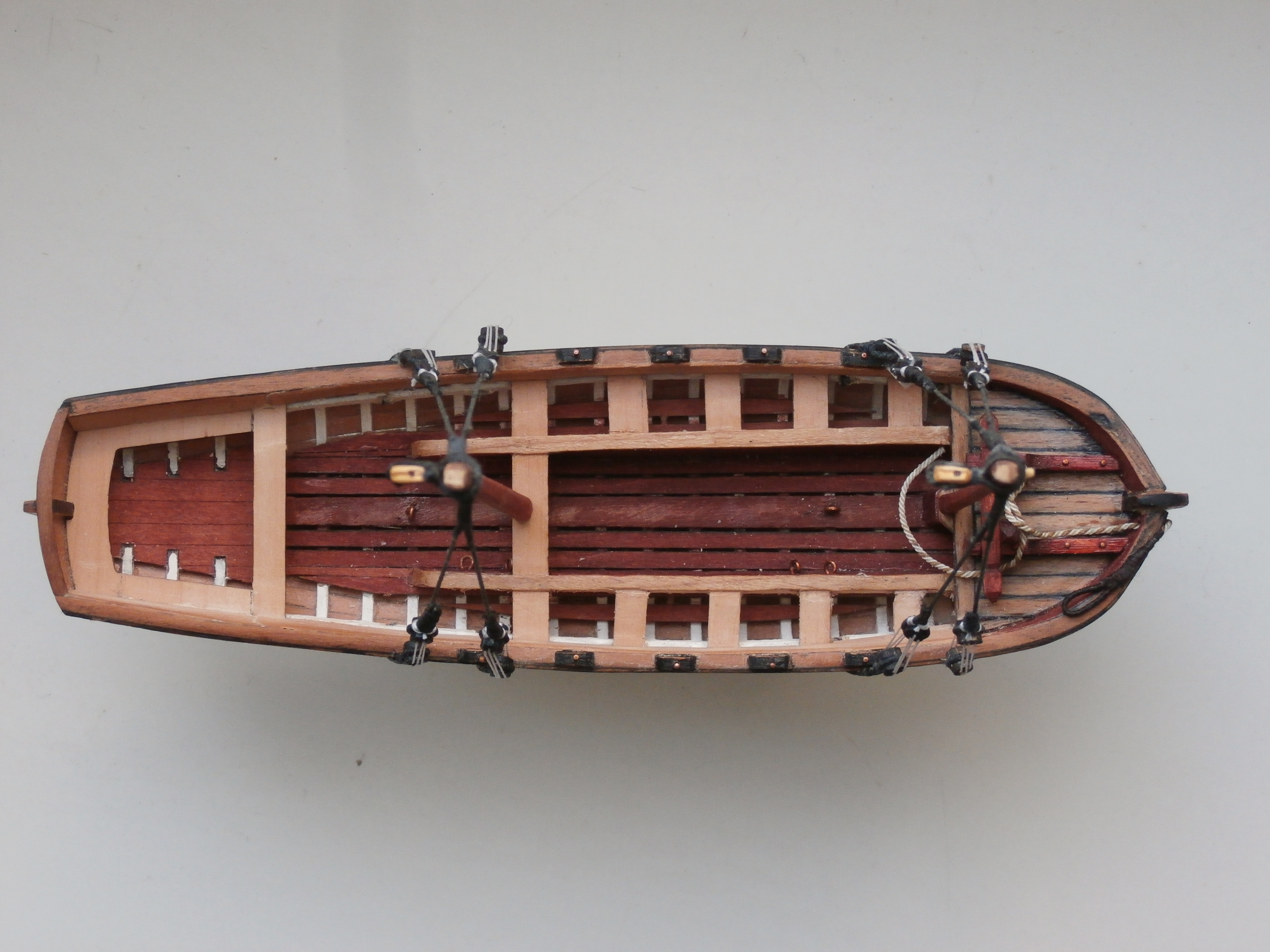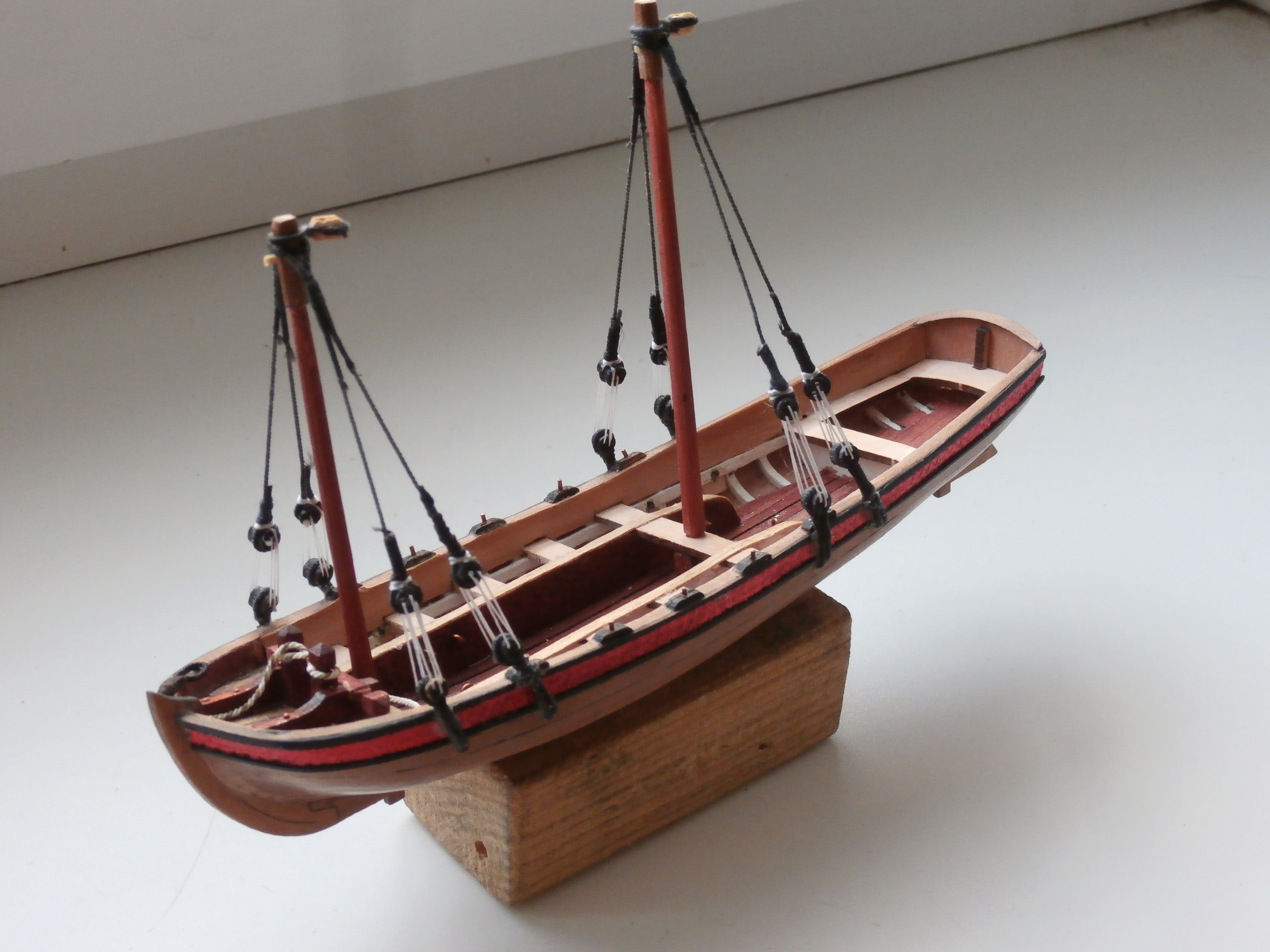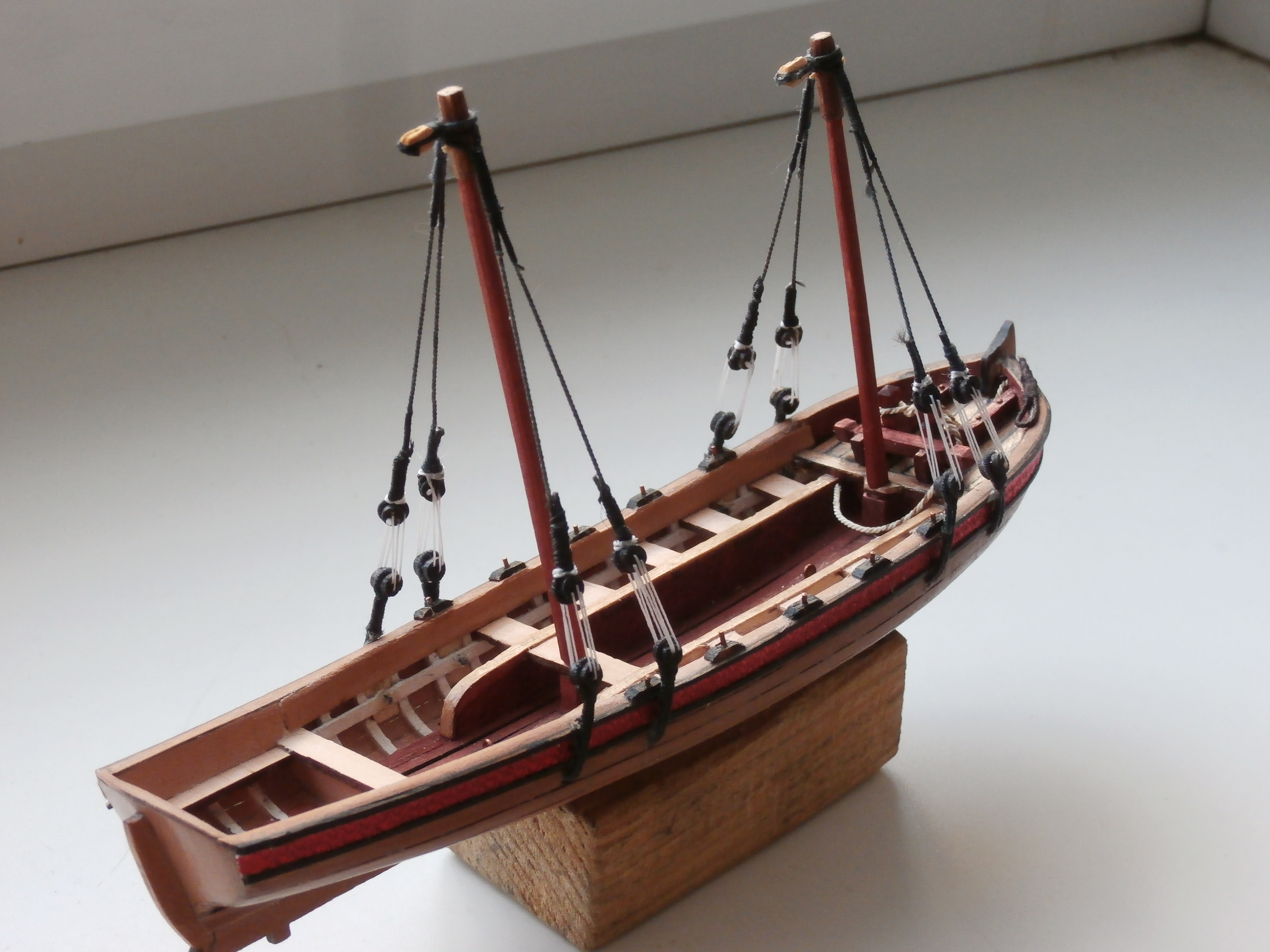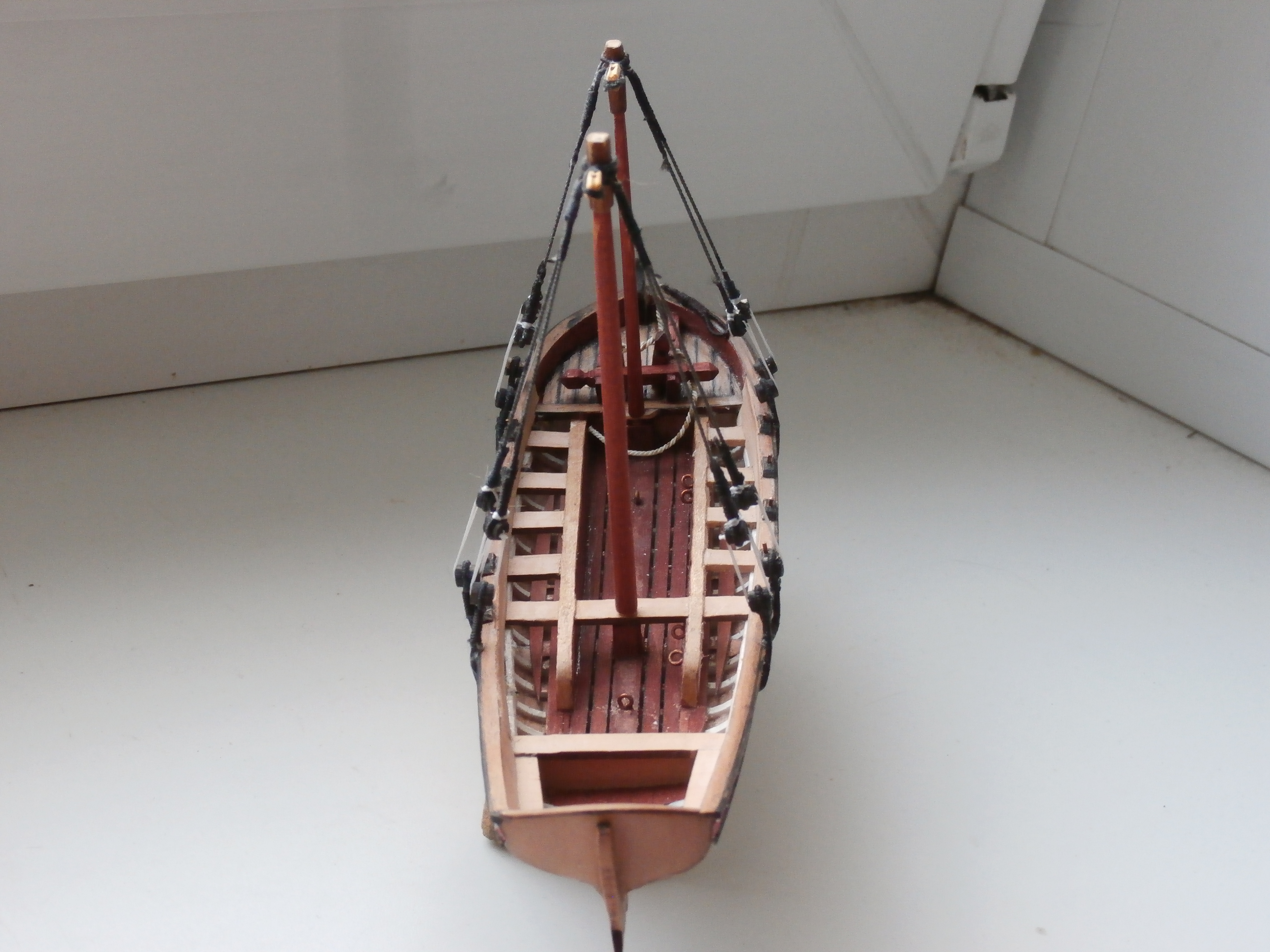 Моё отношение к "Сказочному" кораблю с прошедшим временем не изменилось. Не изменилось отношение и к дополнительному оборудованию линейного корабля. В частности оборудования Лонг-бота. Насчет спасательных шлюпок должен сказать, что если бы книга о Повелителе мне попалась бы раньше , возможно я бы в строительстве придерживался её чертежей. Хотя и здесь многое спорно. Лонг-бот Джона Мак Кейна это пассажирский баркас созданный прежде всего для перевозки команды. (возможно, живой силы десанта) Парусное вооружение - гафельный шлюп. Высокая мачта и большая площадь грота, стакселя и кливера дает большой выигрыш в скорости перед соперниками. Но как человек работавший в своё время на море, я убежден что линейному кораблю нужно совсем другое... Пусть более медленное, с низким центром тяжести, а значит на порядок более остойчивой, но вместительного, за счет грузового кокпита- вспомогательное судно - бот, вооруженный парусами - генуя, способным перевозить множество различных грузов. С очень низкими (с"ёмными мачтами), которые бы не мешали бы в редких случаях осмотра и ремонта, подъему бота на верхнюю палубу линкора, и неспособными за счет высоты мачт при сильном, шквалистом ветре положить этот бот на борт. Поэтому я остановился на чертеже другой модели, которая бы больше отвечала всем этим требованиям: Дуббель - шлюпка, правда российского флота. Но англичане , всем известно были учителями своих одаренных учеников.