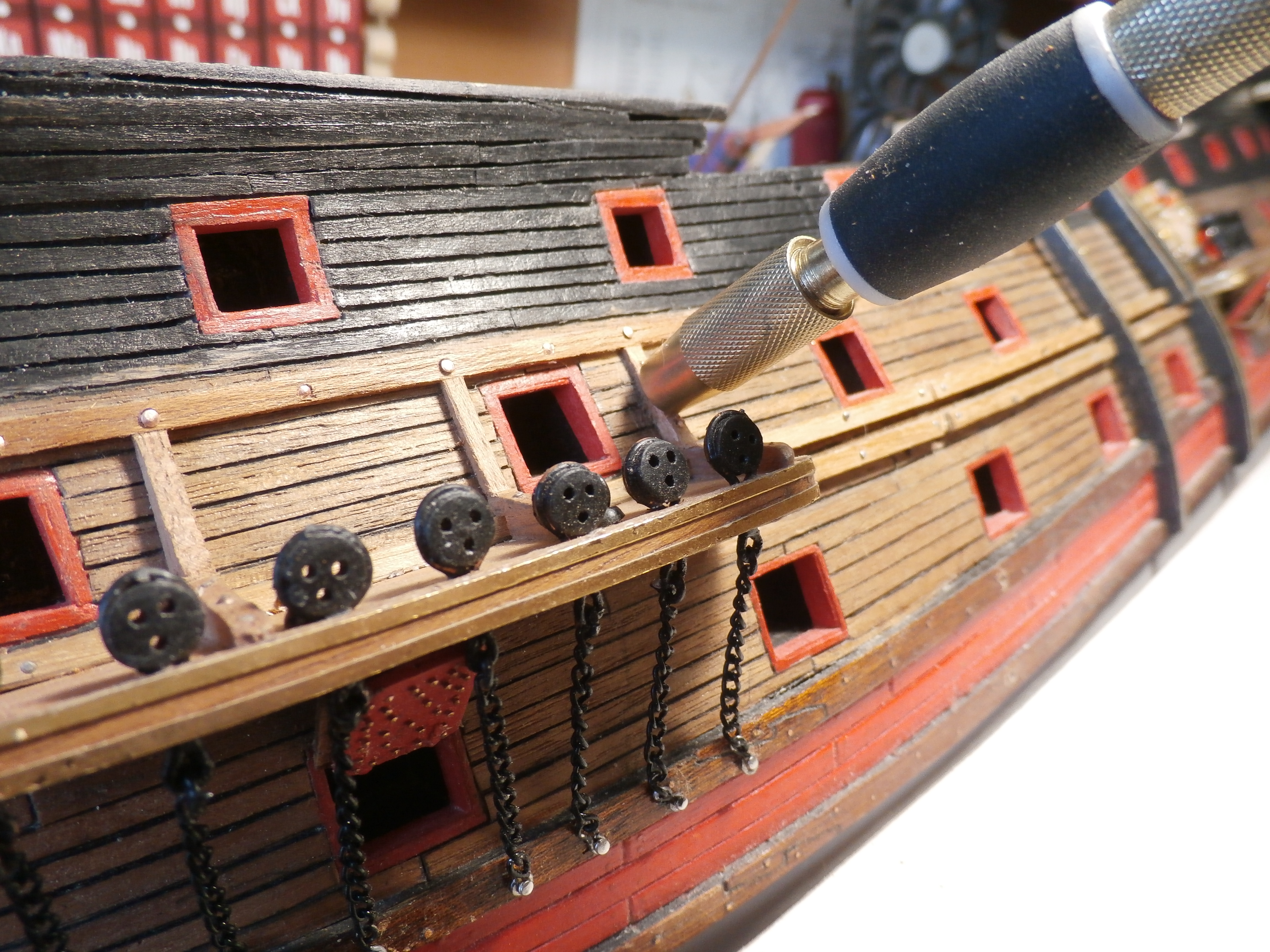 Ни в коем случае, не буду с Вами спорить, мало того, понятия не имею, сохранились ли, оригинальные чертежи подобных судов. В музее "Ботика Петра I" тоже стоит новодел, там примерно такая же картина, только пушки похожи. И если на подобных судах мачта была съёмная. Подскажите как снимали? Талрепы распускали?[/quote]