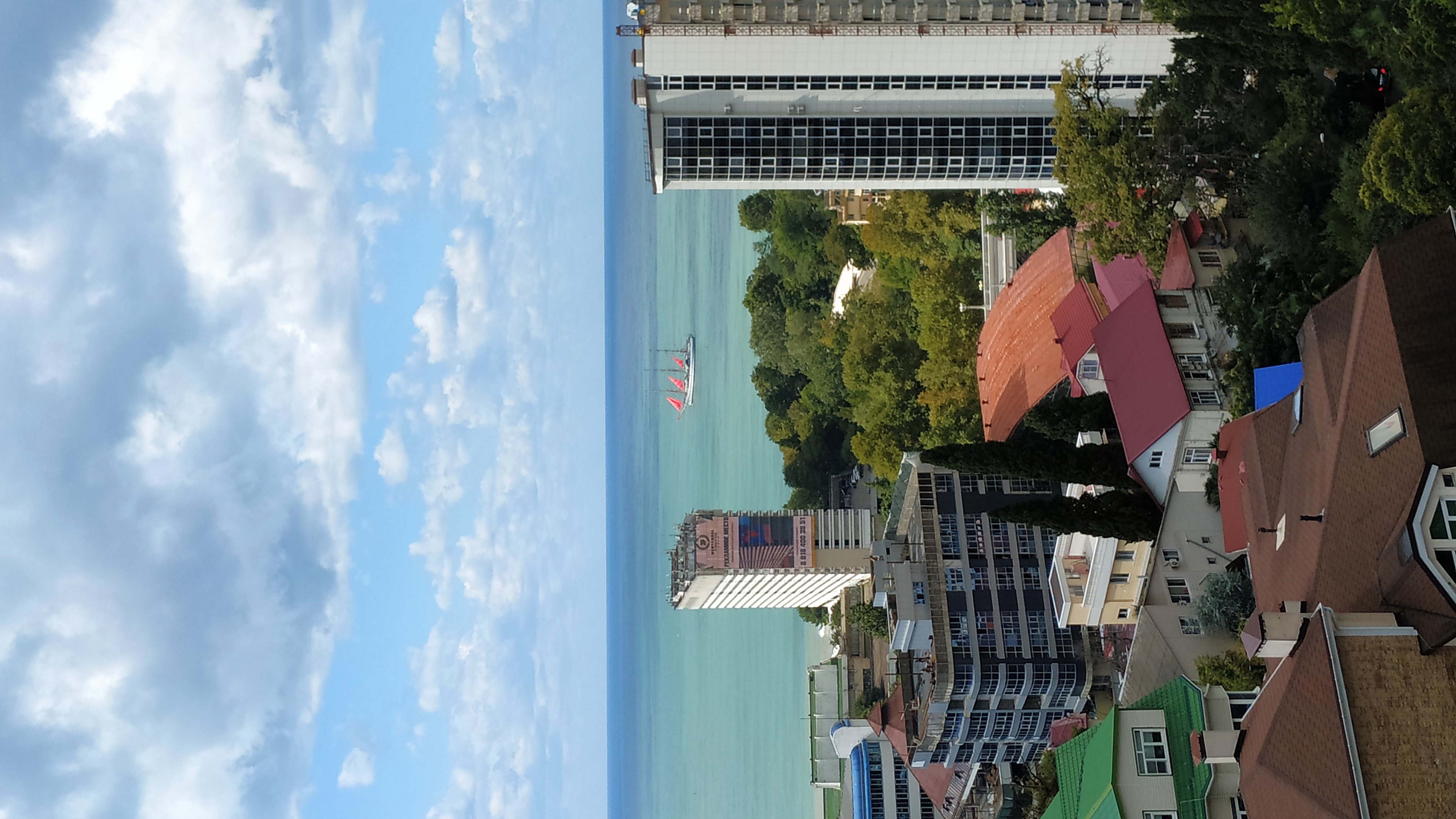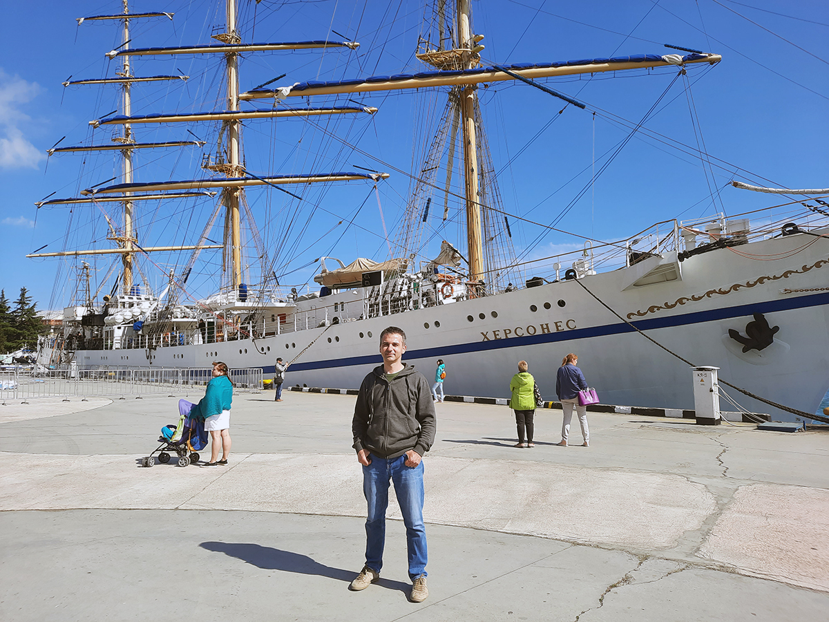 Удалось посмотреть на настоящий трехмачтовый парусник. Херсонес у набережной Ялты.