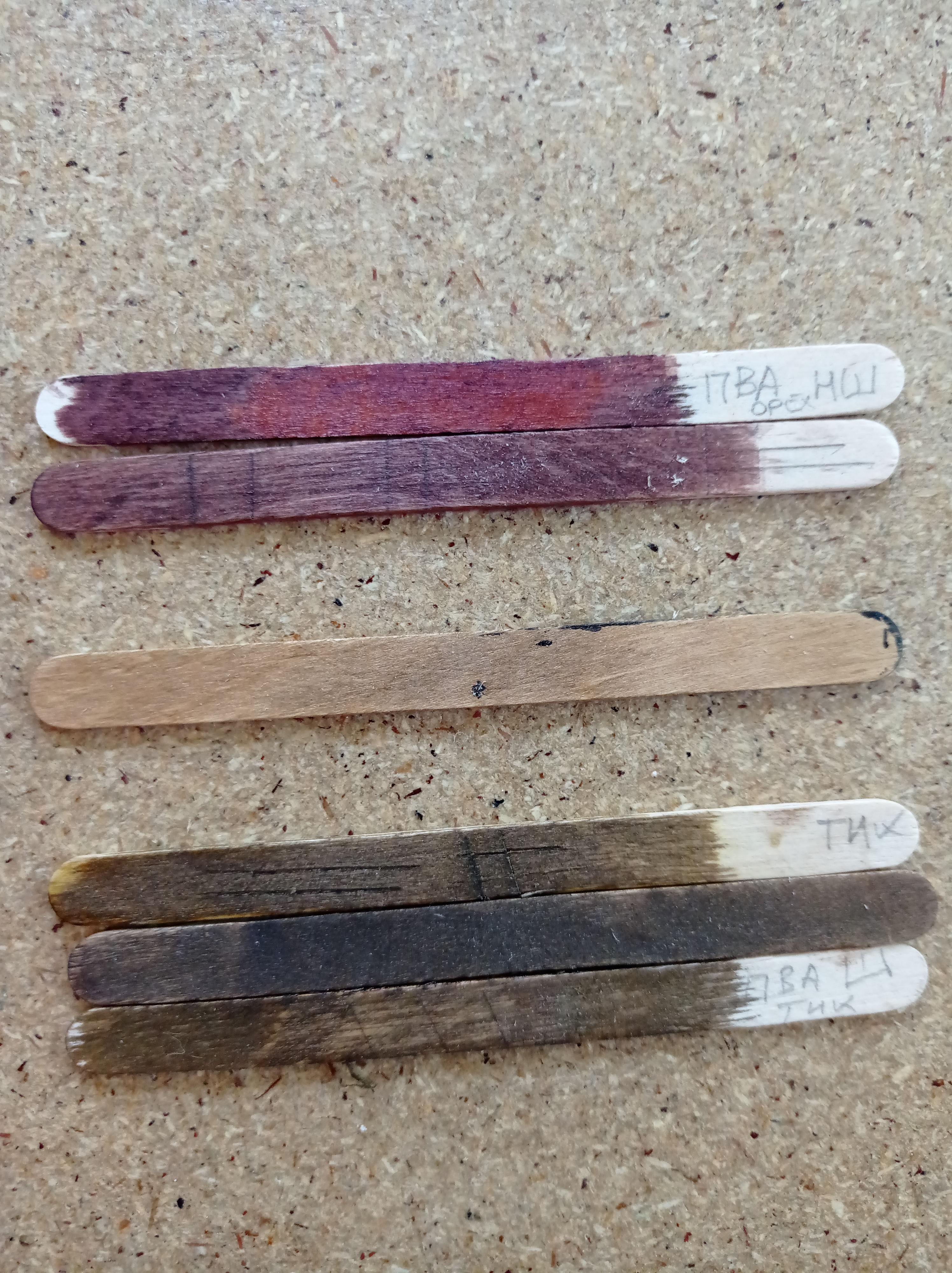 Единственное, что я обнаружил, что любая морилка плохо ложится на ПВА.