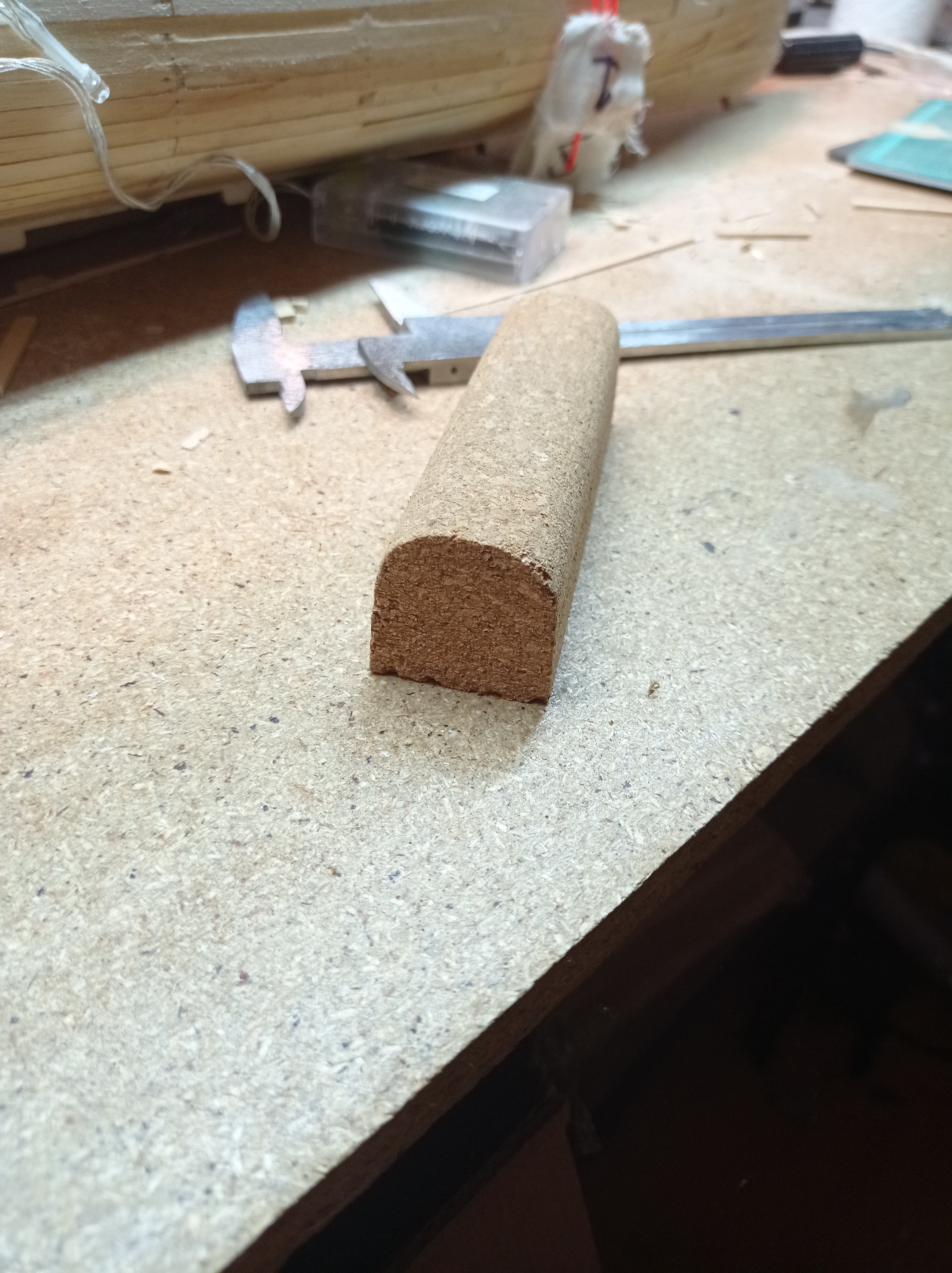 Шкурилку я сделал из пробкового блока. Шкурку просто наматываю. Благодаря этому добился более эффективного использования шкурки.