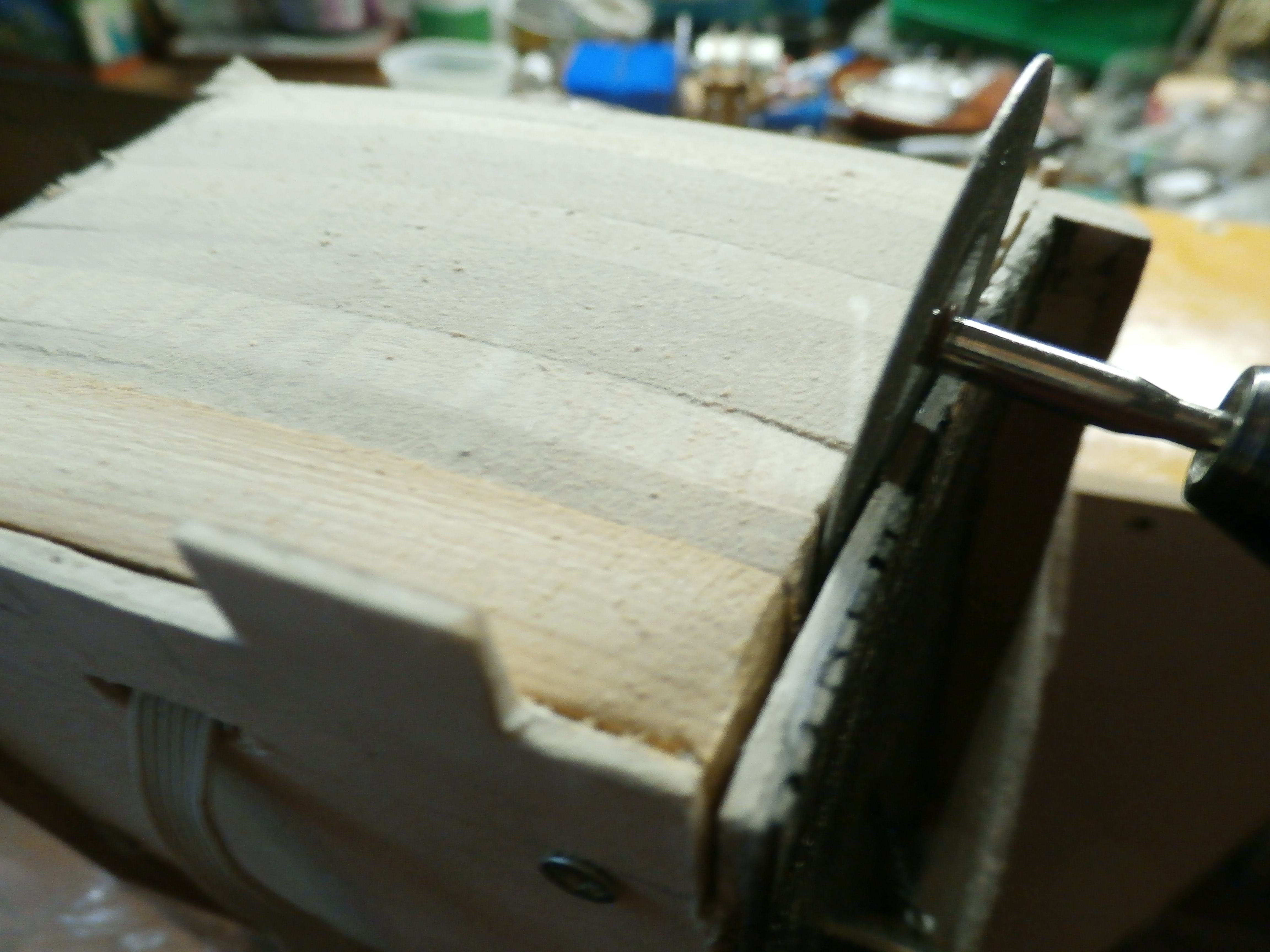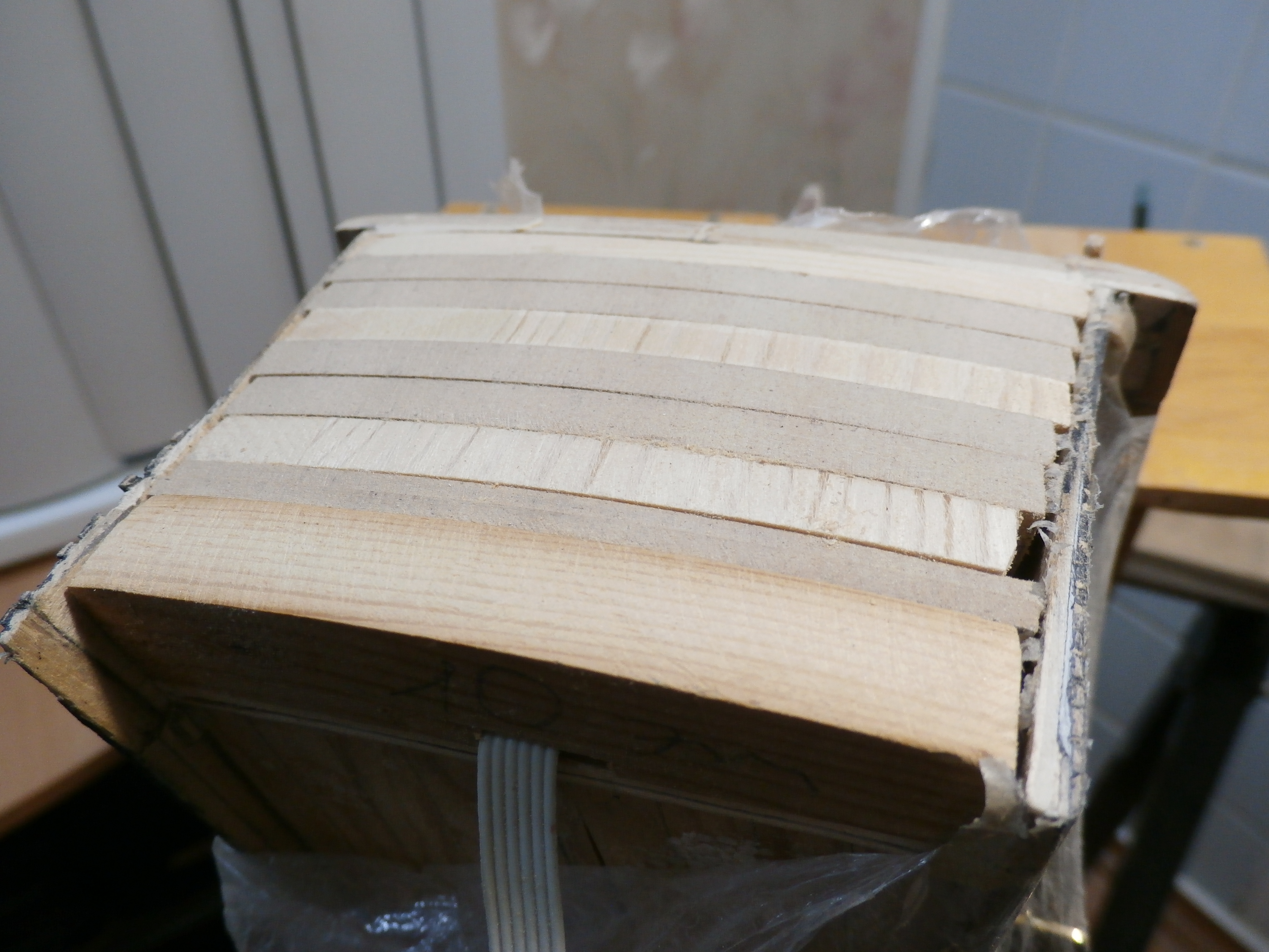 В прошлом посте я начал заполнять пустоты корпуса модели брусками от МДФ.