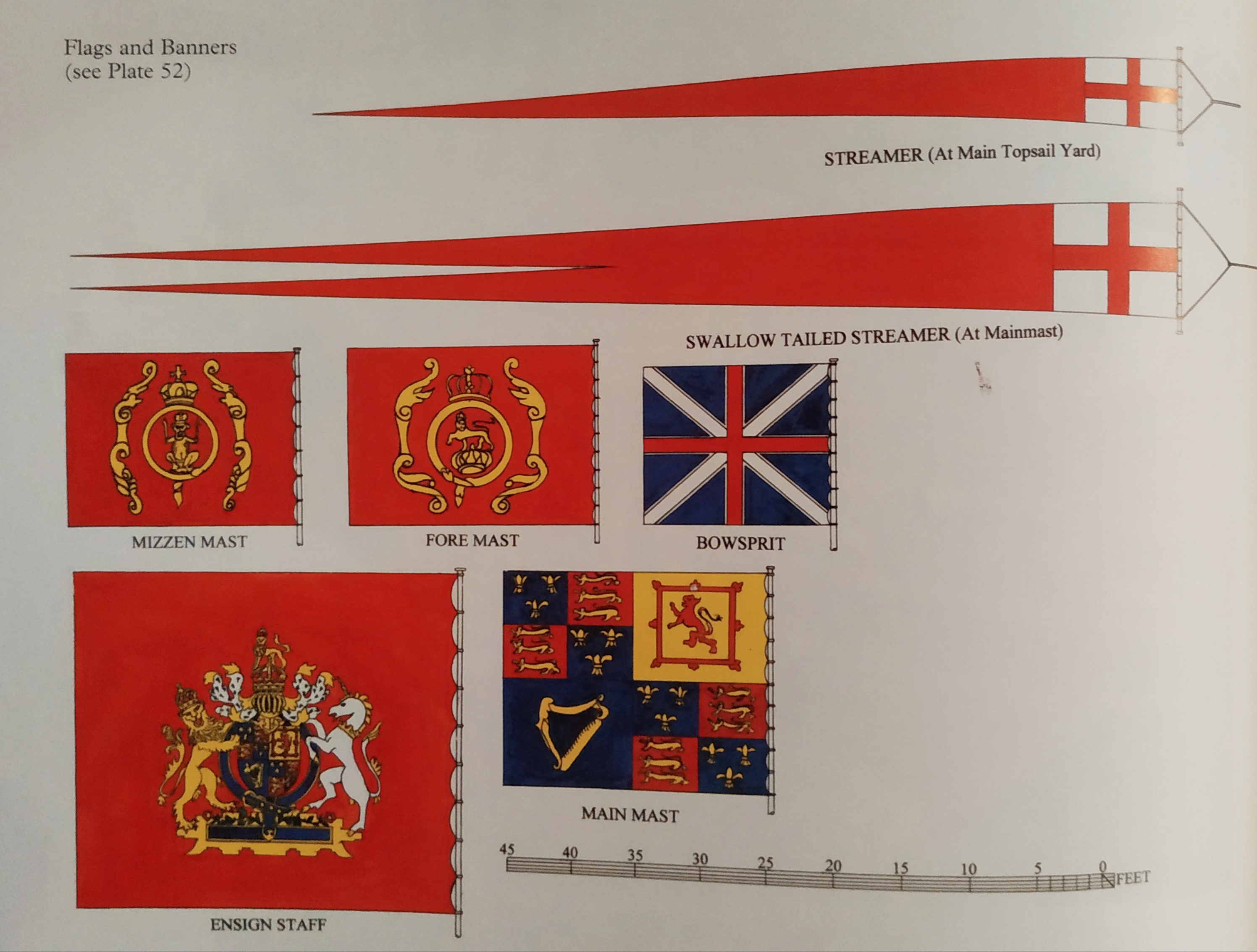 Это флаги из книги Джона МакКейя, © John McKay "Sovereign of the Seas 1637". А источник этой реконструкции всем известная гравюра Джона Пейна (John Payne) Хотел бы ещё раз подчеркнуть, что это гравюра, раскрасили её уже позже и другие художники.