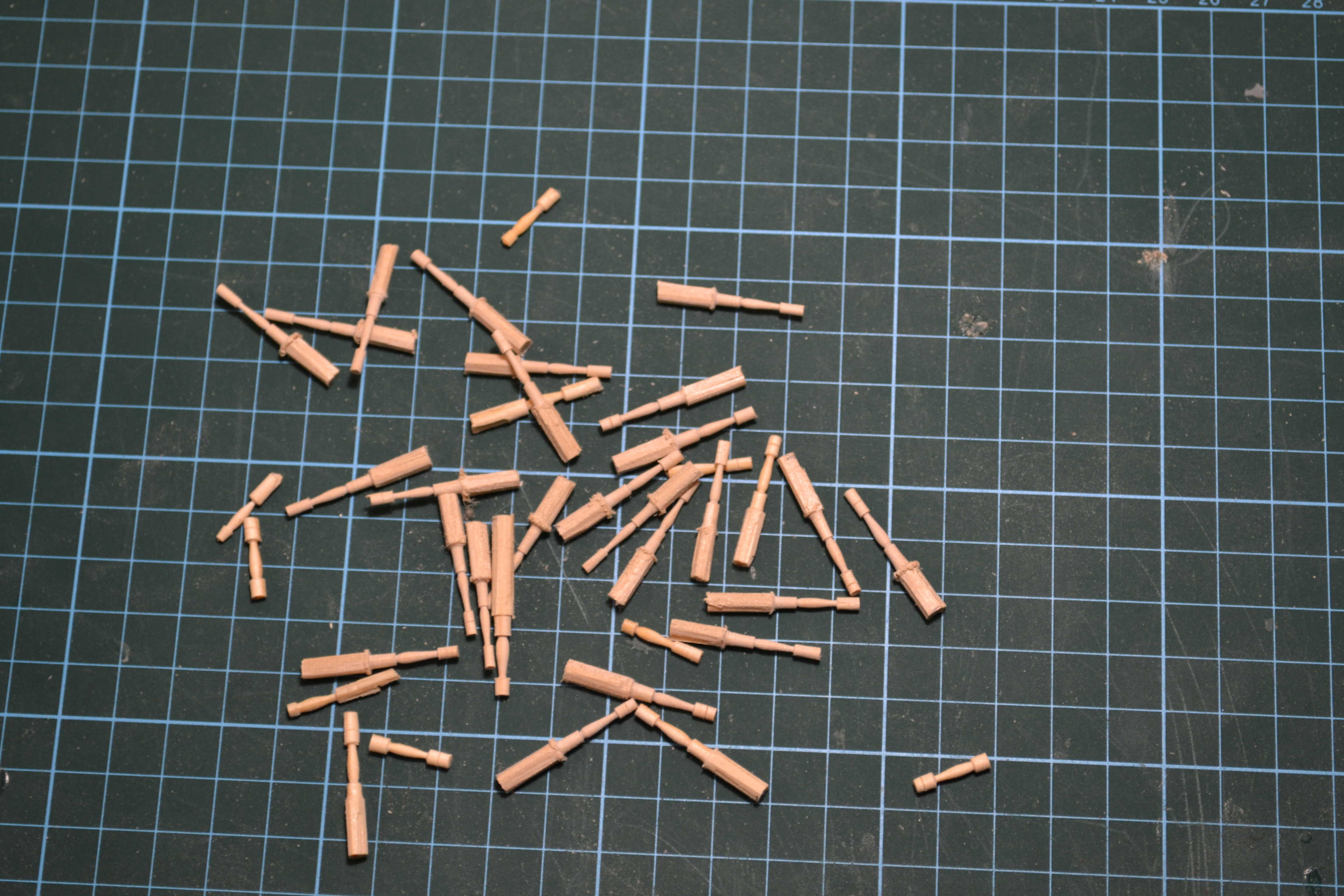 Ну вот закончил с ограждениями палуб. Меня результат устраивает. Кстати, спасибо Azet за то, что подсказал использовать бамбук. На мелких деталюшках точить одно удовольствие. Он прочнее березы и не так ломается. Хотелось бы попробовать точить самшит на проксоне, но на это у меня нема золотого запасу. Так что точил на китайце бамбук :D .
