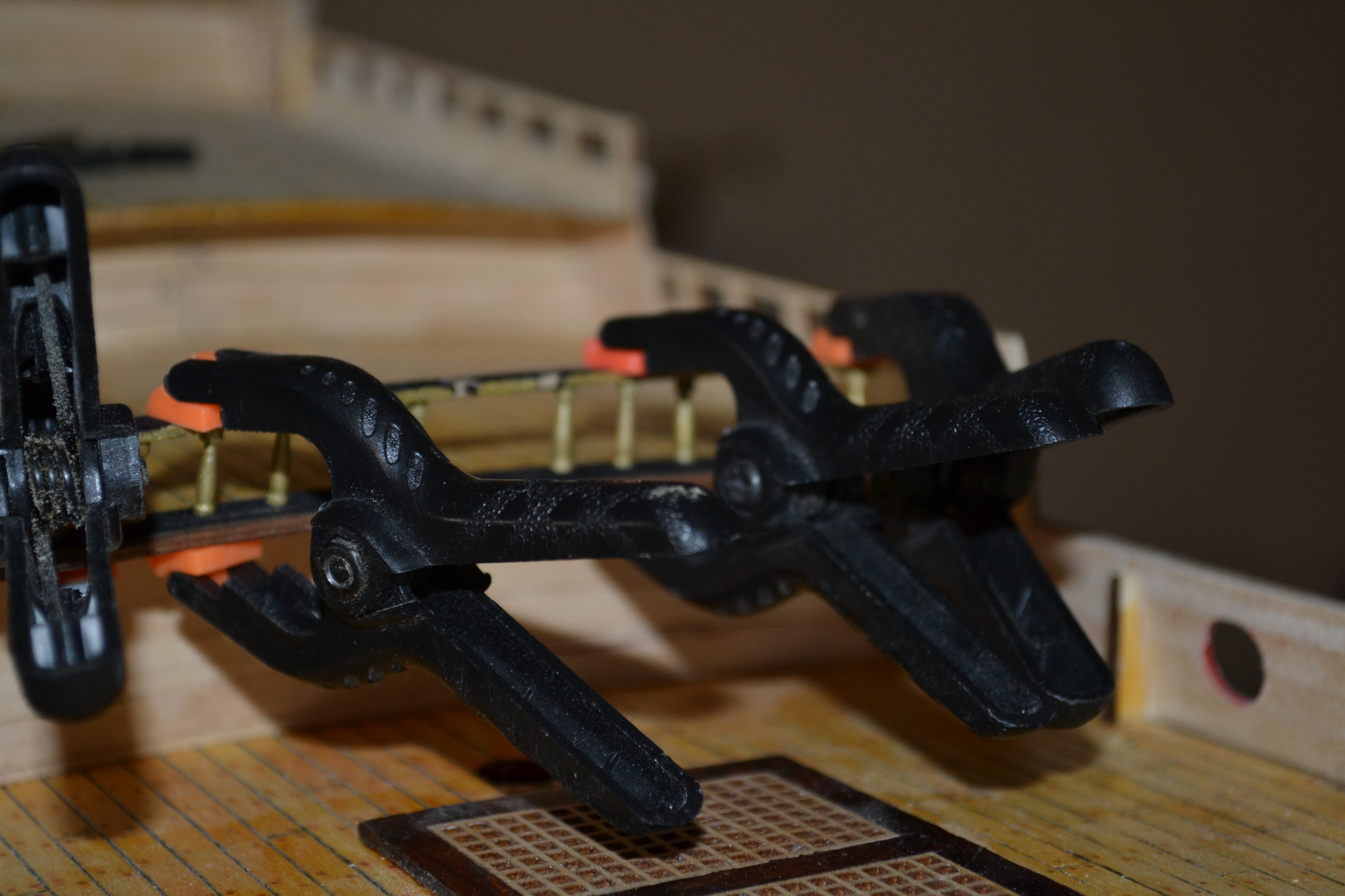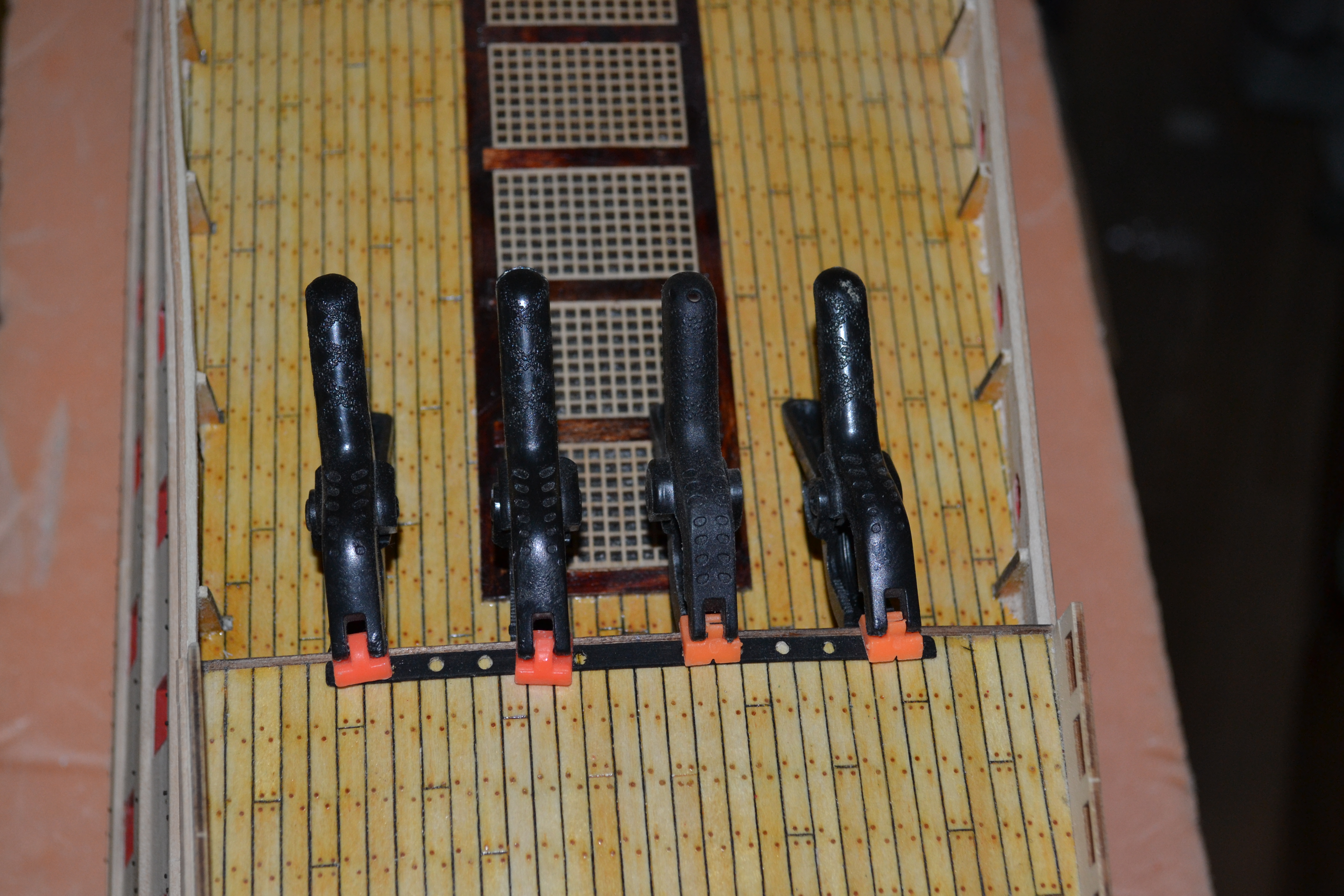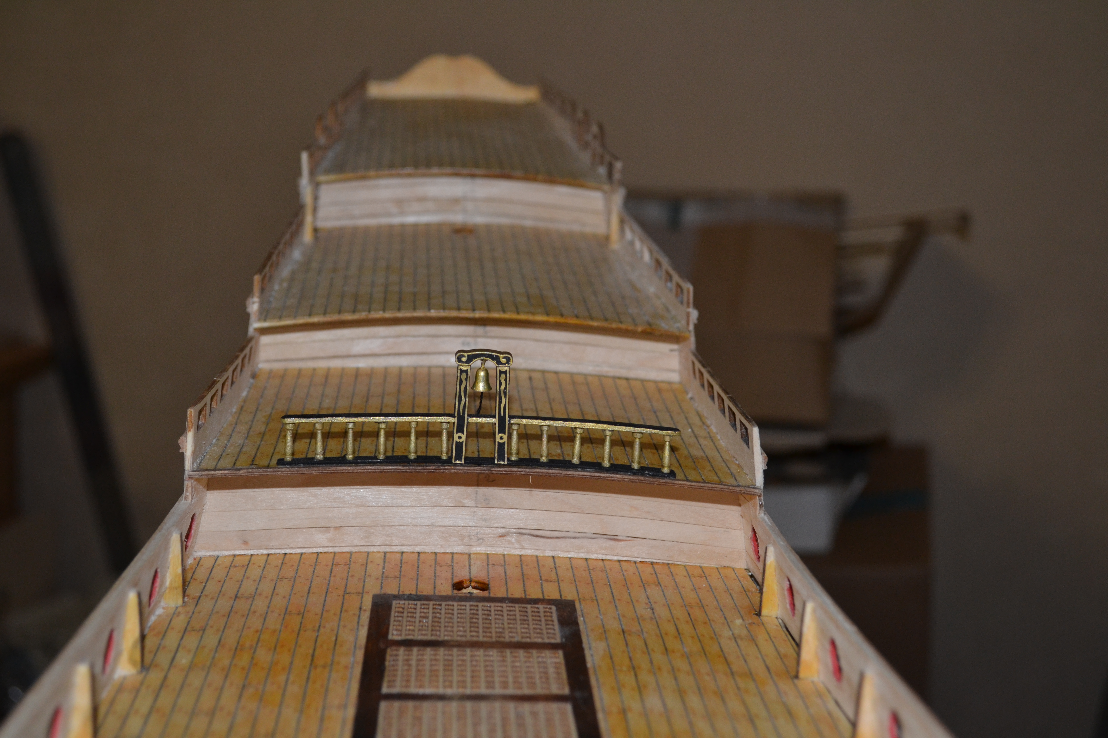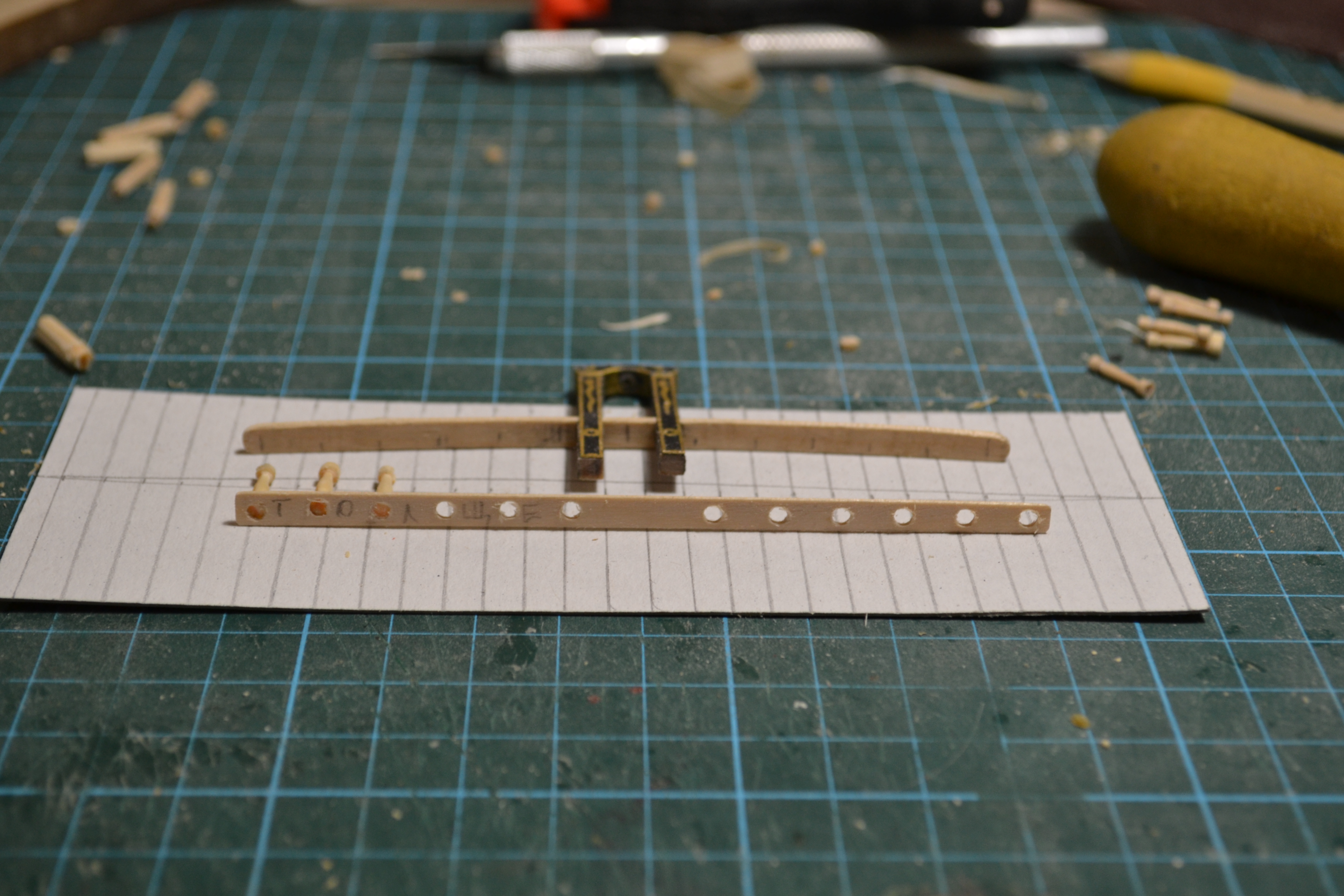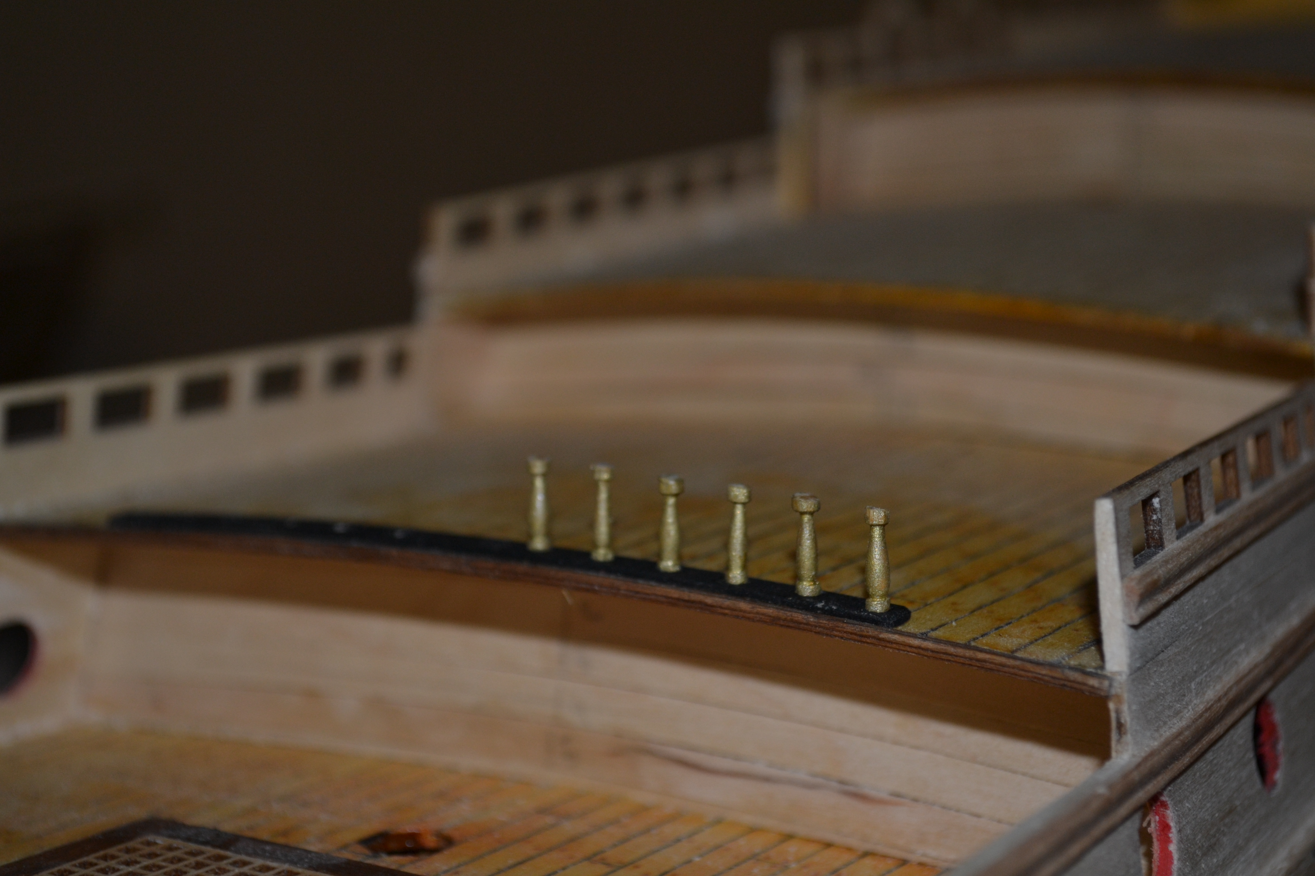 Ну вот закончил с ограждениями палуб. Меня результат устраивает. Кстати, спасибо Azet за то, что подсказал использовать бамбук. На мелких деталюшках точить одно удовольствие. Он прочнее березы и не так ломается. Хотелось бы попробовать точить самшит на проксоне, но на это у меня нема золотого запасу. Так что точил на китайце бамбук