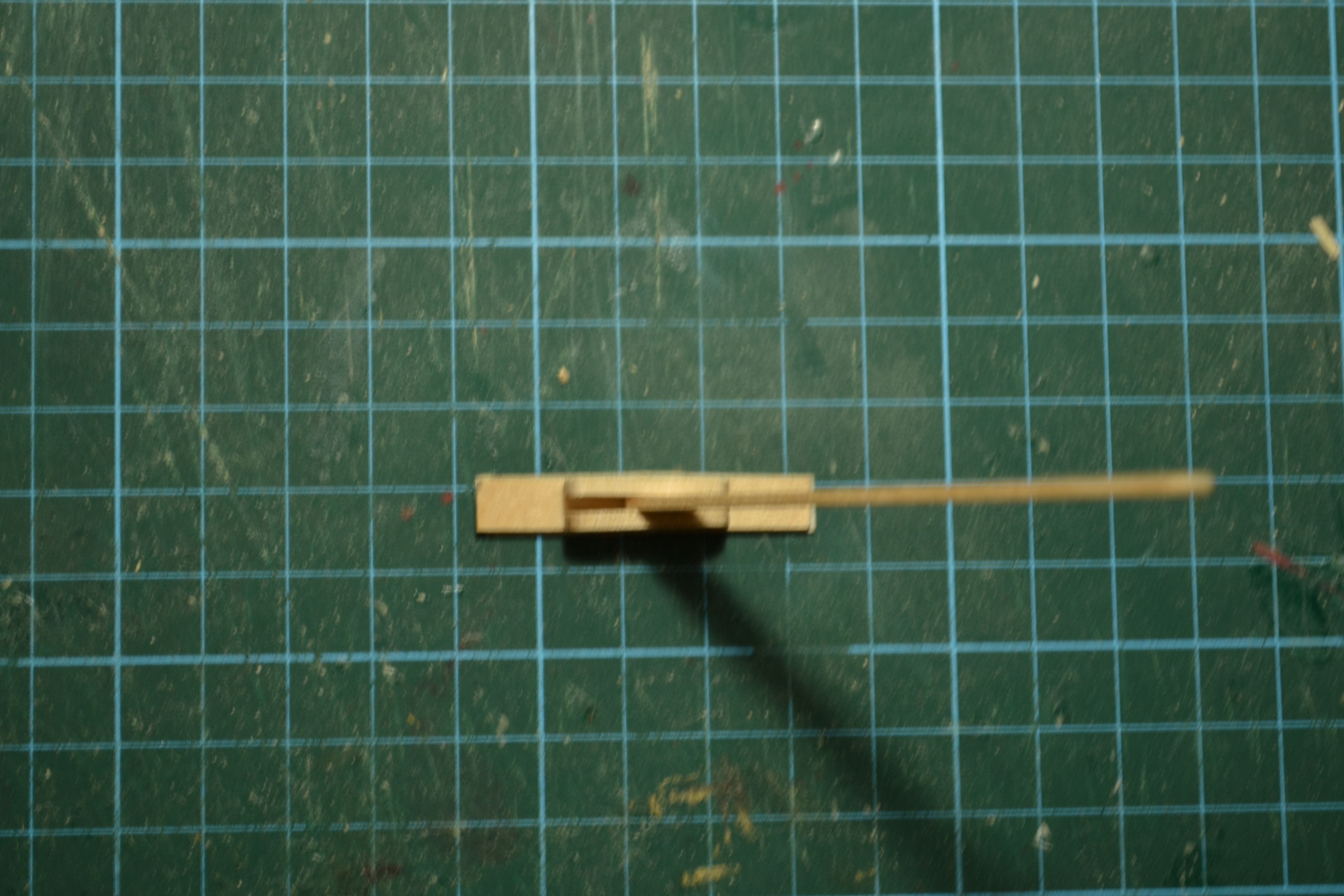 Итак изготовление ограждения и колокольни на шканцах. После изготовления балясин готовим нижнюю планку. Я ее сделал из планки черновой обшивки. Только сделал ее тоньше (толщина 1 мм) и уже - ширина 4 мм (как у перил). В ней сверлим дырки под балясины.