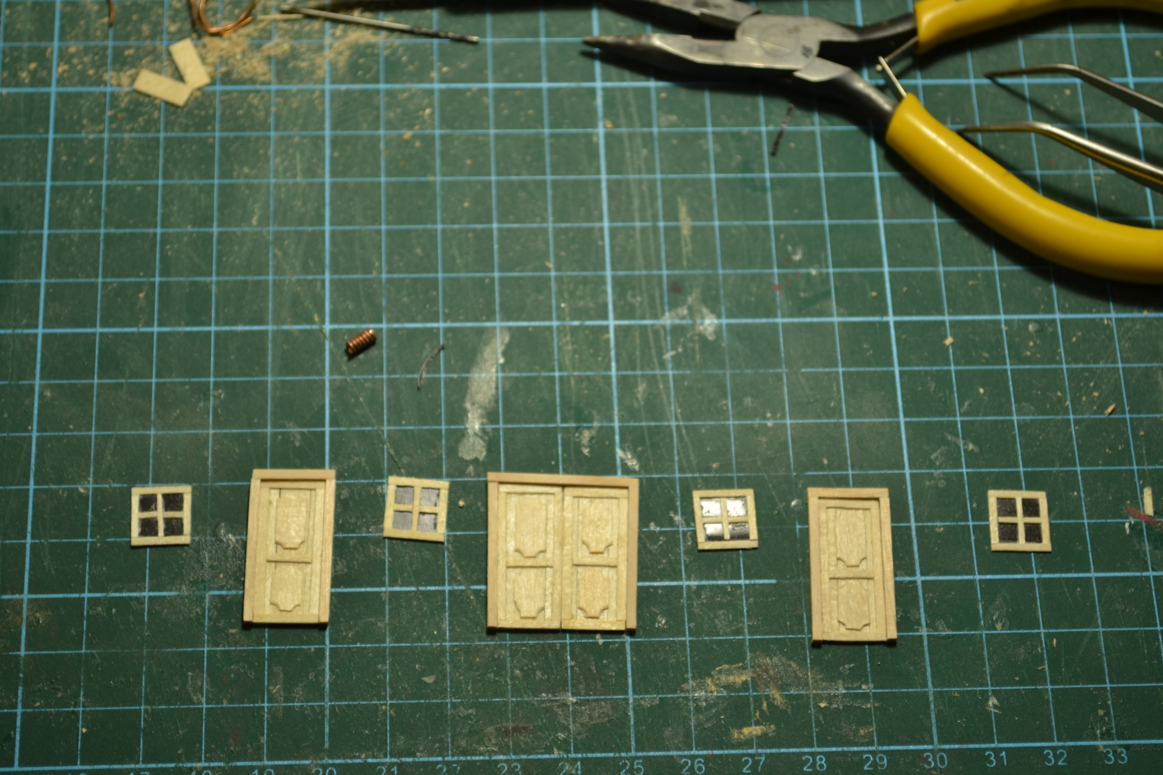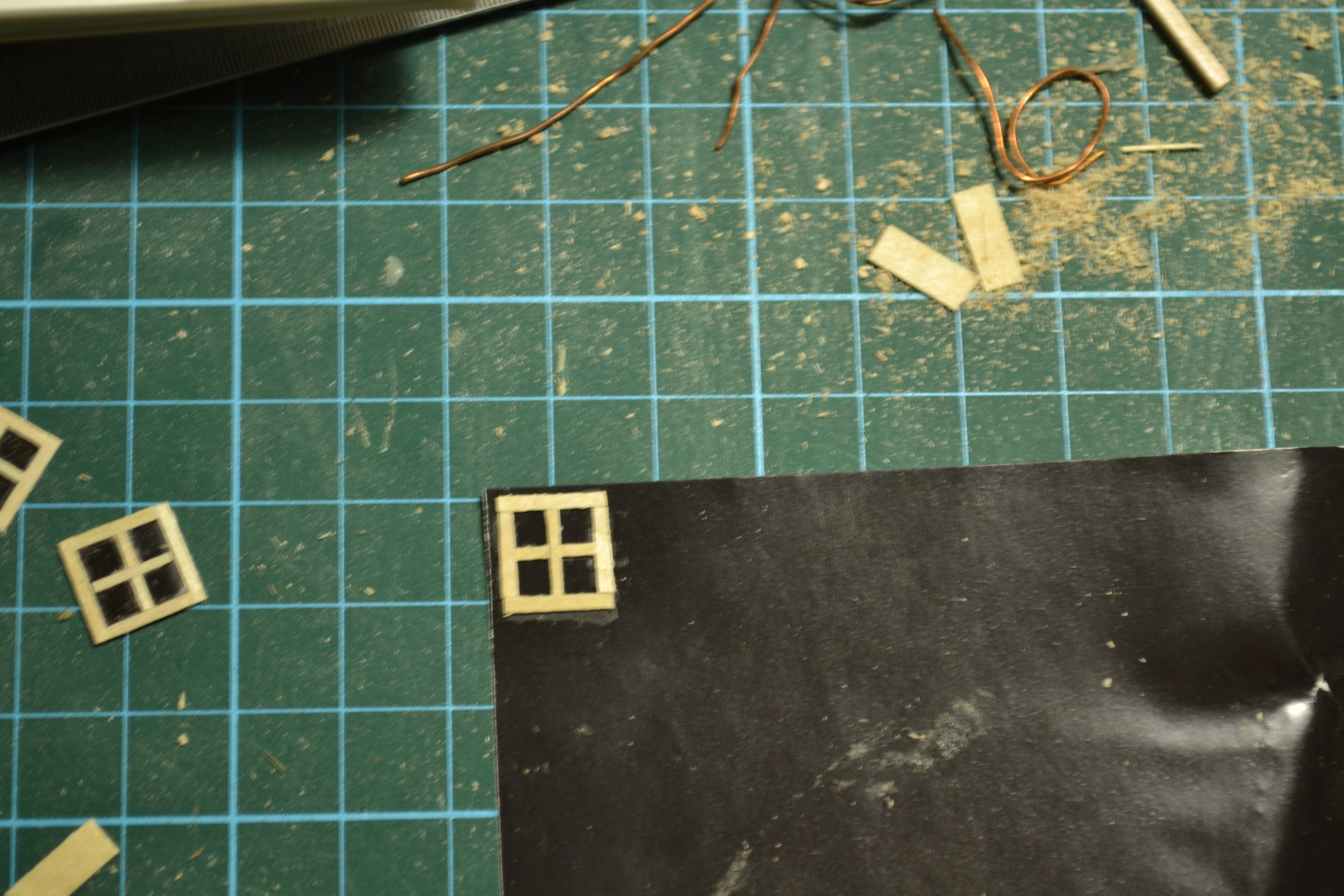 Для окон использовал черную глянцевую бумагу. просто приклеил к ней планки, имитирующие раму.
