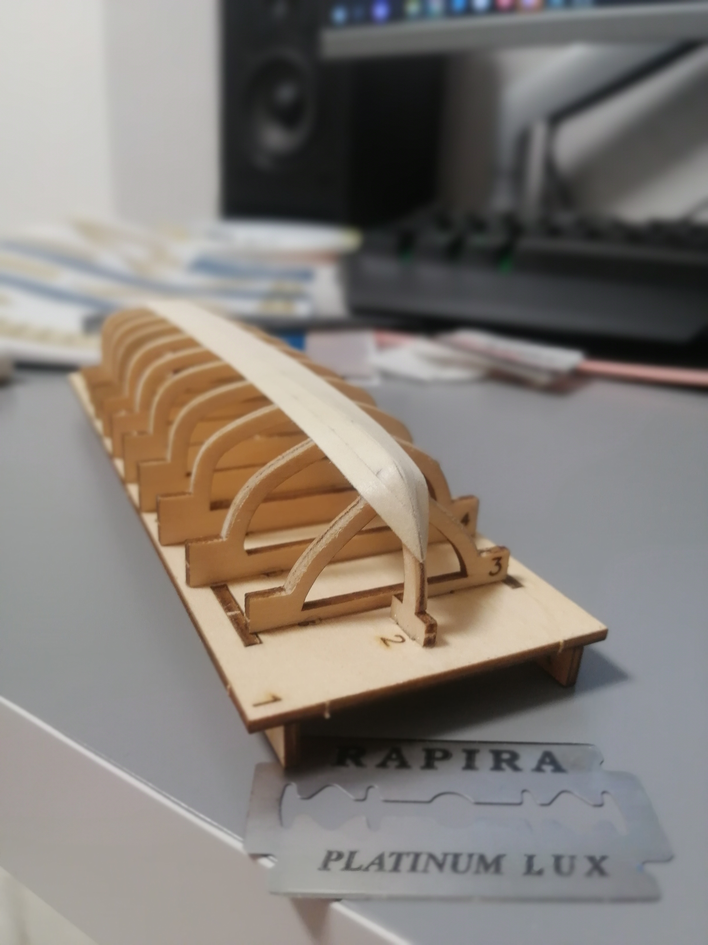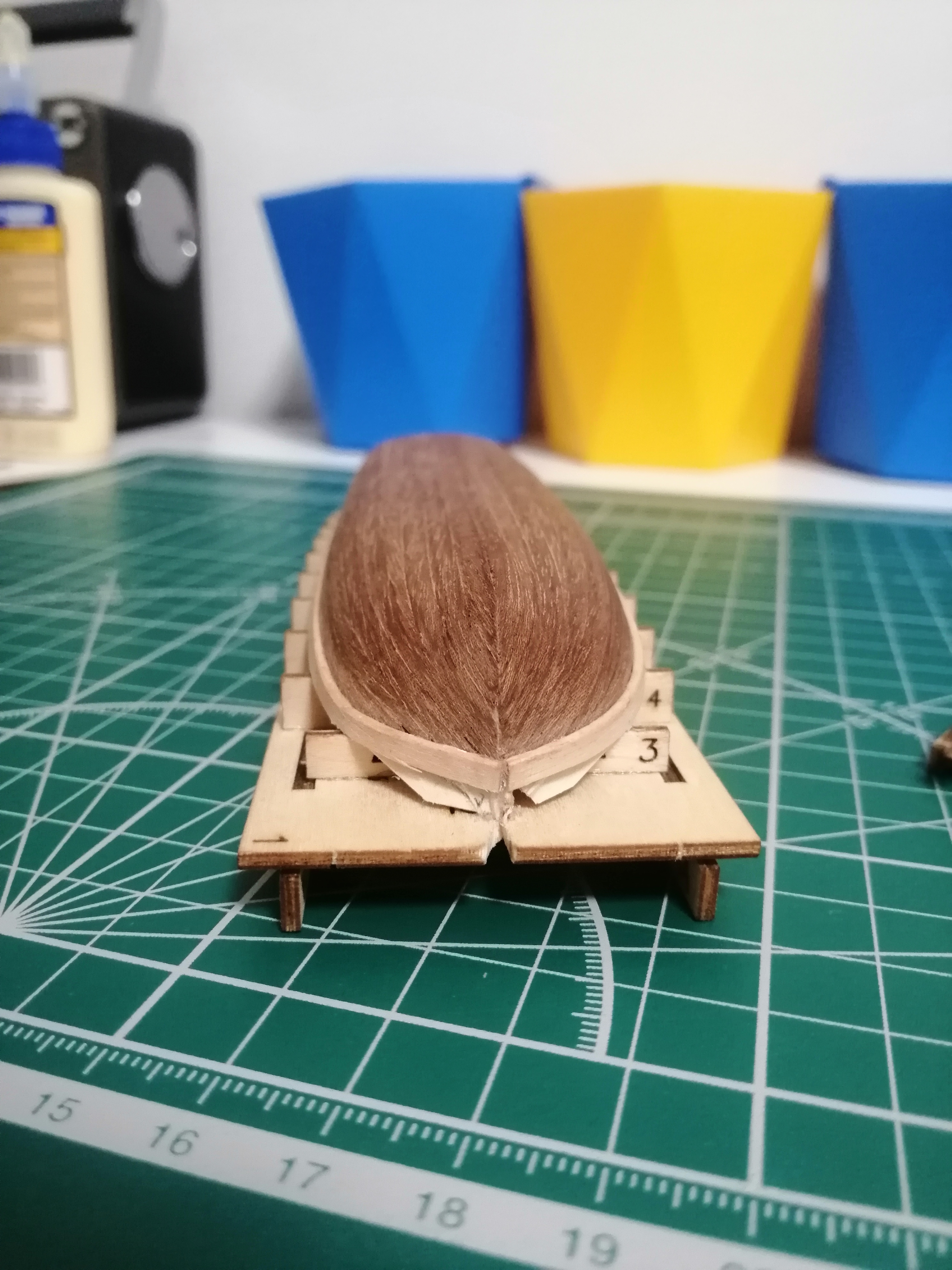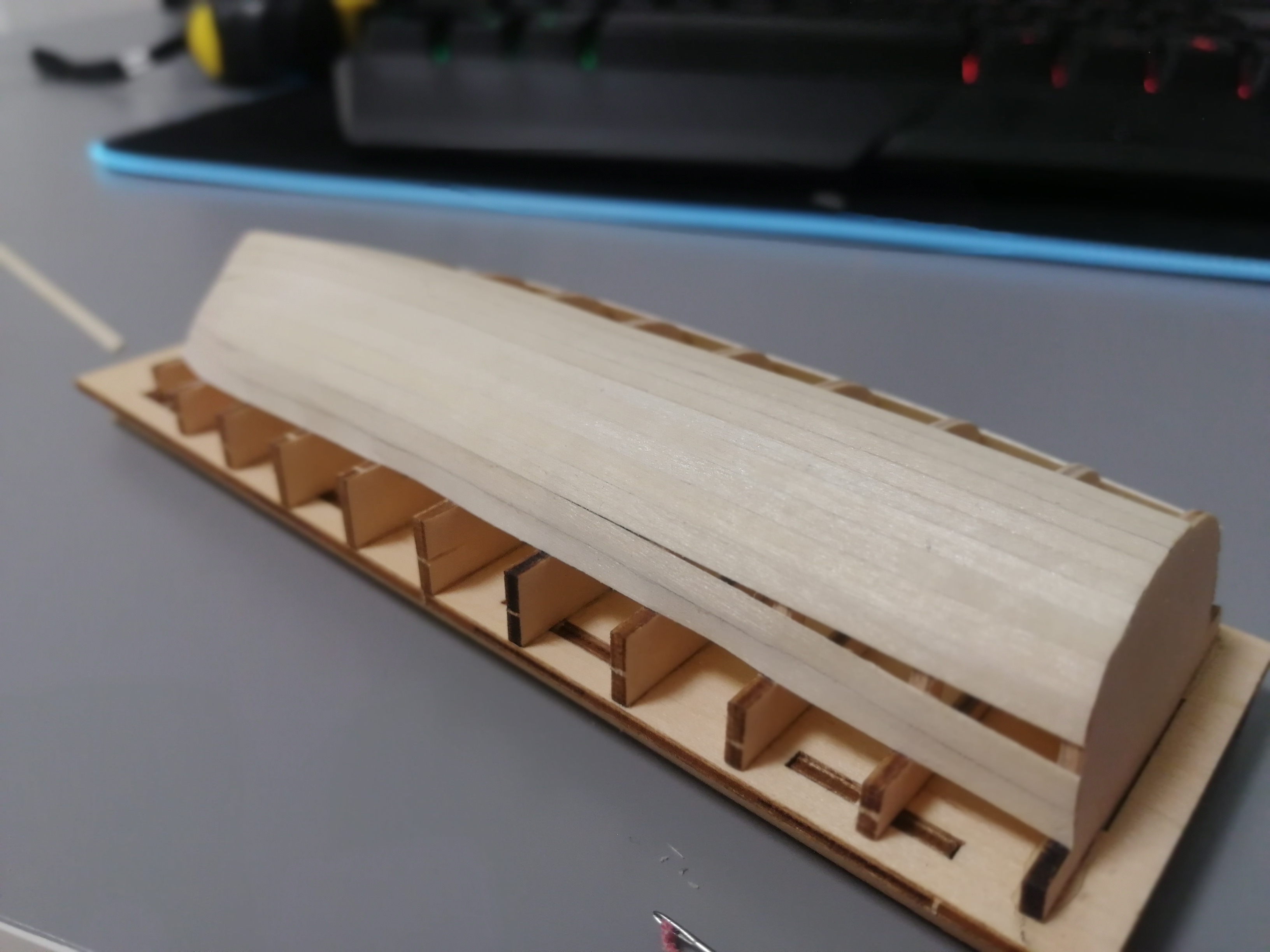 нет все на сухую правда надо было побольше 1и 2 шпангоут подпилить изгибы реек видны