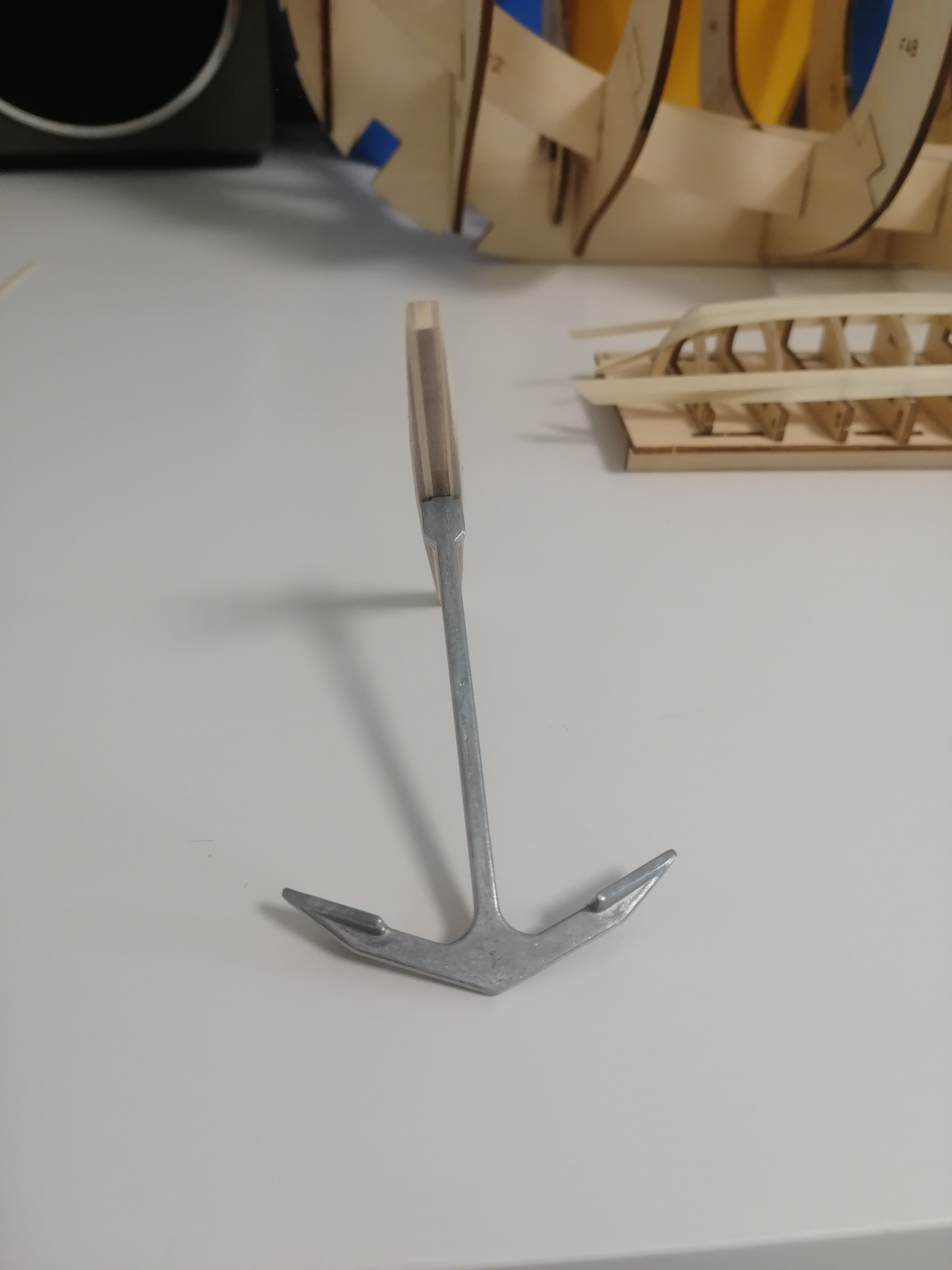 Пробегая мимо я заметил не большой недочет в якоре вашей модели. Верхняя плоскость перекладины якоря (шток) должна быть сугубо горизонтальная, а нижняя плоскость штока скошена от центра к краям.