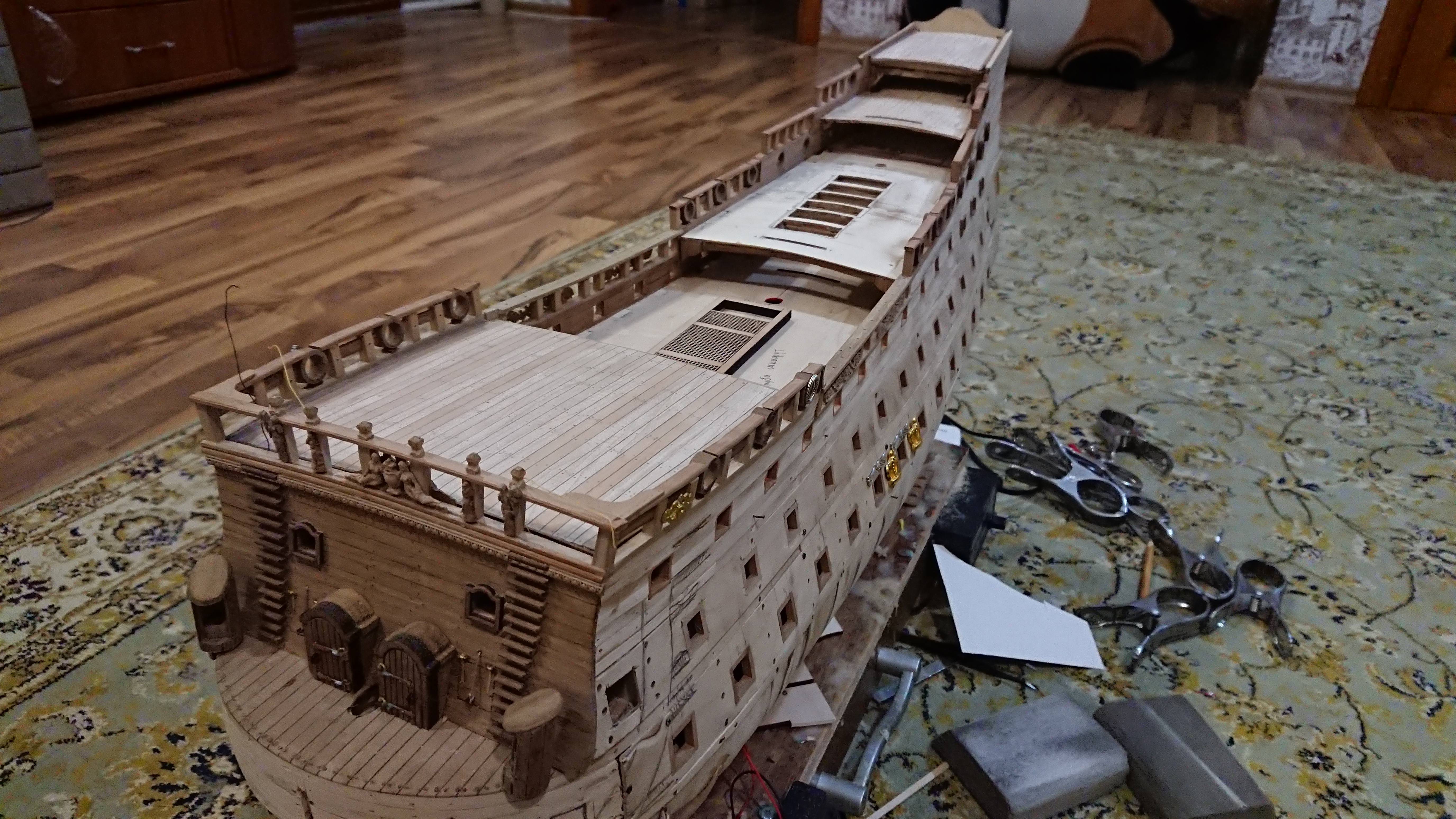 На данный момент занимаюсь бортами с внутренней стороны, круглыми пушечными портами