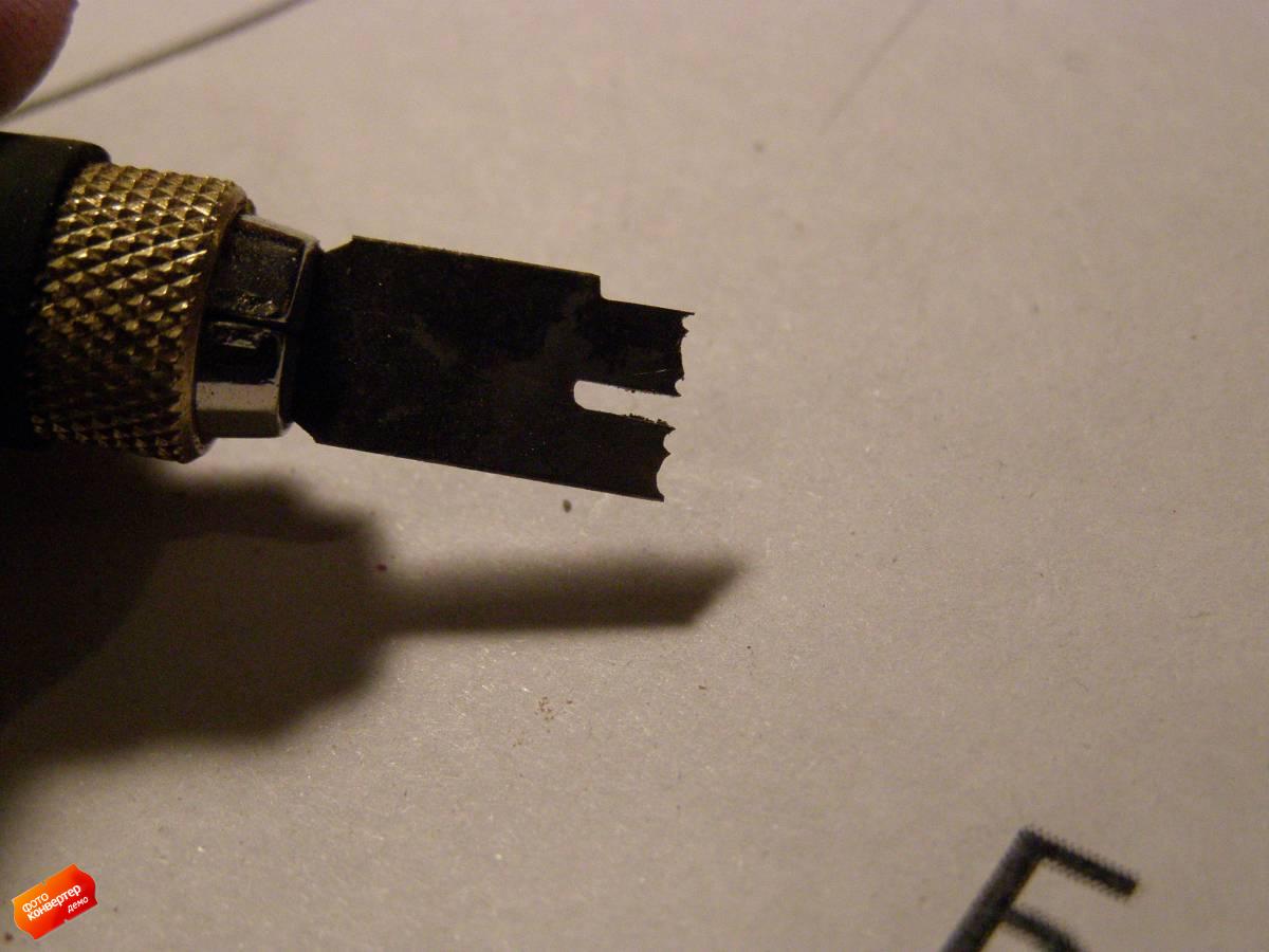 На двух мм и тоньше в зависимости от станочного парка можно и мини фрезу сделать на бормашинку, делать из гвоздя и проточить на нем профиль, или сложнее из полотна ножевки по металлу, но тут надо ещё саму пластинку припаять к валу который будет в патрон заниматься, всё это от возможностей моделиста