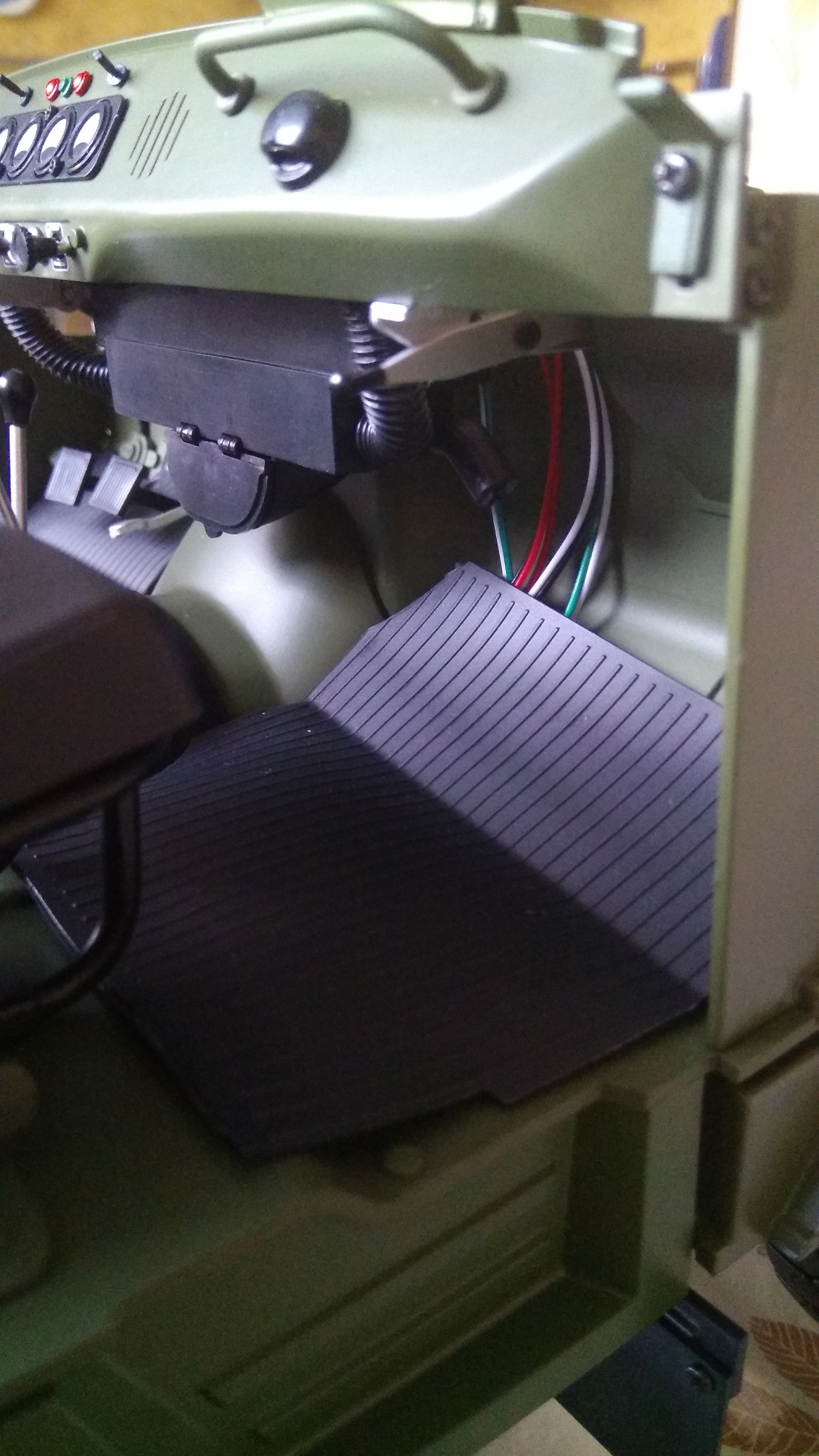 Так как всё-таки решился половой вопрос? Я бы посмотрел на оригинале, но у меня машина более поздняя и уже с подвесными педалями... А у нашей модели явная ошибка либо с отверстием пола (сильно смещено влево), либо с педалями - прижаты к раме...