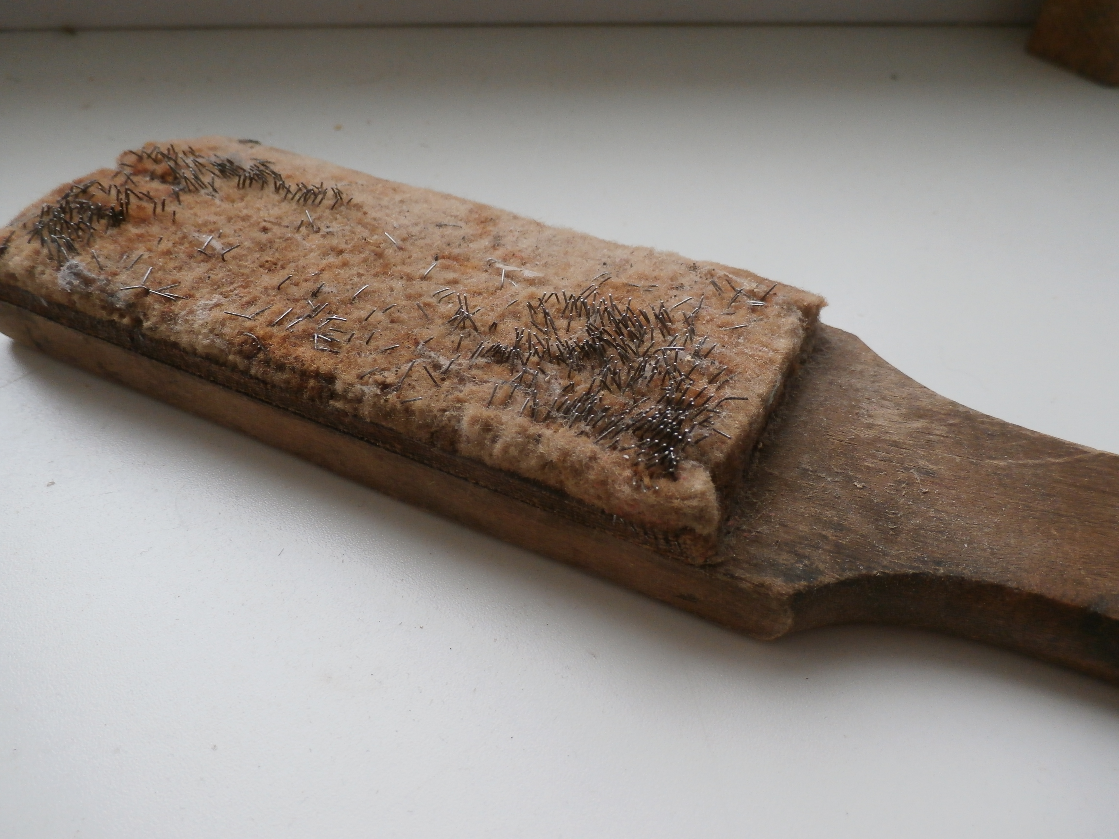 Для очистки "забитого " напильника, надфиля были придуманы кардщетки. Щетка с стальной щетиной. У меня сохранилась такая, правда от интенсивной эксплуатации и долгих лет жизни практически "беззубая", но как ни удивительно она всё еще справляется со своими обязанностями, хотя с грехом по полам. Китай предлагает мини кардщетки с пластиковыми ручками по виду похожими на зубные щетки с металлической щетиной. Правда к сожалению длинная щетина практически сразу же "сваливается" в комок и перестаёт выполнять поставленную перед ней задачу. Советую после покупки такую щетку подстричь как можно ниже ножницами "по металлу" и тогда она будет вам нормально очищать ваши надфили и напильники. Полностью согласен с автором: для успешной работы с деревом предпочтительные так называемые "алмазные" надфили. У них выше КПД! Для металла все же лучше обычные "классические - стальные. При долгой работе насечка на надфиле стирается, но советую их не выбрасывать особенно те, что из времен СССР. Хорошая сталь! Из них получаются не плохие по качеству мини резцы, мини стамески. В будущем вам потребуется мини инструмент для работы с судо моделями различной формы и размеров. И последнее: Многие, ошибаясь, хранят свои надфили в продолговатых коробочках "навалом", часто даже с различными сверлами Что очень плохо сказывается на "здоровье" вашего" инструмента! Насечка, лезвия инструмента тупятся и и безвозратно стареют... Каждое сверло, каждый надфиль должен иметь своё персональное место! Не касаясь своих товарищей! Хотя бы в том "фирменном" полиэтиленовом футляре, в котором вы купили его в магазине. Удачи всем вам и конечно Здоровья!