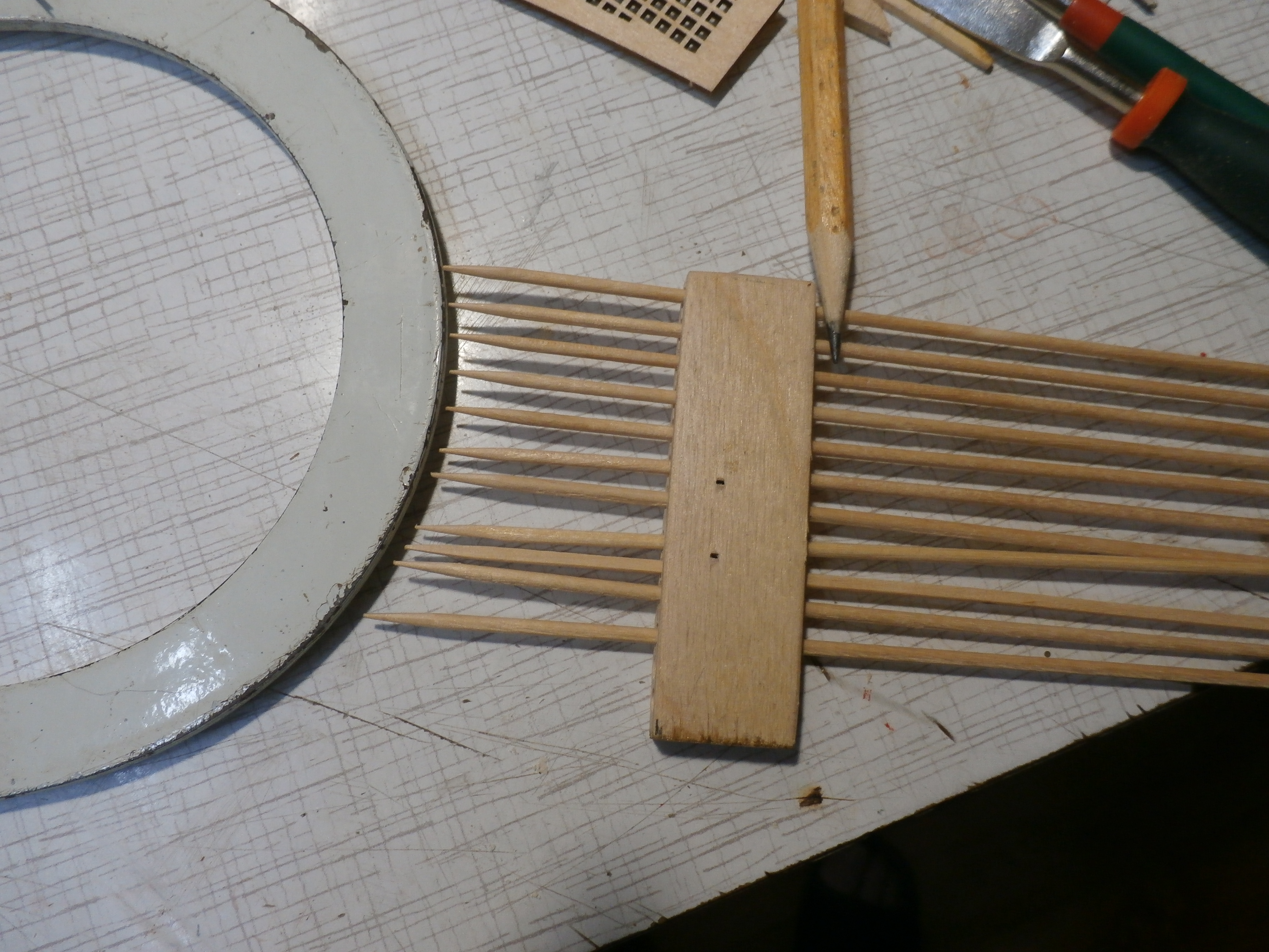 Здравствуйте , Сережа объясните как можно собрать и установить стойку с бамбуковыми палочками из Вашей фотографии, где показали собранную эту подставку с бамбуковыми палочками китайскими шампурами и как делать разметку по овалу корпуса корабля - Повелителя - я 3 стойки выпилил но не знаю как собрать в просанрленвх отверстия стойки эти палочки круглые с уважением Юра