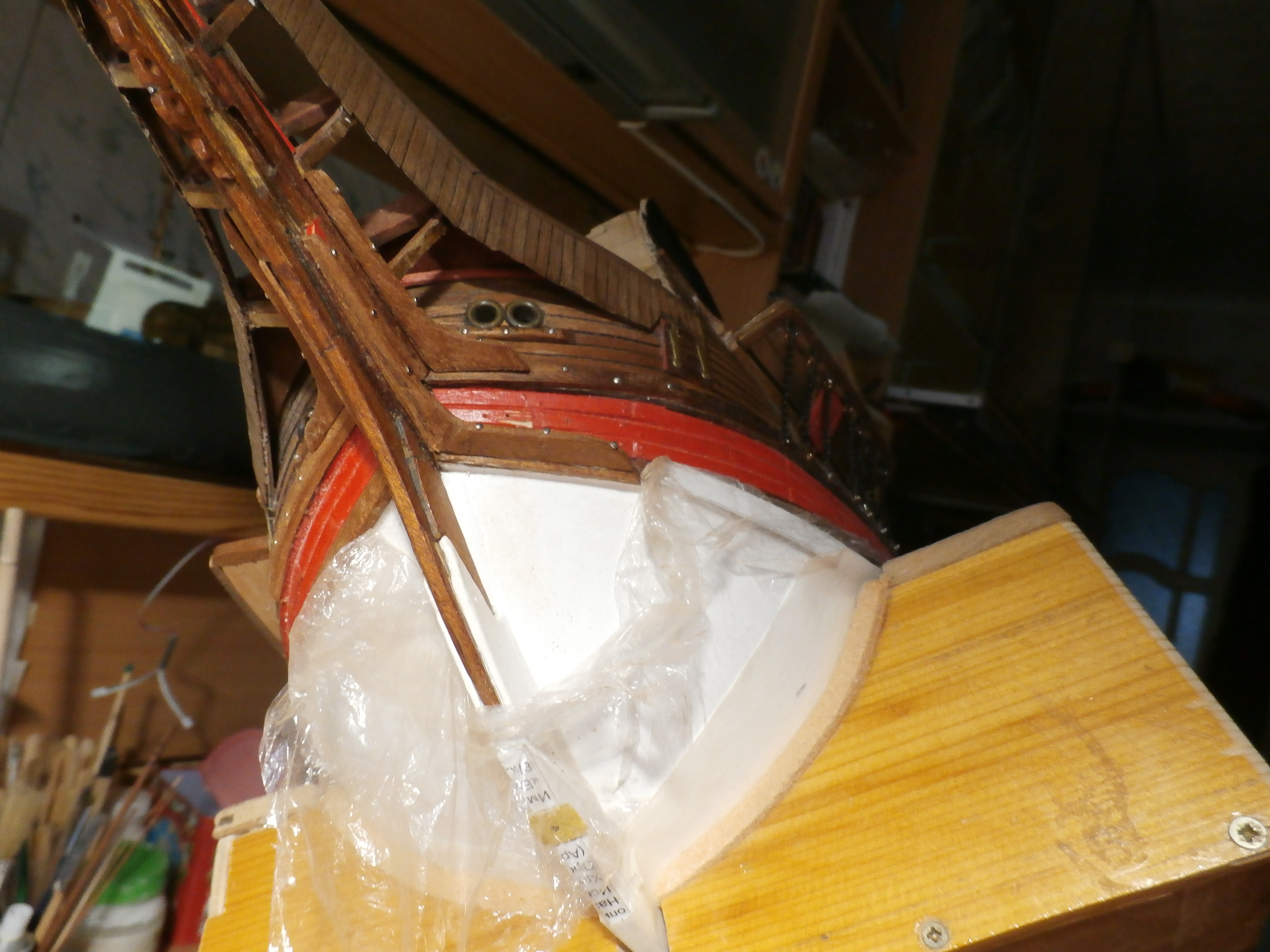 Основные проблемы ожидающие вас: 1. Размеры листов обшивки. Судостроители в прошлые века для обшивки использовали стандартные листы меди. На просторах интернета курсируют т, н. Штаты ВМФ. Это таблицы в которых указаны эти листы, нужно будет вам пересчитать с дюймов, футов на метры и затем на ваш масштаб модели. 2. Медь металл активный. При наклейке нужно продумать систему обезжиривания как корпуса, так меди, иначе со временем листочки начнут осыпаться. Человеческие руки оставляют пото-жировые следы, а значит придется работать в перчатках. Листочки я приклеивал секундным клеем. Но наклеивают и термо клеем. Секундный клей довольно ядовит. Производители предлагают работать на сквозняке. Термо клей грозит ожогом. При под"еме и опускании модели на стол или на полку берясь за корпус модели обязательно хватаешься за эту металлическую обшивку. Если же руки не защищены материалом то через день - два начинают на корпусе проявляться безобразные черные пятна.Все это нужно учитывать.