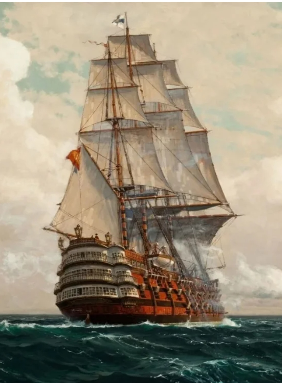 И я не уверен, что на картине "Сантисима Тринидад"... Картина называется "Корабль в море", автора сейчас не вспомню, сорри...