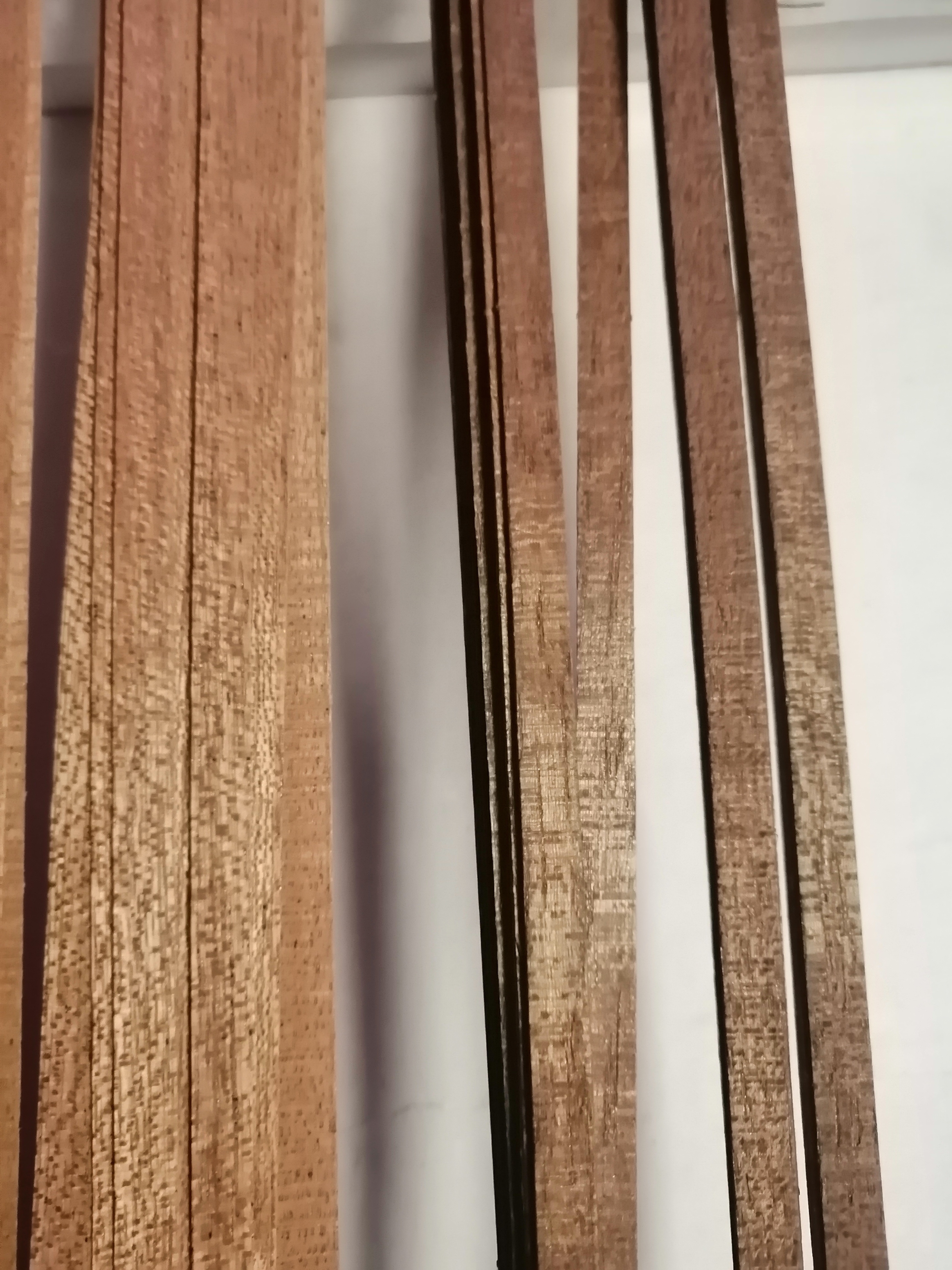 Очень интересно, там где у Вас выкраска, на палочке написано орех, цвет какой то красноватый, с фиолетовым, орех же чисто коричневый. А тик не зеленоватый, он скорее светло коричневый, ближе золотистому, бывает темнее, но всё же золотистый. Морилка неадекватная, лучше использовать "цвета дуба", светлого и тёмного, они реалистичней под тик, орех. Под красное дерево можно использовать ольху, близка по цвету и текстуре.Shuriksun писал(а): ↑25 авг 2022, 09:48 Морилкой, по моему, лучше ДО склейки пользоваться.