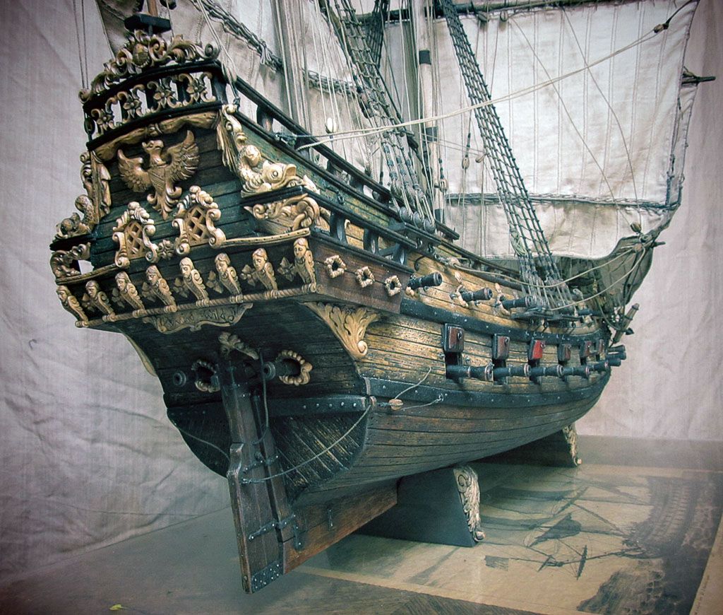 Оклейка велась непосредственно так, как велась на настоящих кораблях: внахлёст, от кормы к носу и от киля вверх.