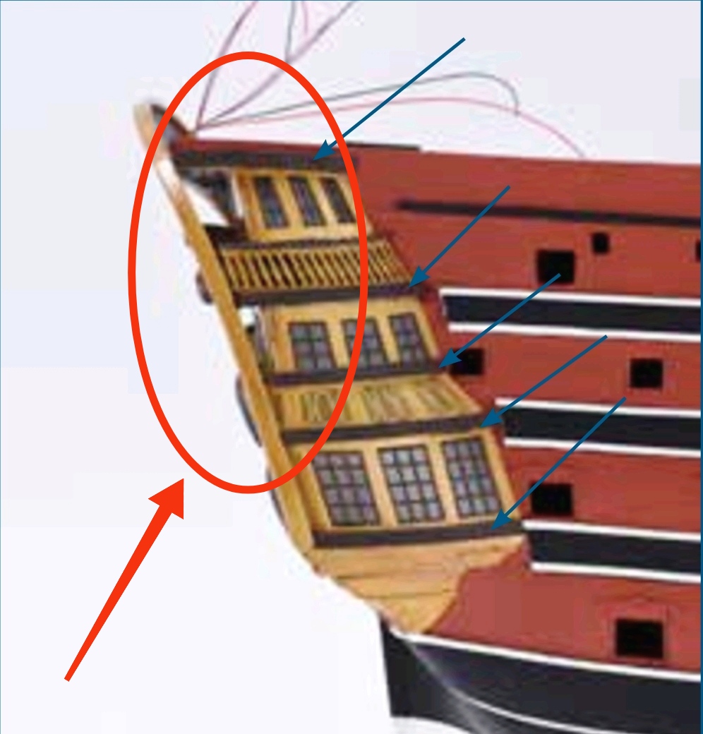 Обратите внимание на эти дыры между боковыми галереями и кормовым декоративным элементом...Разве это нормально? Поправьте меня, если я ошибаюсь.