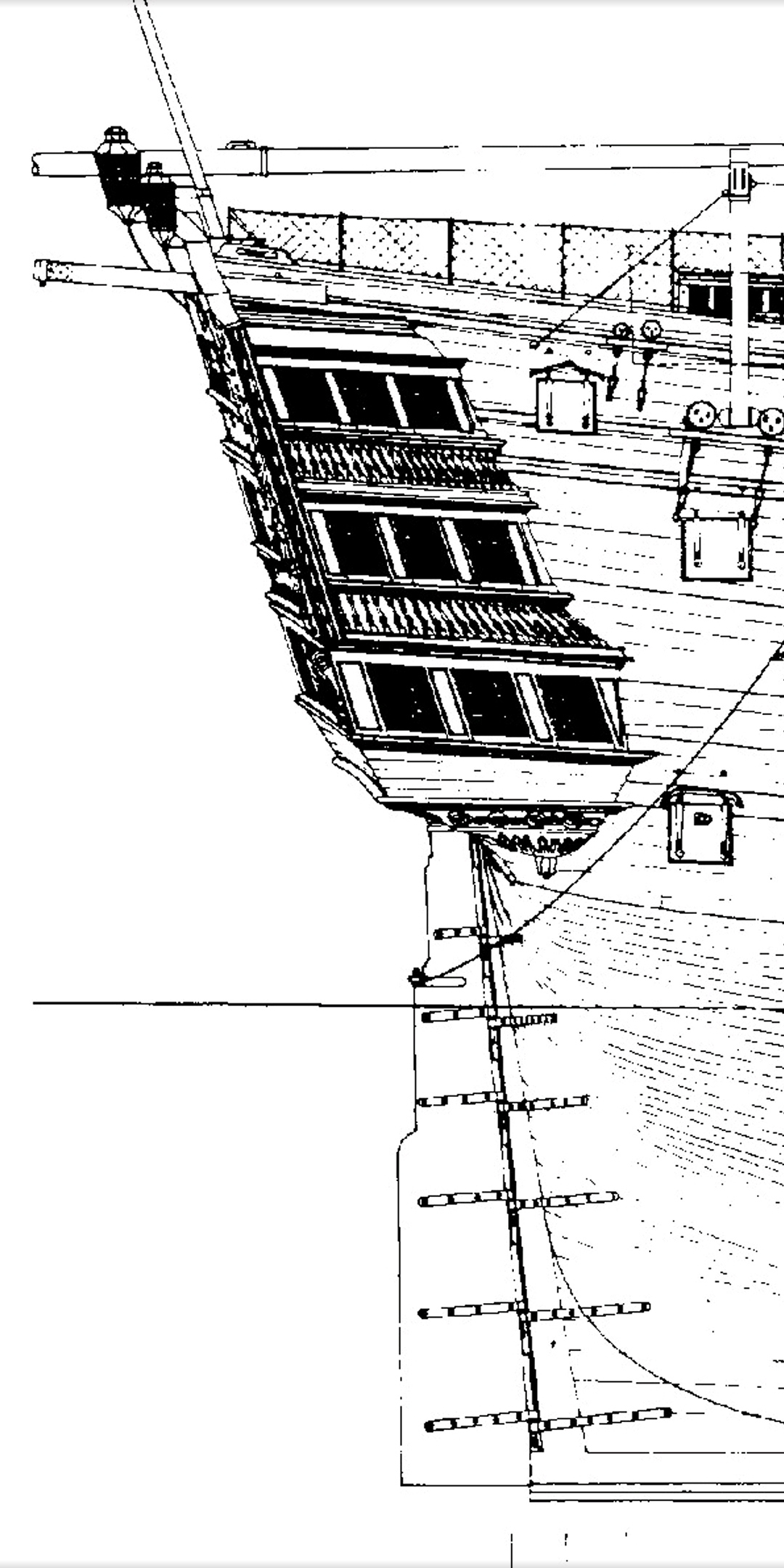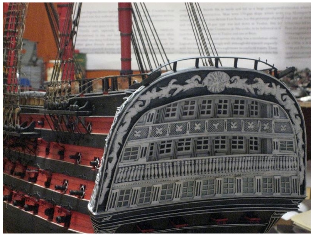 Посмотрим как же предполагает уважаемый Издатель должна выглядеть корма у "Тринидад"... Обратите внимание на эти дыры между боковыми галереями и кормовым декоративным элементом...
