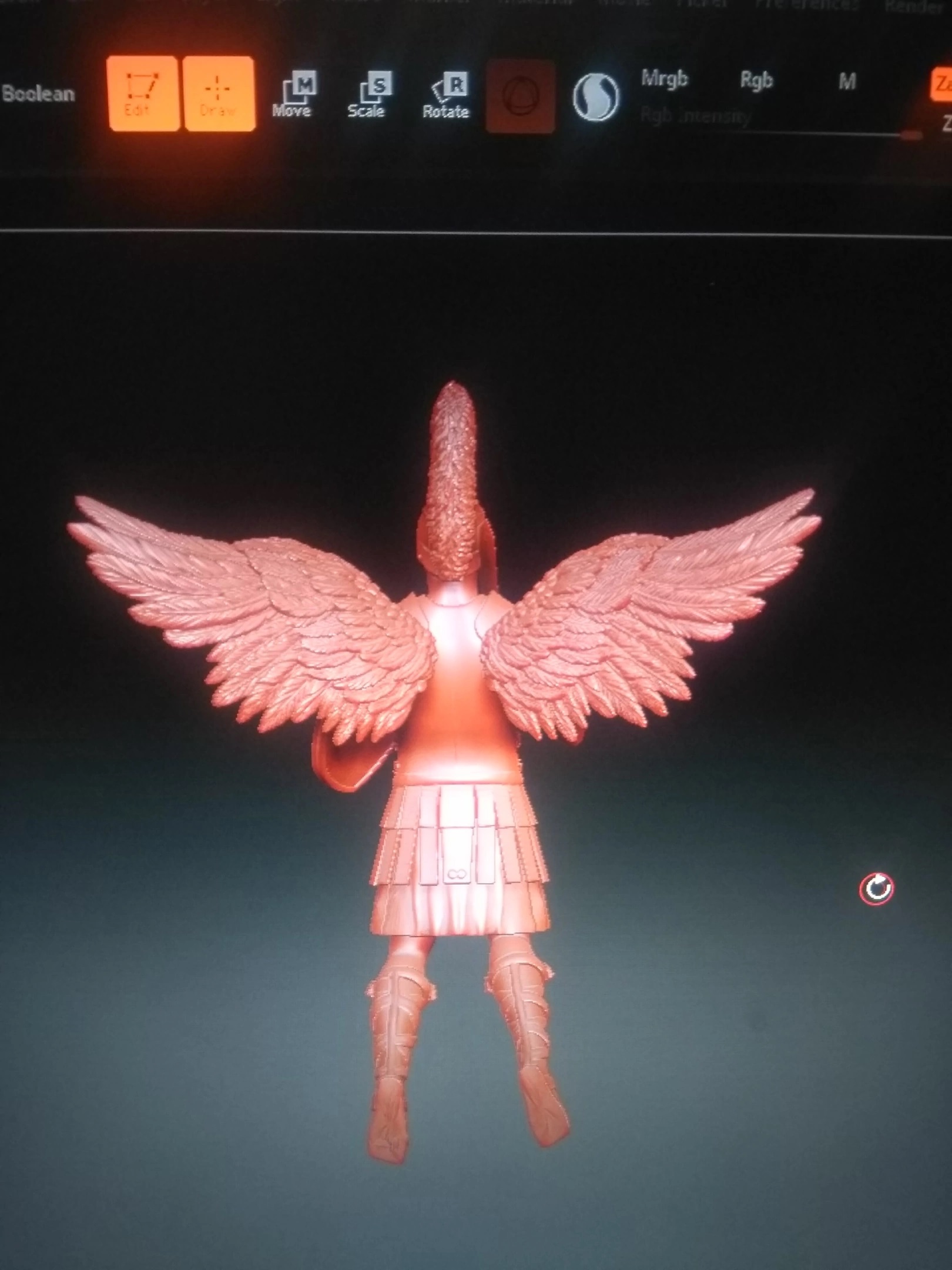 Насчёт щита и эфеса согласен, насчёт крыльев, да, на корабле они были опущены, хотя его часто изображают именно с поднятыми крыльями (специально загуглил). Одежда у него явно древнеримская, шлем, да, гребень великоват и нащёчники лишние, кроме того, ноги не должны быть расставлены.