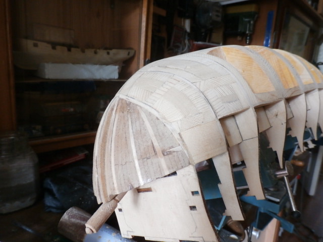 А в шпангоуты крепёж не упирается, чтобы киль не свернуло, когда корабль под углом крепится?