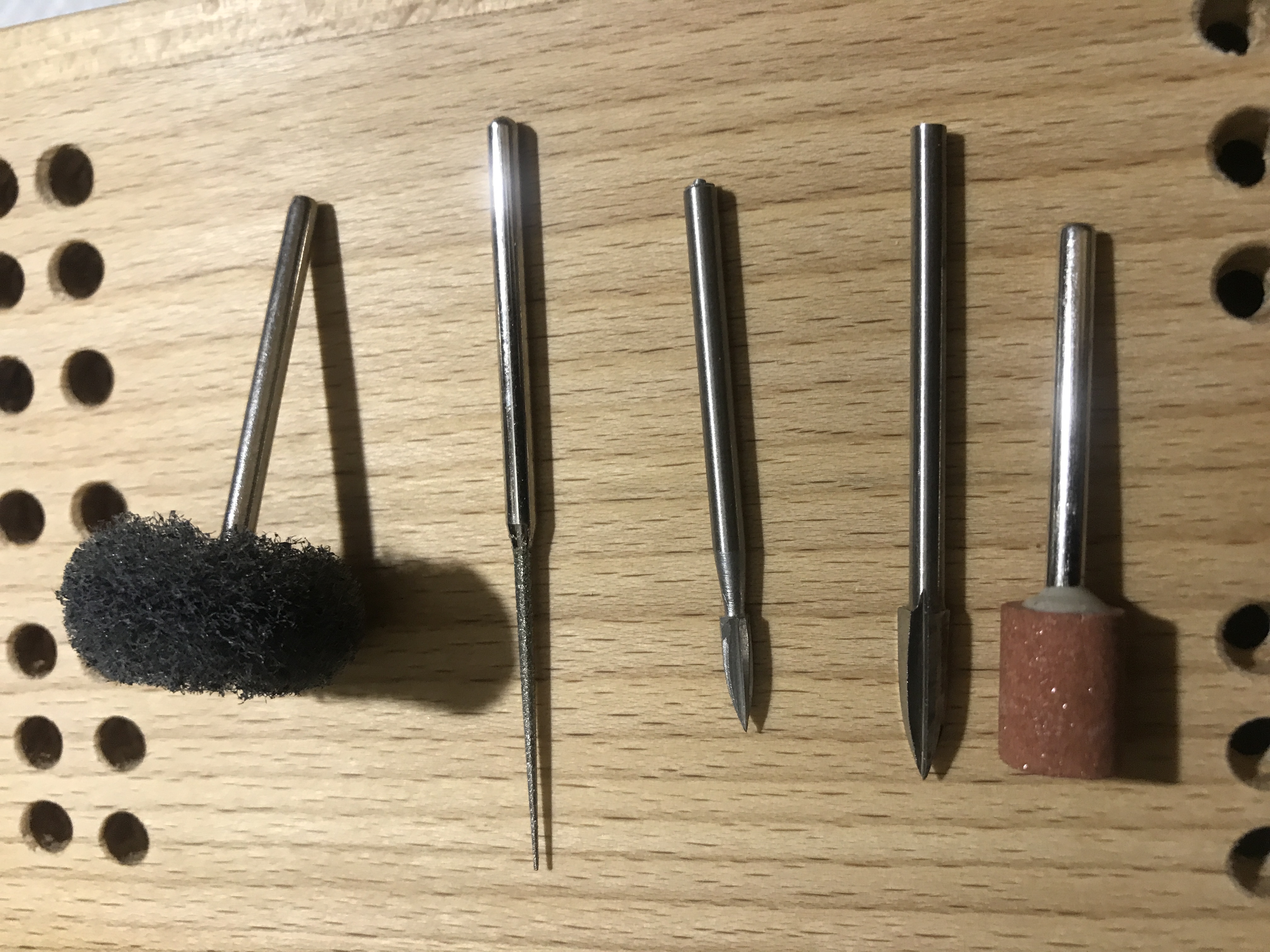 Вот только сейчас попал домой, смог сделать фото фрез для дерева под гравёр. Думаю других профилей нет(или не нашёл), хотя искал много и долго. У кого есть другие профили фрез, или наборы, пришлите фото, очень интересно.