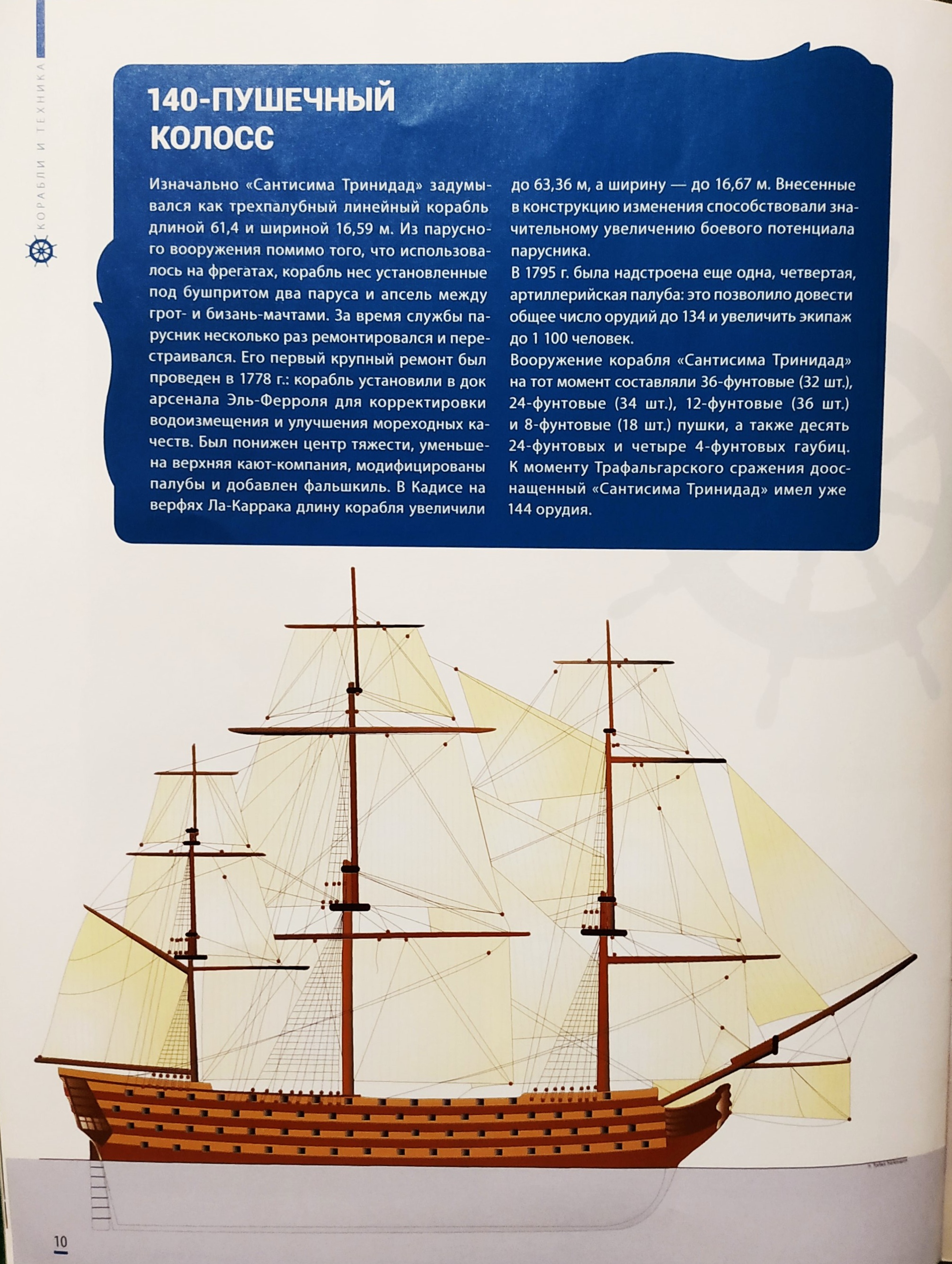 Вот я спрашиваю, как же так, журнал у нас называется "Сантисима Тринидад", корабль был на службе 36 лет, участвовал и походах и сражениях, перестраивался, а нам ничего про это не рассказали! Экватор нашей коллекции уже за бортом, а про сам "Тринидад" мы ничего толком и не узнали! Разве ж это правильно, что на журнале написано большими буквами "Сантисима Тринидад", а в самом журнале ничего про этот корабль и нет?!