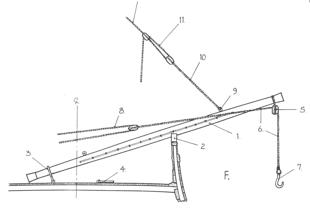 Переводчик с английского выдает: "Шлюпбалка для рыбы". Разговор идет о брусе закрепленном на палубе фор-дека.. Да действительно брус был с"ёмным. Во время похода его убирали ,для того,что бы брус "Рыбьей балки" не мешал в случае нужды работе артиллеристов (комендоров легкой палубной артиллерии корабля). Доставали тогда, когда "выходив " якорь корабельным шпилем нужно было его ( якорь) уложить на носовую русленевую площадку. В походе же Рыбью балку убирали туда , гле хранился весь запасной рангоут. Я думаю сооружать на шкафуте модели ростры (площадку для хранения шлюпок ) вот там , под шлюпками среди прочего рангоута уложу и две "Рыбьи балки". Слово "Рыбьи"- я думаю из слэнга моряков тех лет. Якорь поднимают из моря, а там водится рыба! Значит приспособление похожее на удочку - рыбье! Балка с"ёмная, но на палубе фор-дека были закреплены на обушках постоянные две скользящие скобы. Переводчик : Пролетная скоба - ( 3 и 4 ) Для того чтобы балка не выскользнула из скоб с обоих сторон балки наколачивали два шкерта с узлами, которые мешали выскользнуть балке под нагрузкой .Наверное "рыбьи балки" команда использовала в случае нужды и в качестве под"ёма различных грузов со шлюпок подошедших к борту судна.