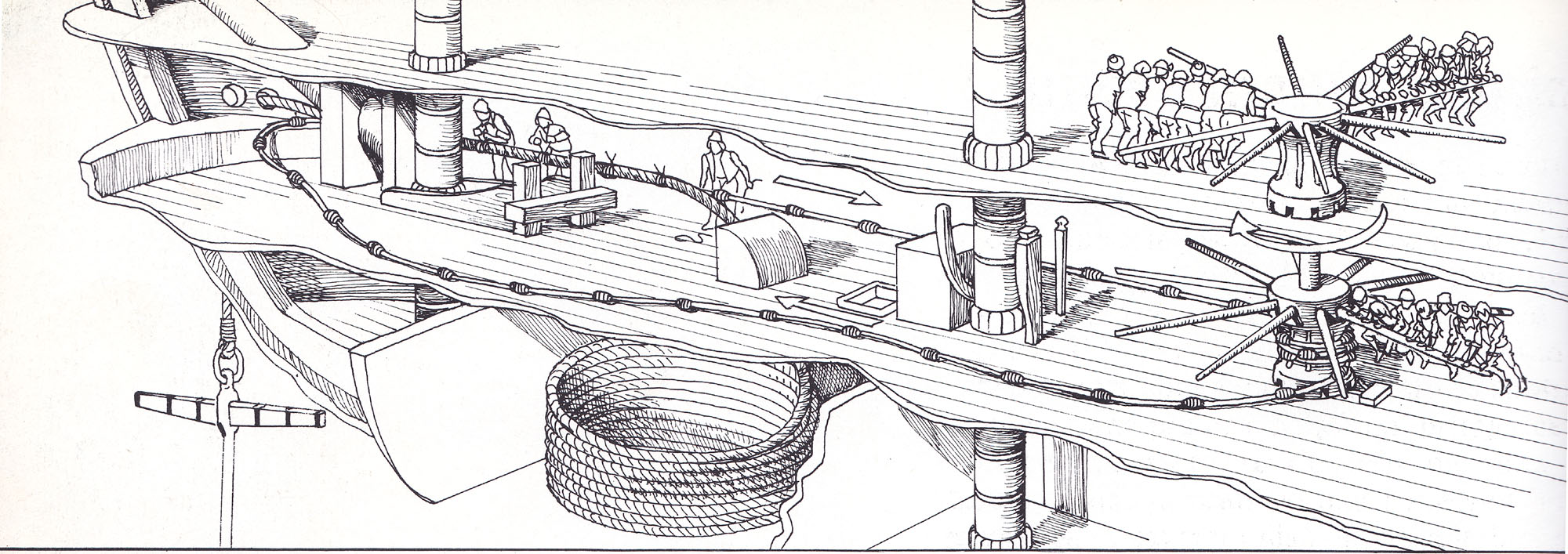 Позвольте мне продолжить выбранную мной тему. Возможно всё что написал выше конкретно не найдет своего применения при строительстве нашей конкретной модели. Но для меня всегда было загадкой как люди жившие двести, триста лет тому назад не владея ни какой энергией, кроме силы своих собственных мускулов поднимали и укладывали многотонные махины чугунных якорей, перекатывали станки тяжелых орудий, Отпускали и поднимали стеньги мачт, а порой и меняли сами мачты. Представляю какая архи ответственность ложилась на плечи офицера командовавшего той или иной РАБОТОЙ МАТРОСОВ НА ВЕРХНЕЙ ПАЛУБЕ КОРАБЛЯ. Чья ошибка могла стоить жизни матросов да и жизни самого корабля...