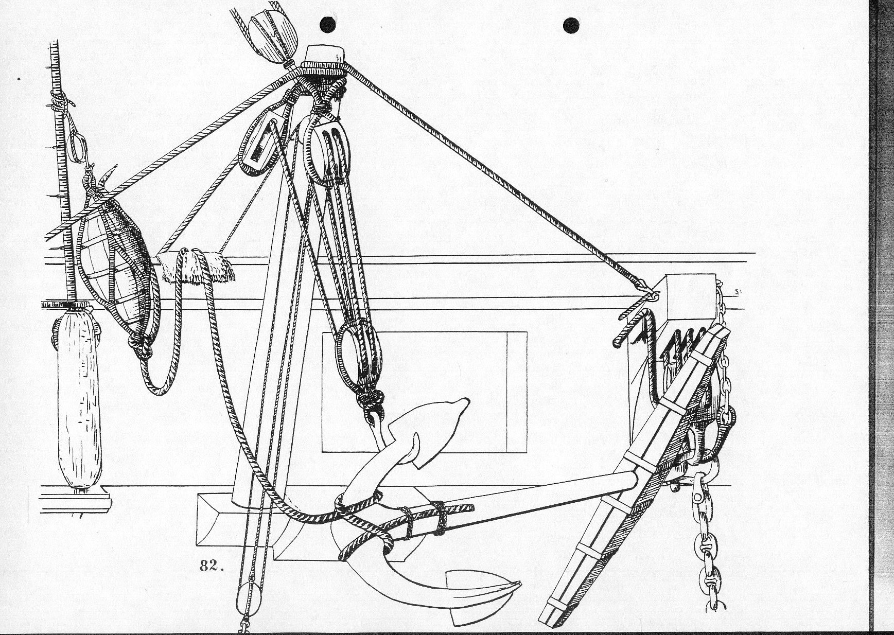 2. Под"ём якоря одна из самых опасных и сложных судовых работ на верхней палубе парусного судна. Опасность заключалась прежде всего в весе самого якоря. Якоря на малых судах ( тендер, шхуна, люгер ) были весом 31 - 35 пудов (500 - 600 кг) на линейных же кораблях доходили до 250 пудов это уже - 4 тонны.