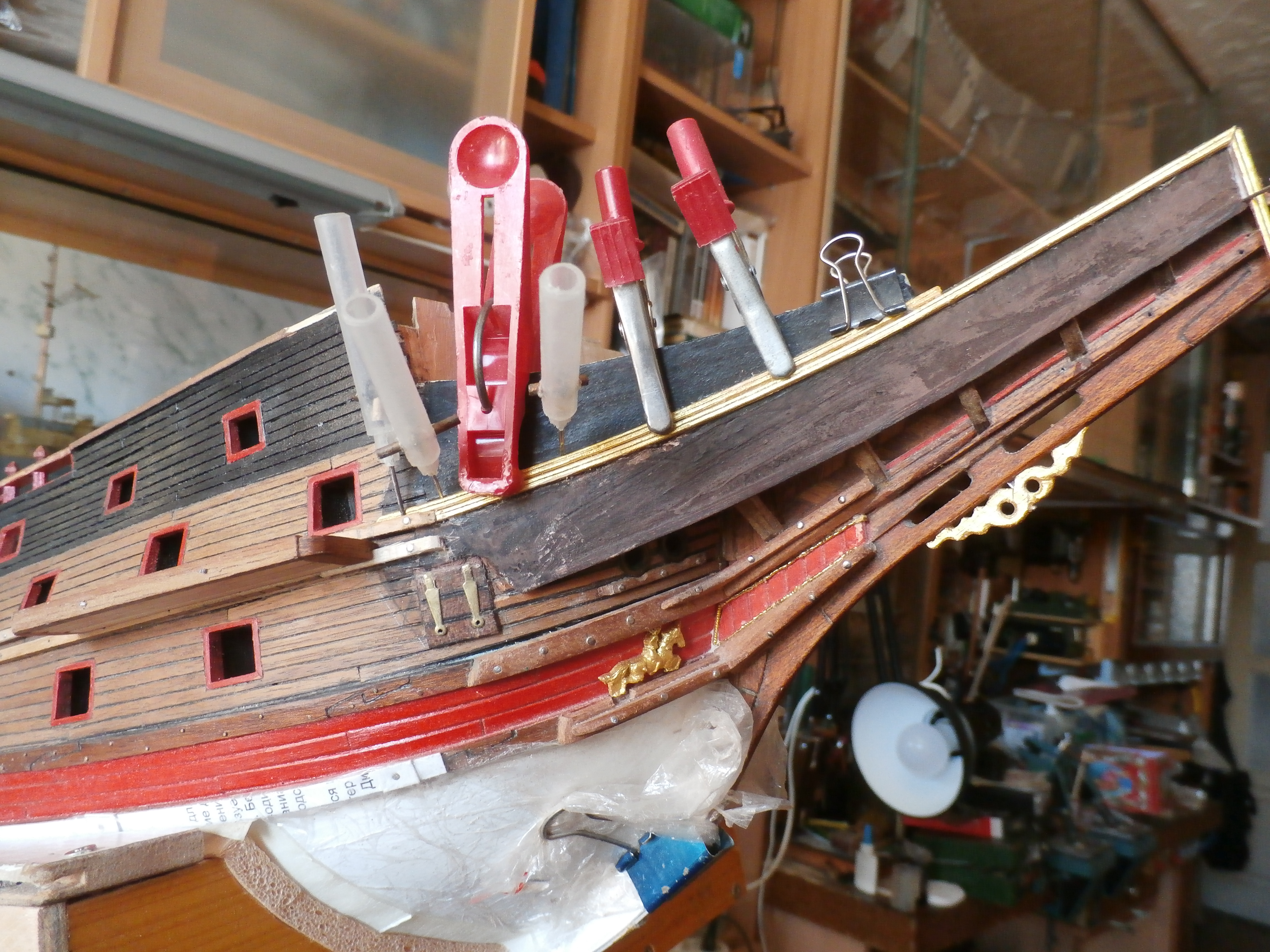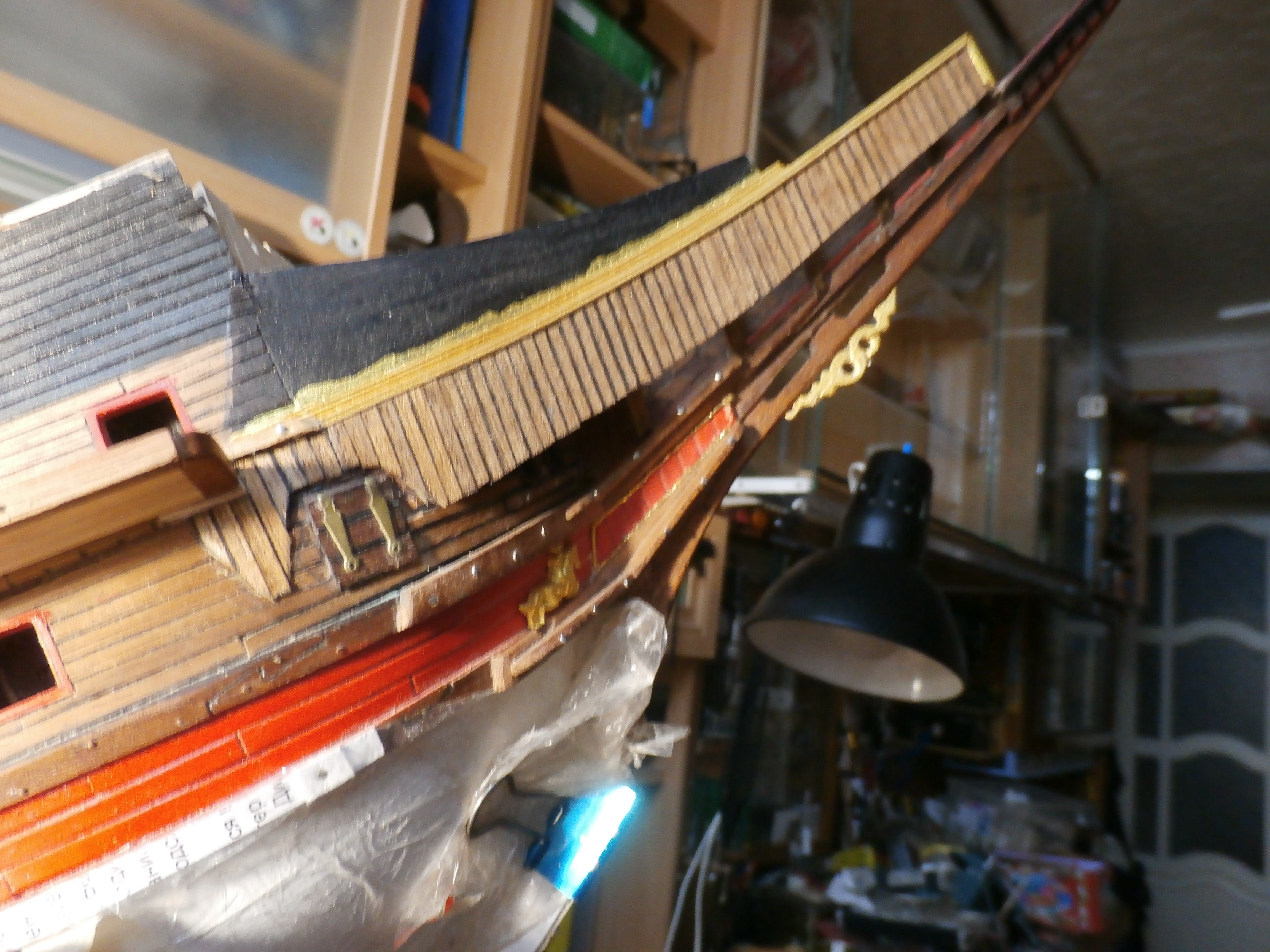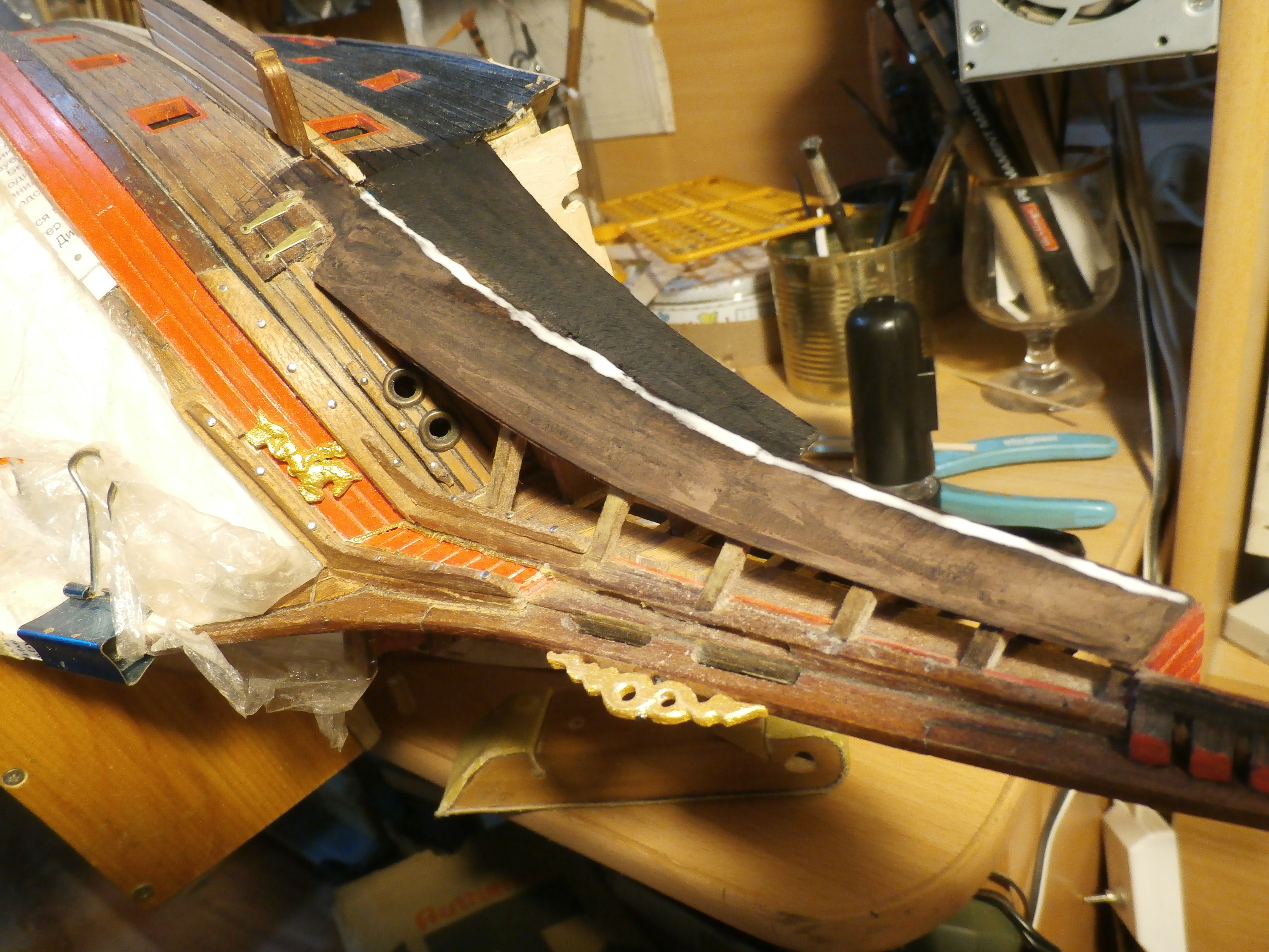 Верфь на моём письменном столе продолжает свою работу. Веду строительство английского линейного парусного корабля " Повелитель морей ". В настоящее время строительные работы ведутся в носовой части модели. Обустройство фальшбортов у гальюнной площадки модели. Основные работы по декору левого борта гальюнной площадки я закончил и сейчас приступил к правому борту модели.