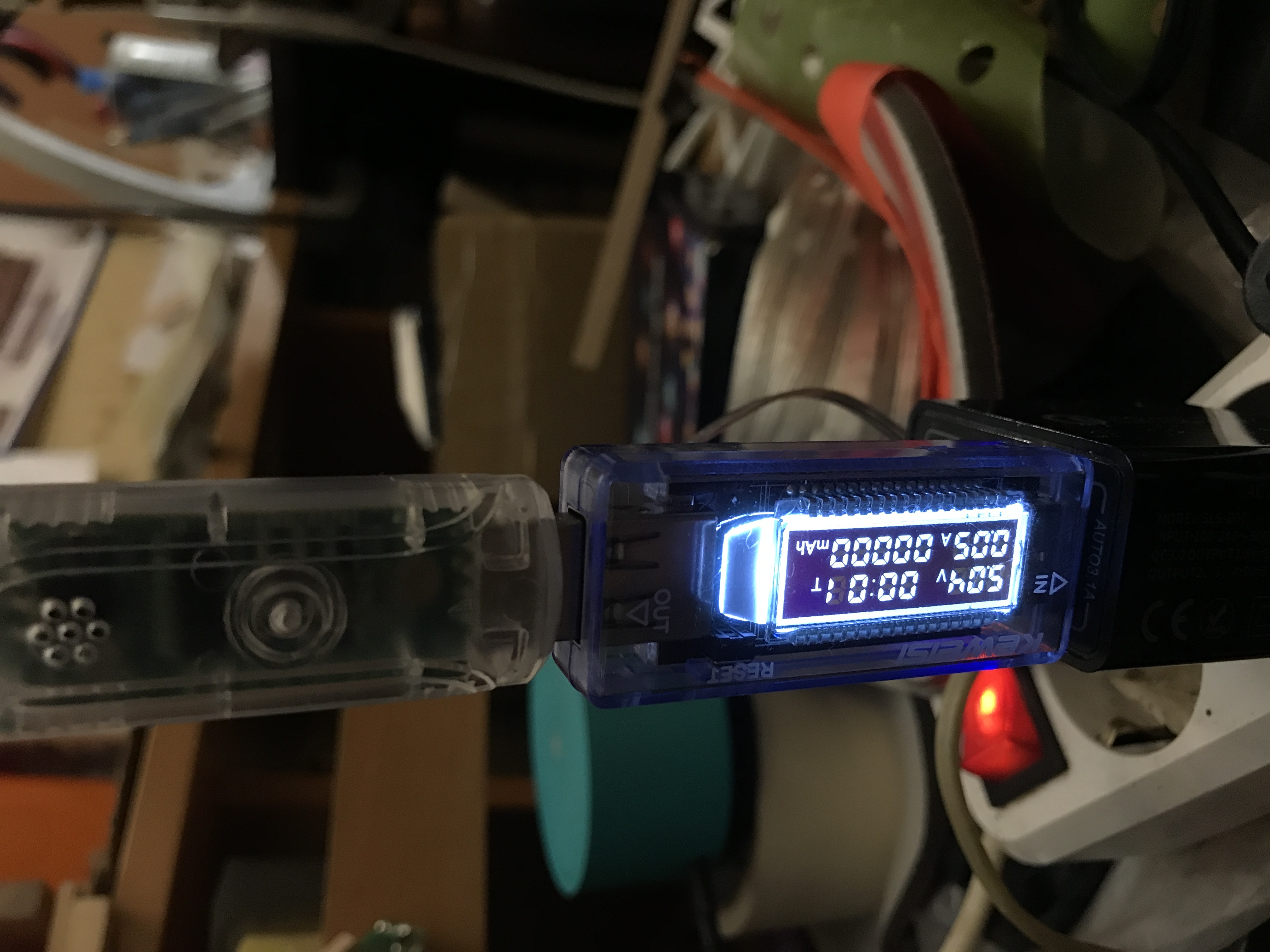 В настоящее время он показывает напряжение 5 вольт и потребляемый ток 5 миллиампер.