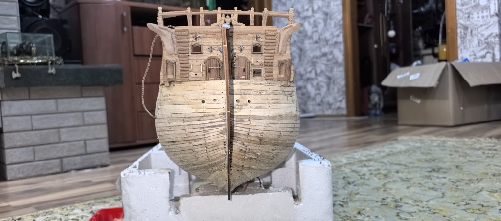 Завершил черновою обшивку корпуса корабля Soley Royal, а это значит, что внешняя оболочка корпуса, сформирована из первичных планок. Это основной этап строительства, после которого начинается обработка корпуса (шлифовка, шпаклевка) и переход к чистовой обшивке и другим работам.