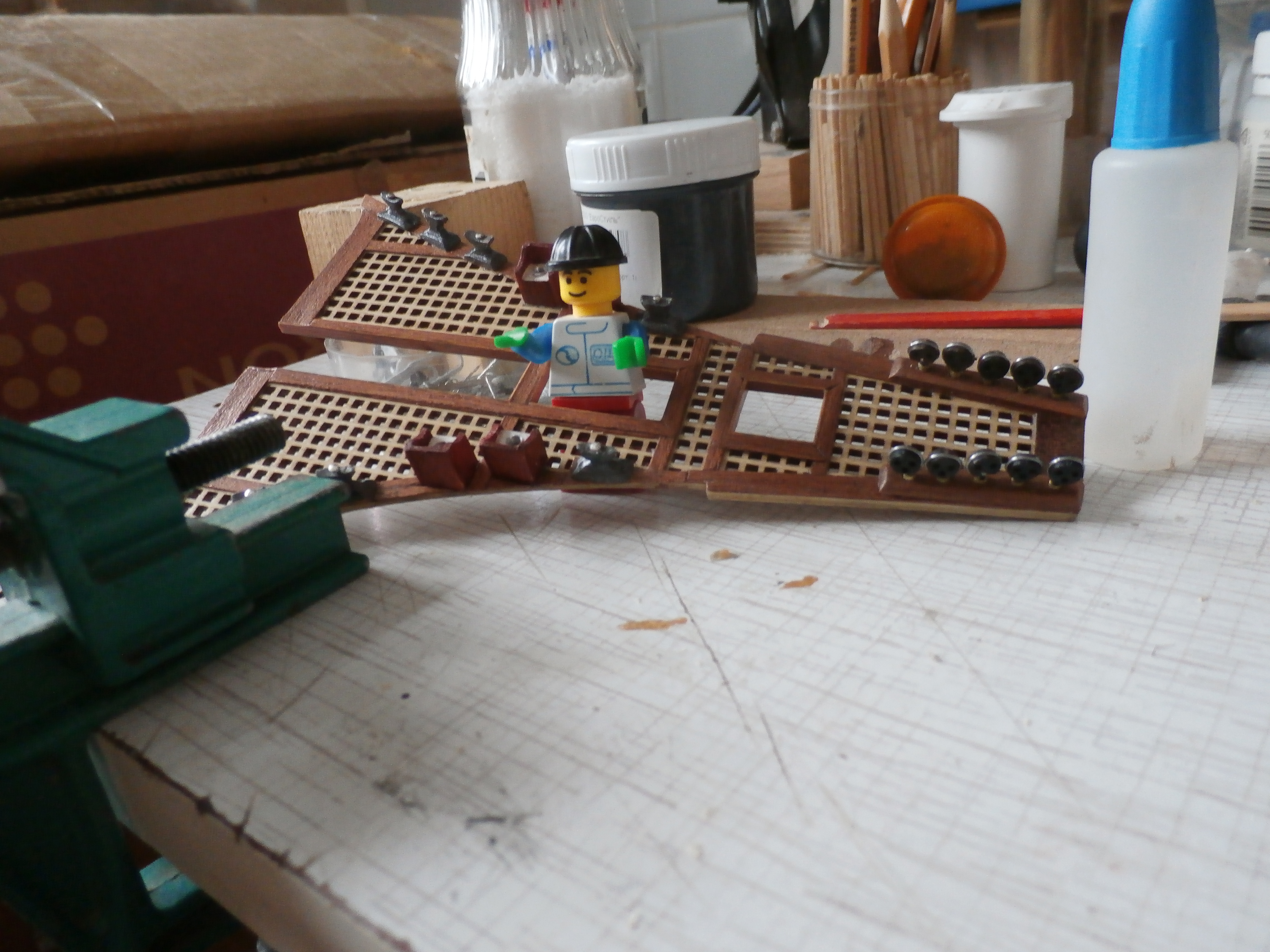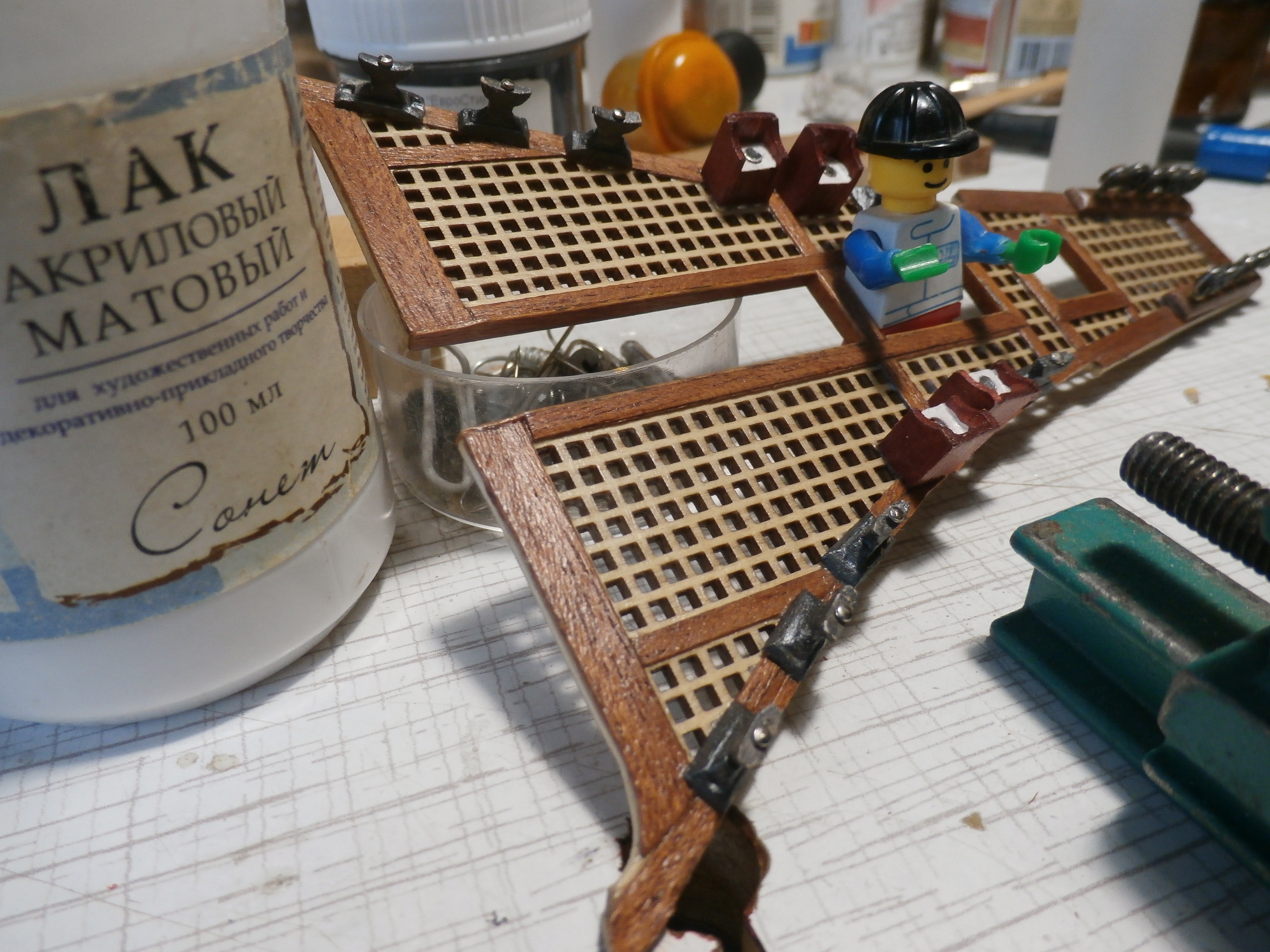 Еще раз доброе утречко уважаемый Керва, прочитал Ваше сообщение, первый вариант мне неподходит - выписать с - Деагостини - эти журналы под номерами, там в номерах детали эти сделанные из тонкой фанере - 2 млм, мне не подходит тонкая фанера и детали тонкие, второй вариант мне приемлем и хороший сделать из толстой рейки и широкой, да и гальюную площадку нужно укреплять - тонкое основание добавлять из реек - изгибать рейки на пару и где приеные эти детали место приклейки рейками обшить сделать по шире и место изгиба планки с приклеенным орнаментом по бокам укрепить планкой с изгибом или рейками укрепить и основание решеткики укрепить рейками и пазы квадратные и боковые тоже нарастить рейками с уважением Юра