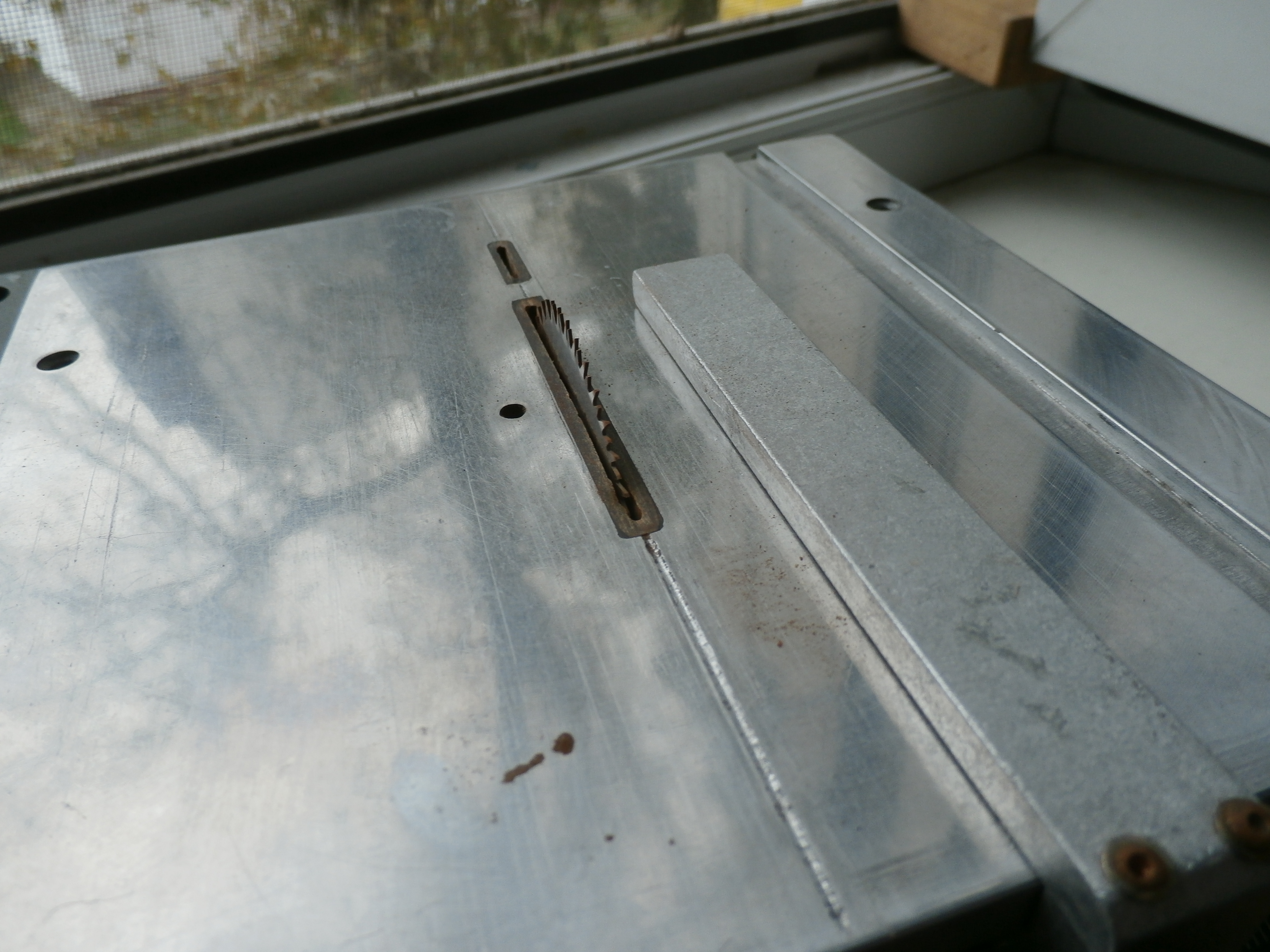 2. Щель для диска на рабочем столе вашей циркулярки должна быть минимальная! Я эту проблему для себя решил: заклеив её деревянной вставкой из дуба эпокс. клеем с последующим пропилом лобзиком и обработкой надфилями. Другие же мастера фрезируют поверхность рабочего стола во круг диска и устанавливают специальные вставки из металла, пластика, дерева, фанеры и т.д.