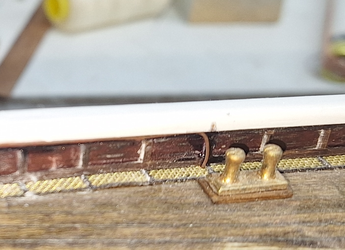 Латунные рым болты с внутренним диаметром около 1,5мм, прикрученные к планширю имеют мало общего с реальностью.