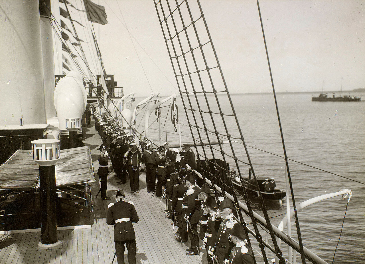 Король Эдуард VII посадкой яхту в заливе Ревеле , 1908 9 июня 1908.jpg