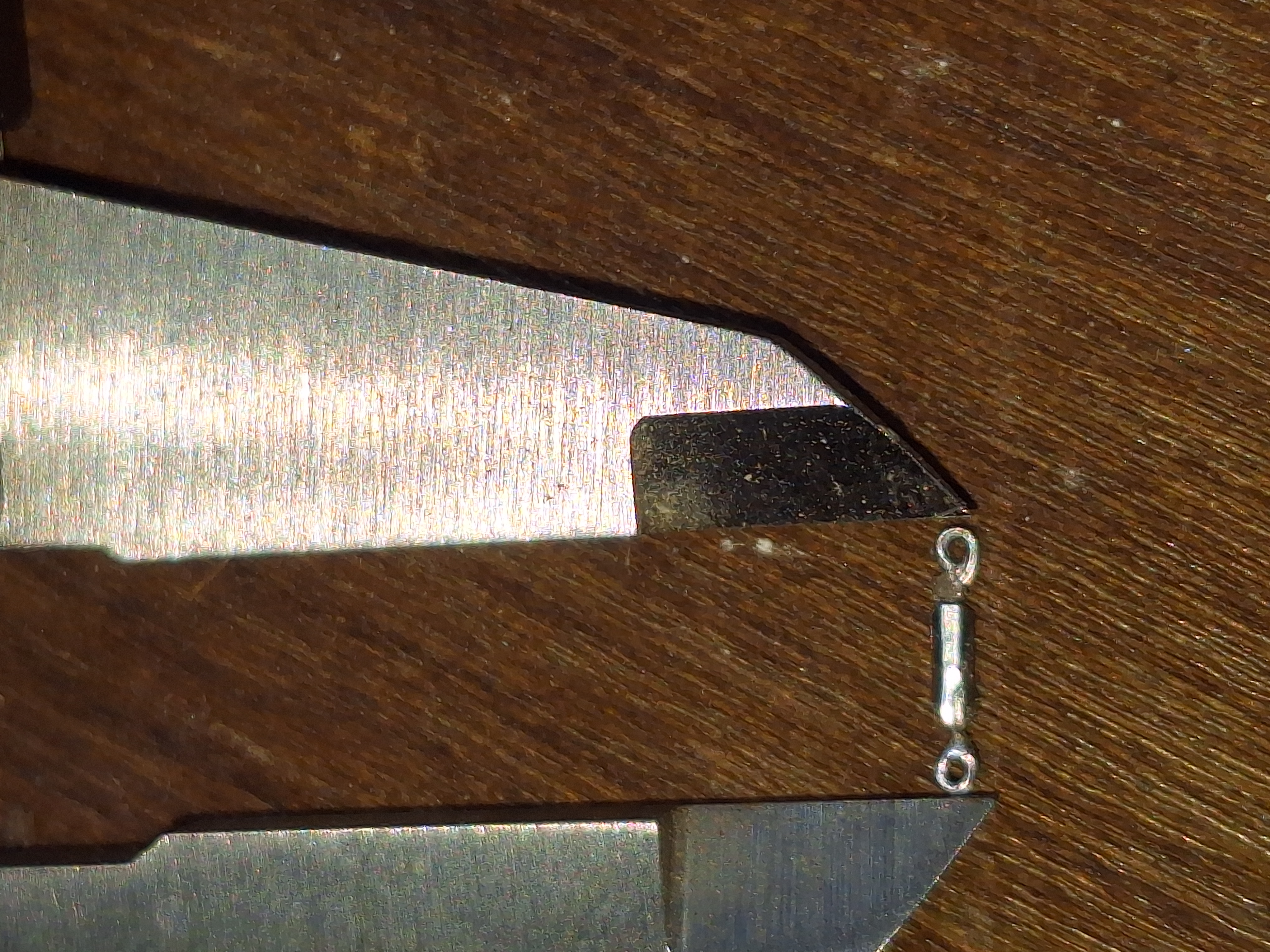 А в ухе вертлюга да, я прохожусь микросверлом, но так как для изготовления вертлюгов я использую лужоный многожильный кабель (медной проволоки диаметром 0,4мм не нашлось, а 0,6 смотрелось грубовато), то у меня сверло разрывает пайку (слишьком мягкой получилась проволока).