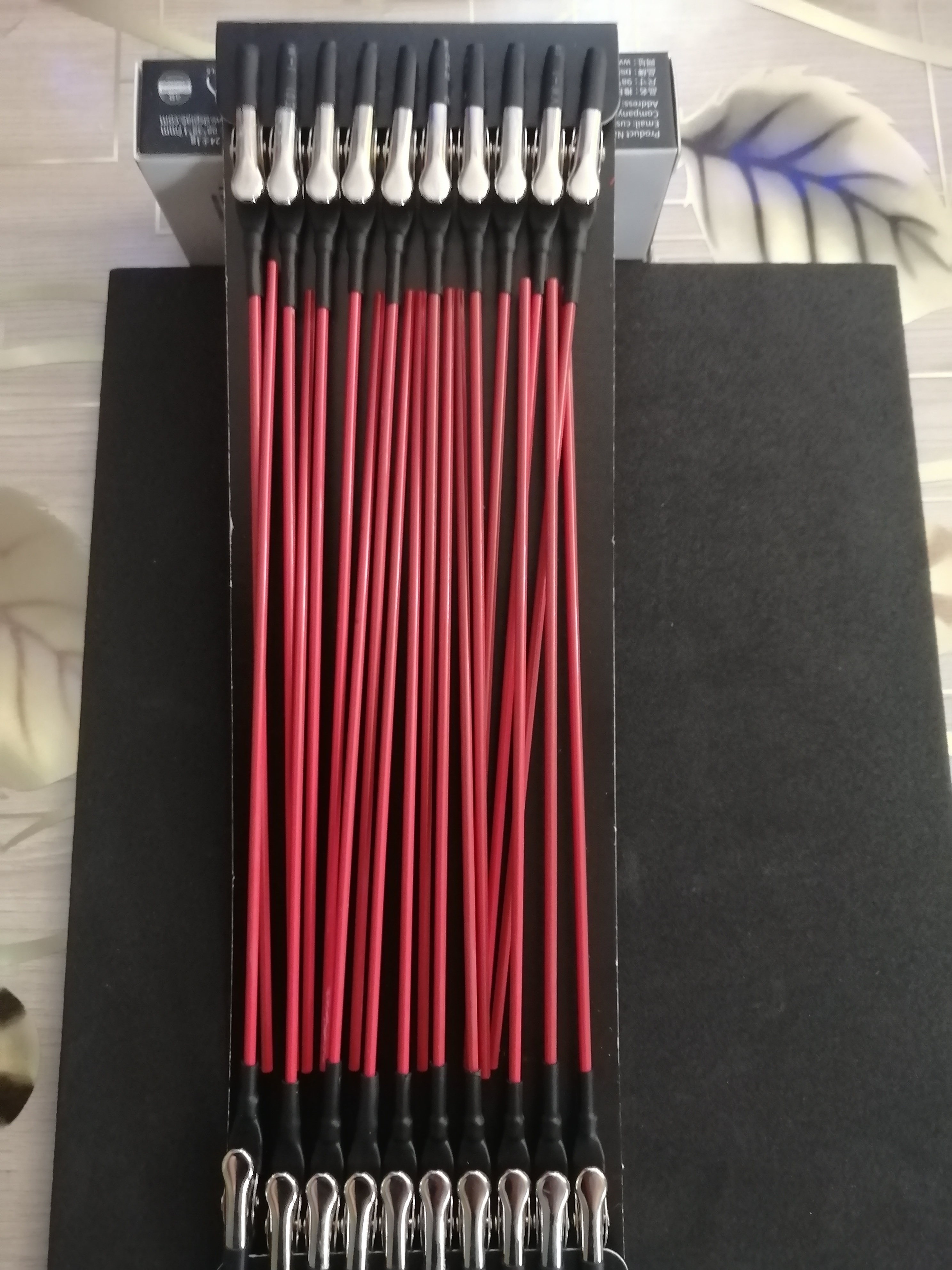 Я беру более длинные резинки, или связываю несколько штук и прочно снизу корпуса ставлю линейку, на которую натягиваю резинки. Что важно, если уже наклеена чистовая, то нет никаких следов от кнопок. Если уже прорезаны порты, то планку пропускаю через порты.