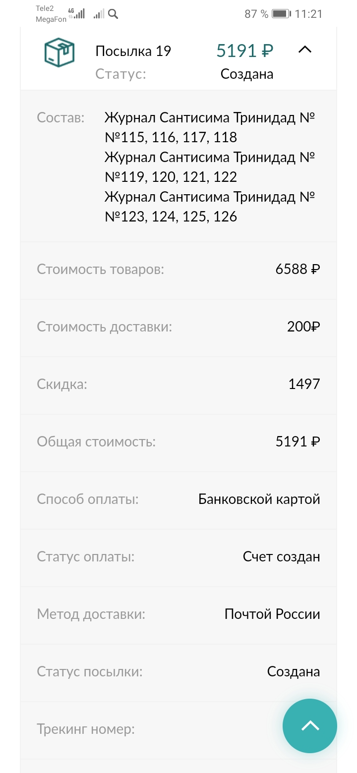 у меня в ЛК, в 19 посылке - 8 журналов, позвонил, дословно сказали "Нам неизвестно о таких расхождениях, пишите на почту, прикрепляя скриншоты". Написал, но что - то мне подсказывает, что ничего не изменится.Александр Николаевич Борисов писал(а): ↑04 апр 2023, 16:32 Скорей всего так и будет у меня 19-я в л/к появилась там 12номеров,тоесть три по четыре. Но самое главное что радует, это СКИДКА! Screenshot_20230404_112112_com.android.chrome.jpg